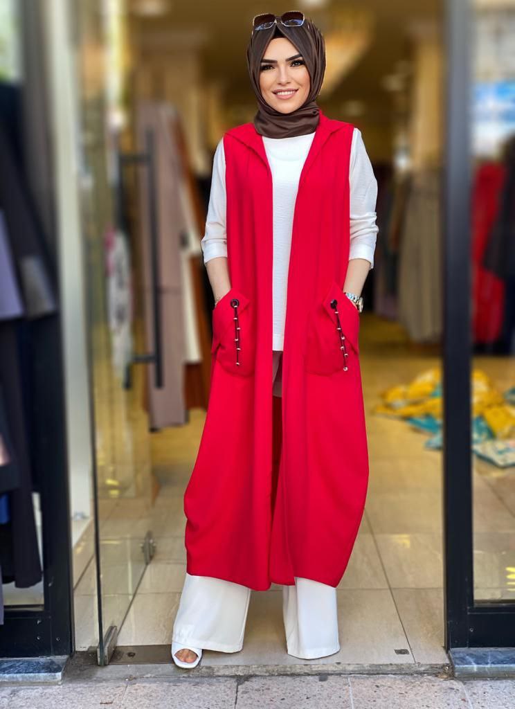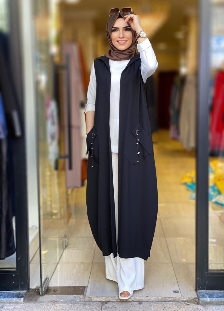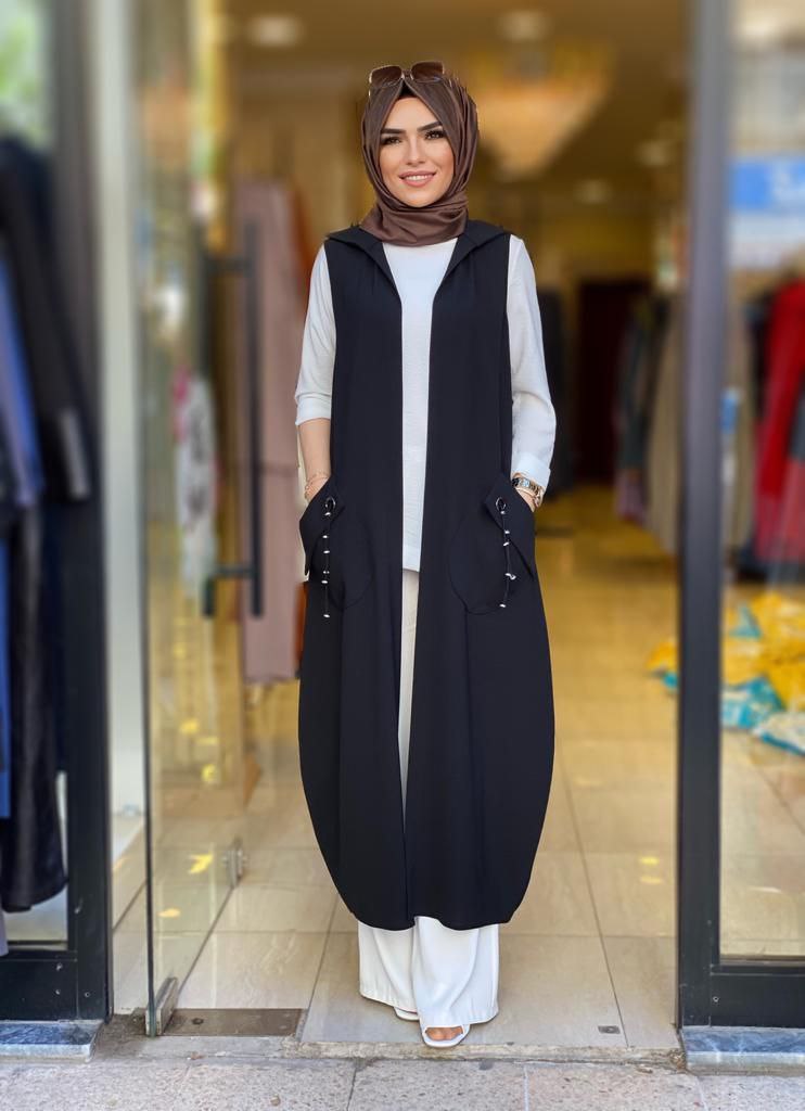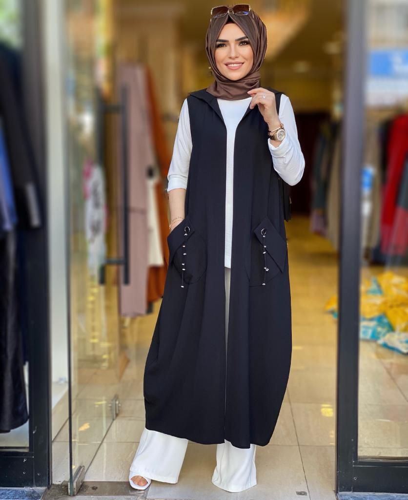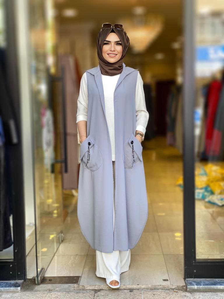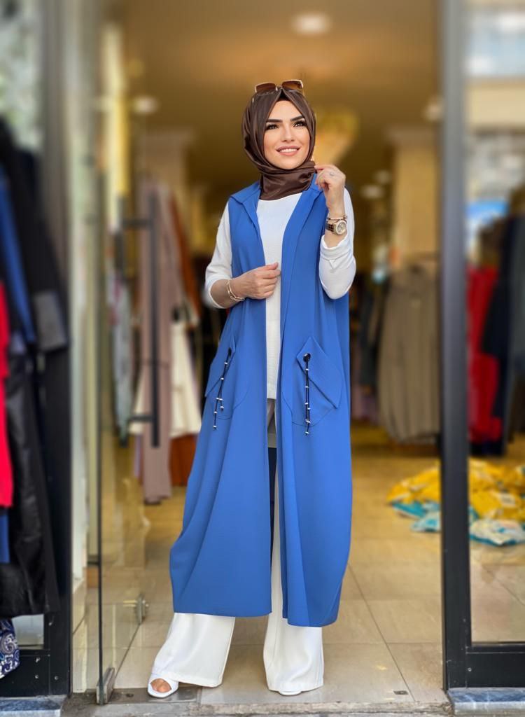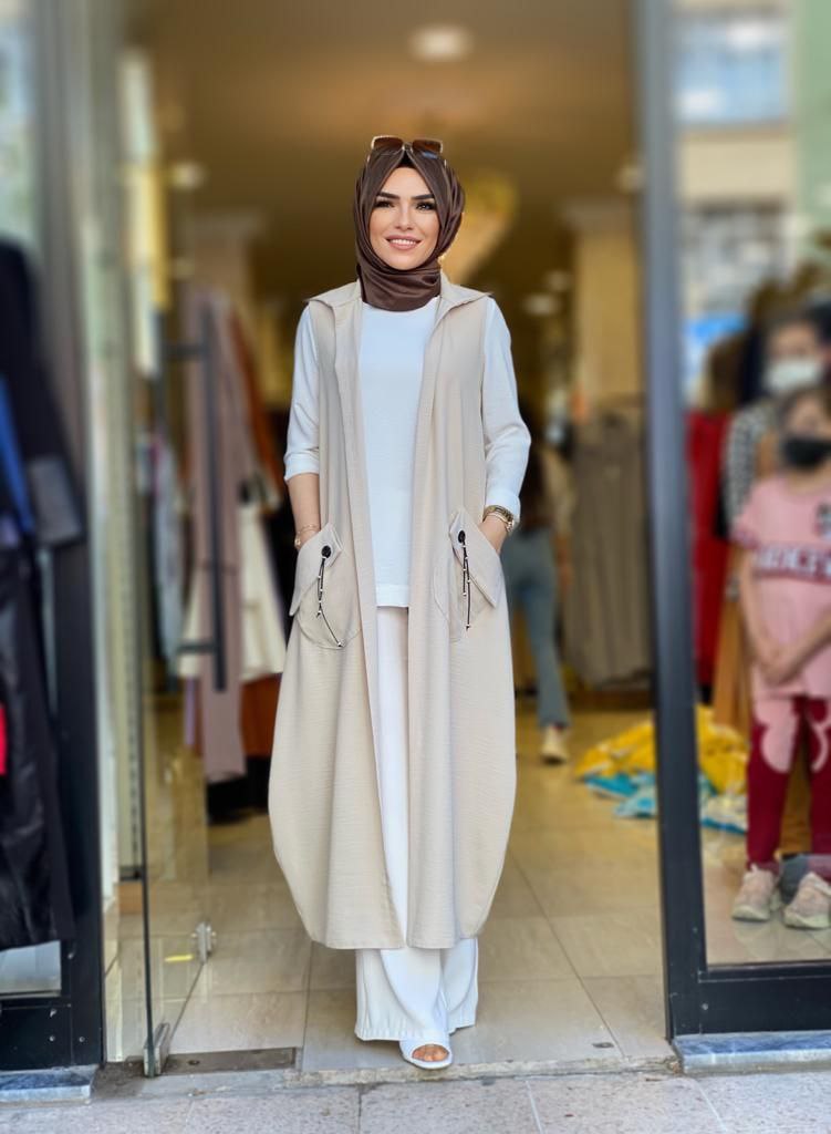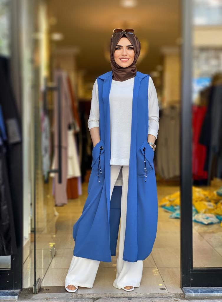 1.sınıf ithal ayrobin kumaş yelek - Saklı tesettür kadın giyim elbise etek tunik takım