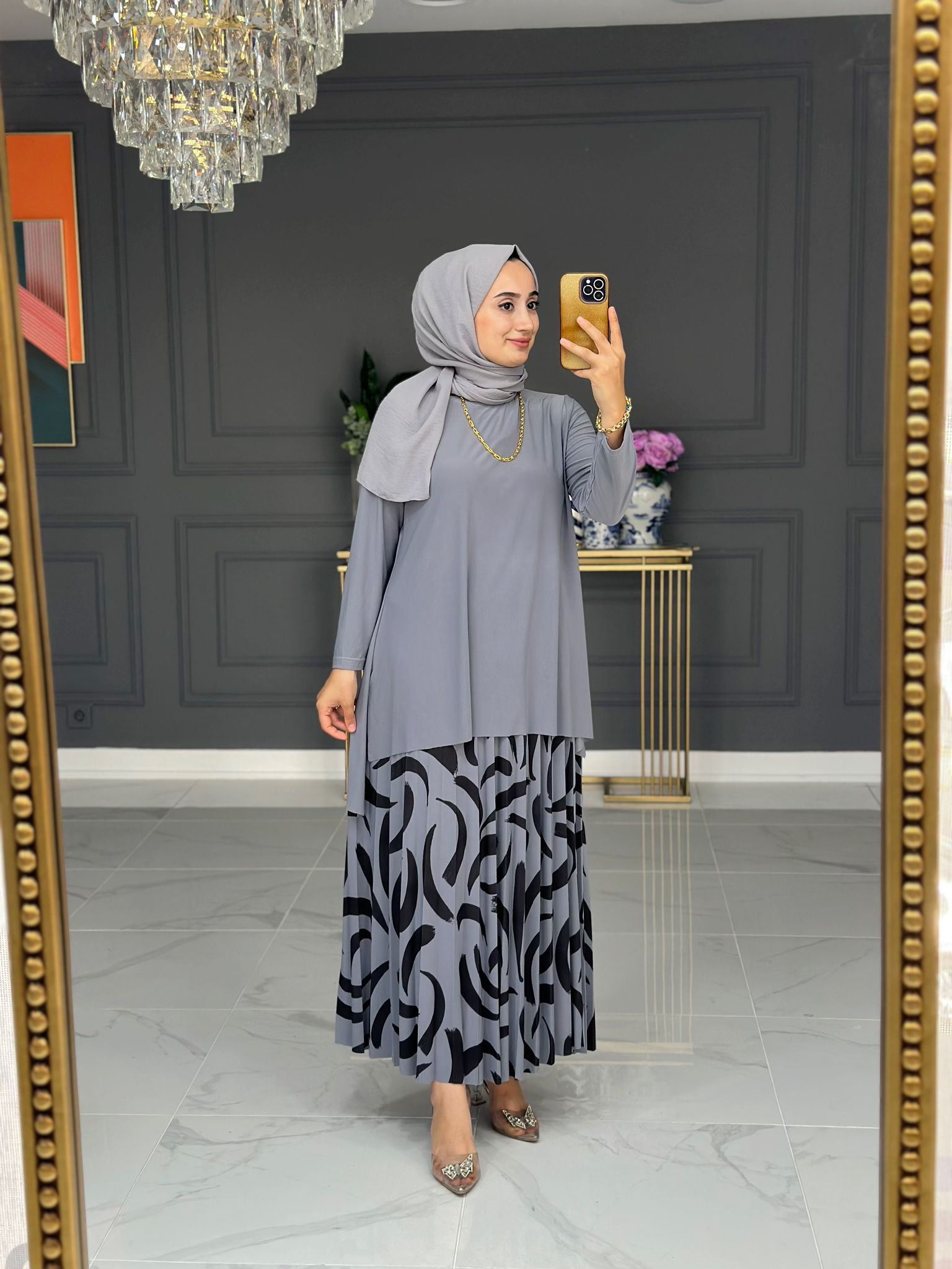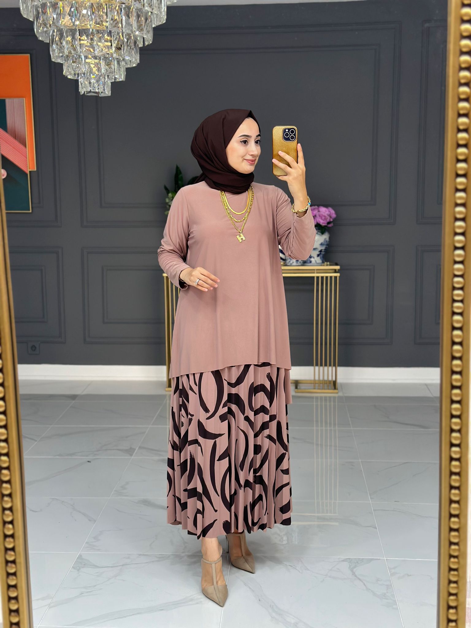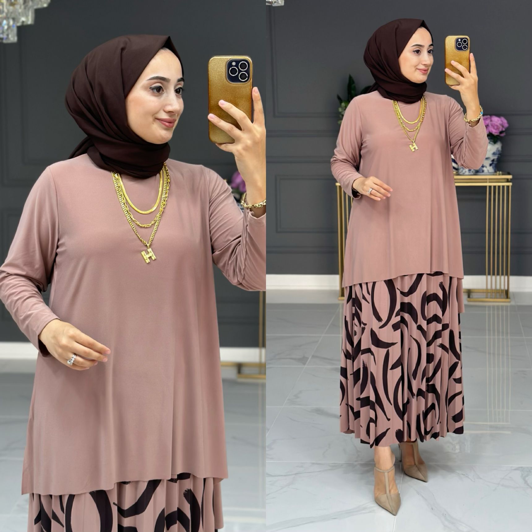 Ahsen etek takım sandy kumaş - Saklı tesettür kadın giyim elbise etek tunik takım