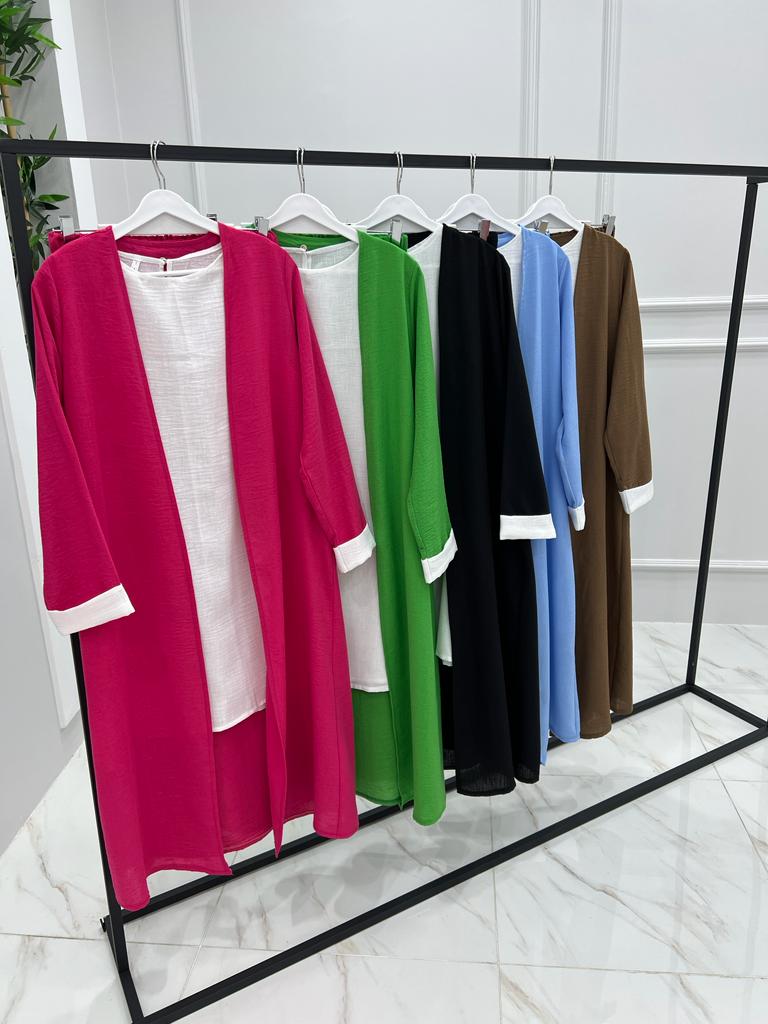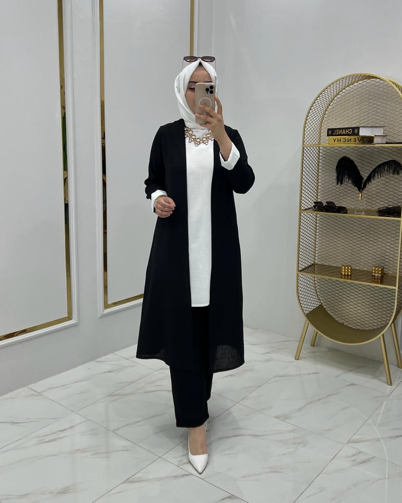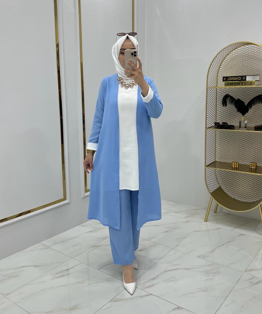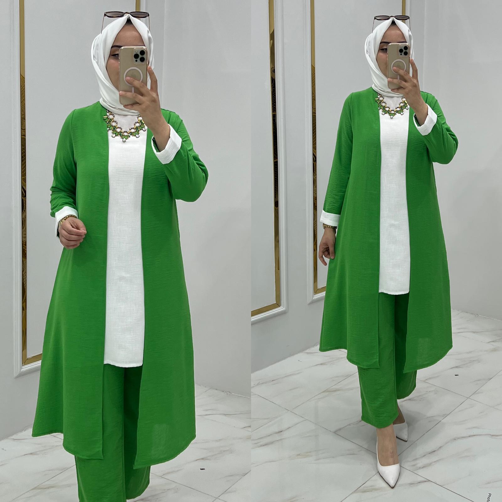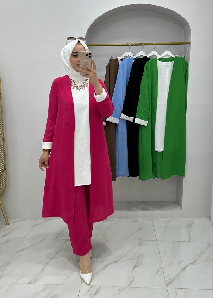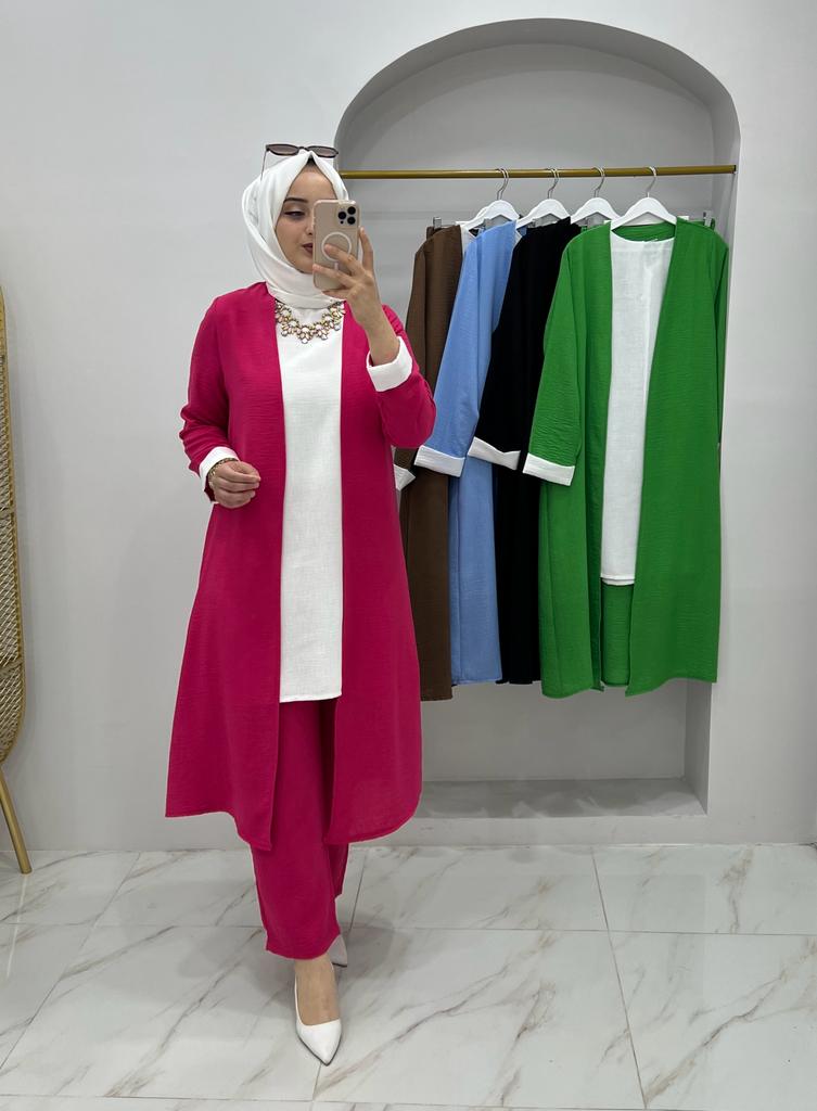 Armağan üçlü takım ayrobin kumaş - Saklı tesettür kadın giyim elbise etek tunik takım