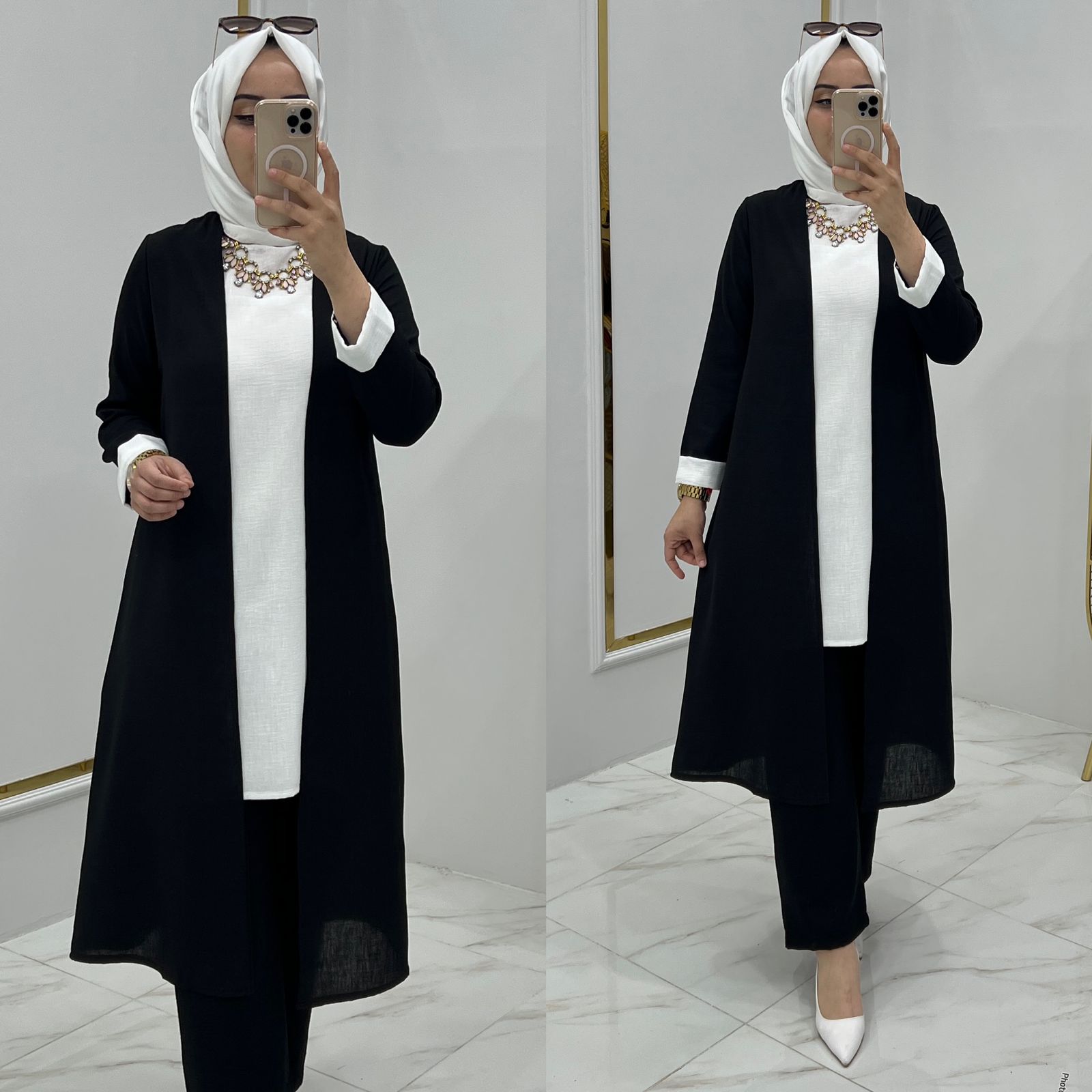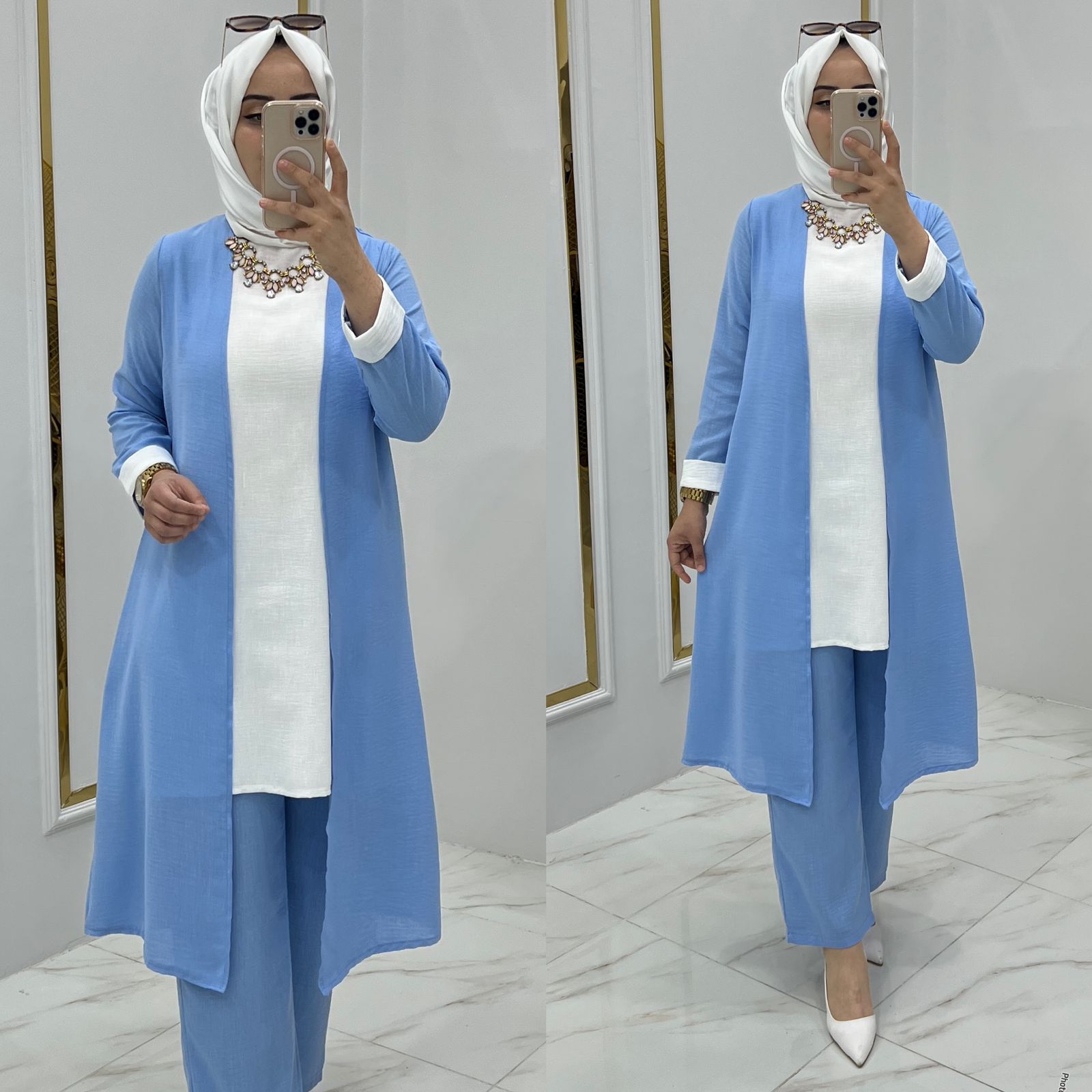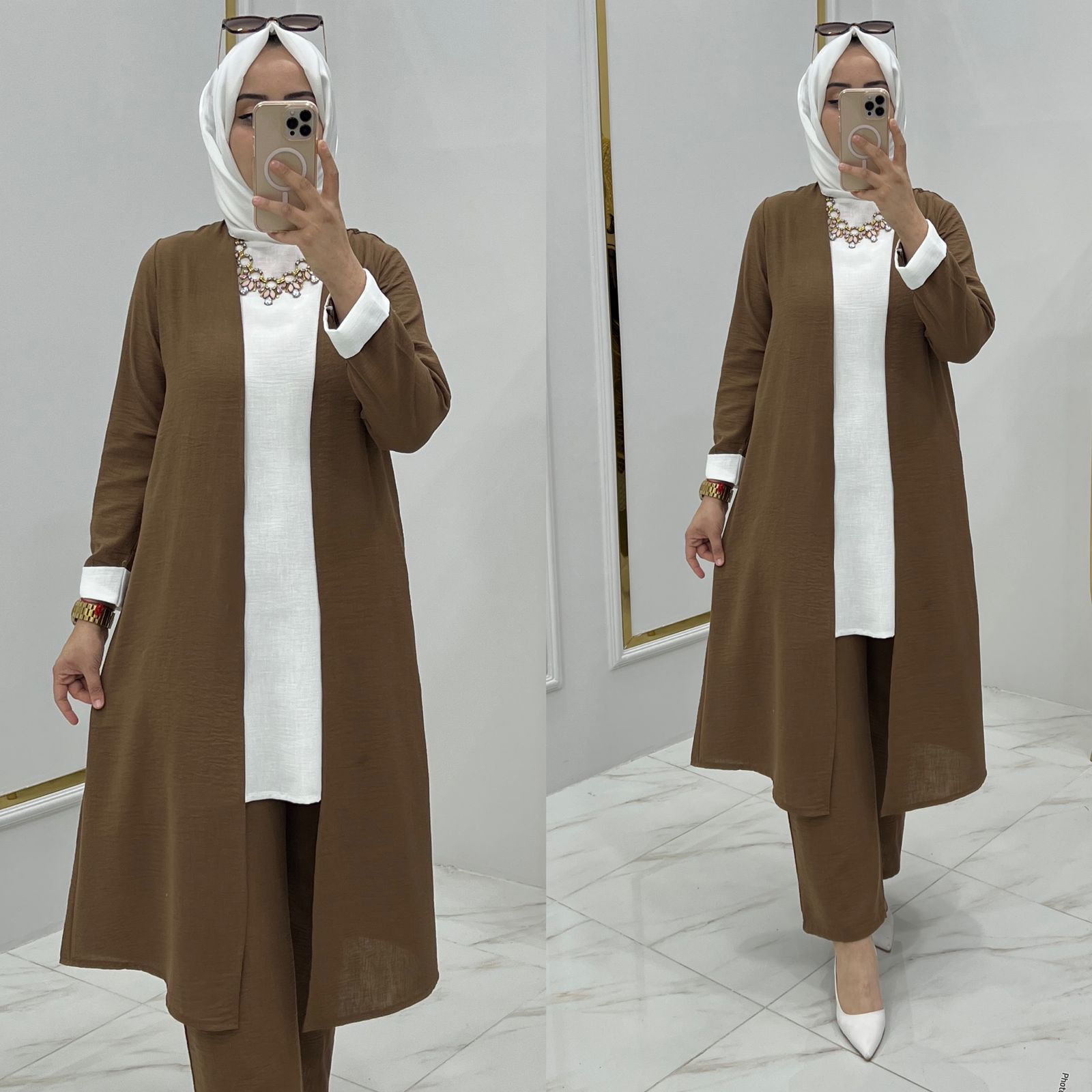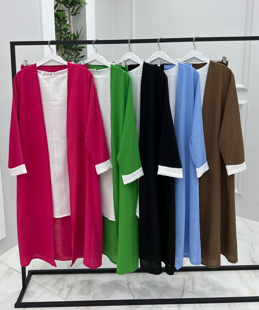 Armağan üçlü takım ayrobin kumaş - Saklı tesettür kadın giyim elbise etek tunik takım
