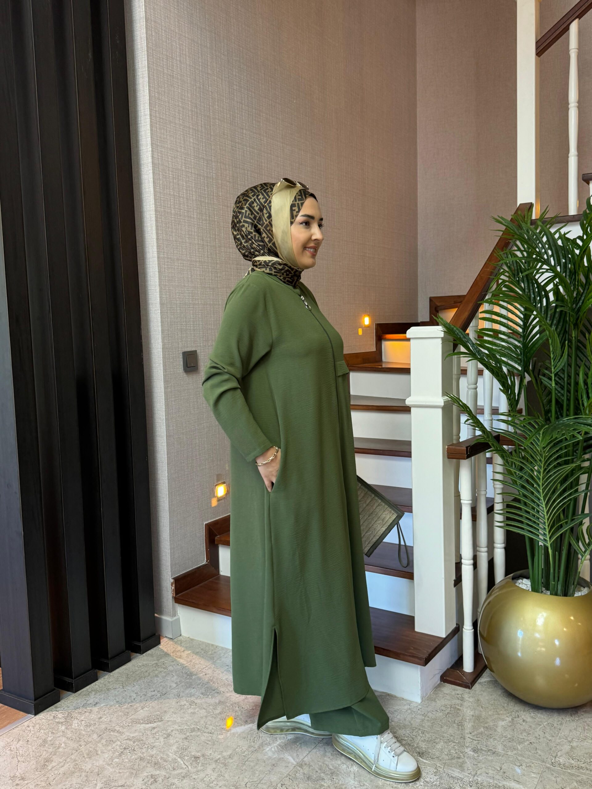 Ayrobin kumaş tunik takım - Saklı tesettür kadın giyim elbise etek tunik takım