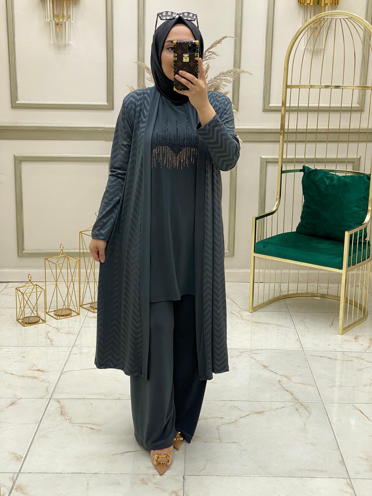 Azra üçlü takım tilta kumaş - Saklı tesettür kadın giyim elbise etek tunik takım
