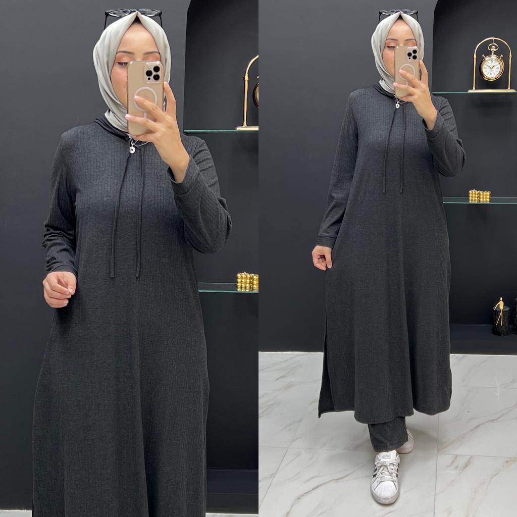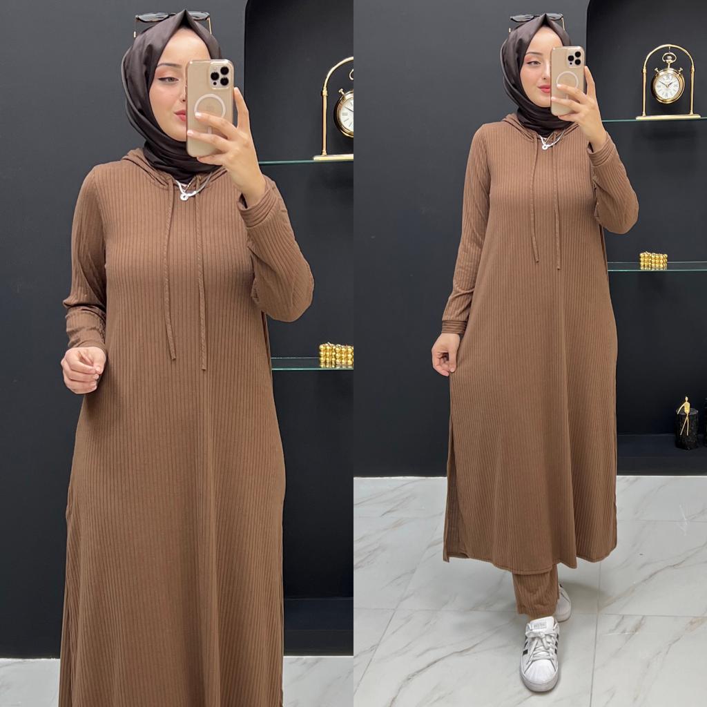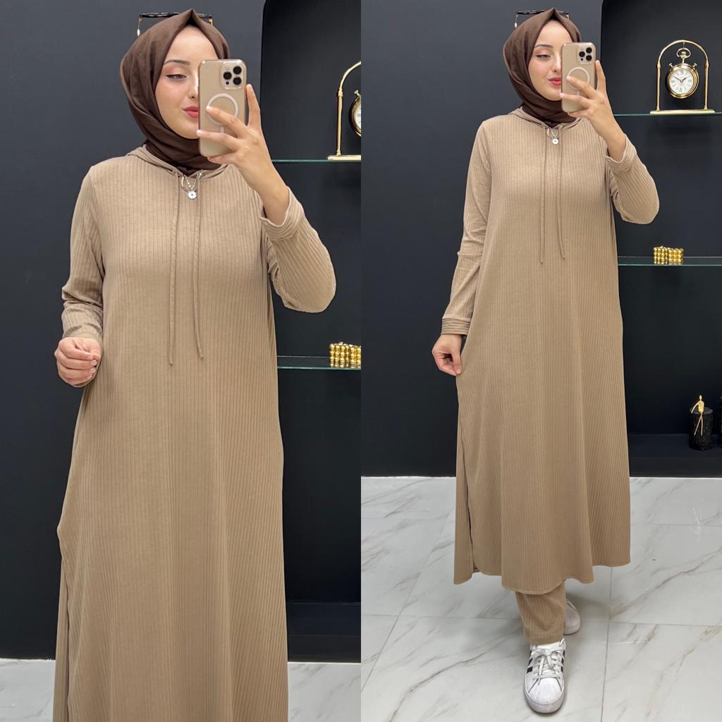Beren takım ipek triko kumaş - Saklı tesettür kadın giyim elbise etek tunik takım