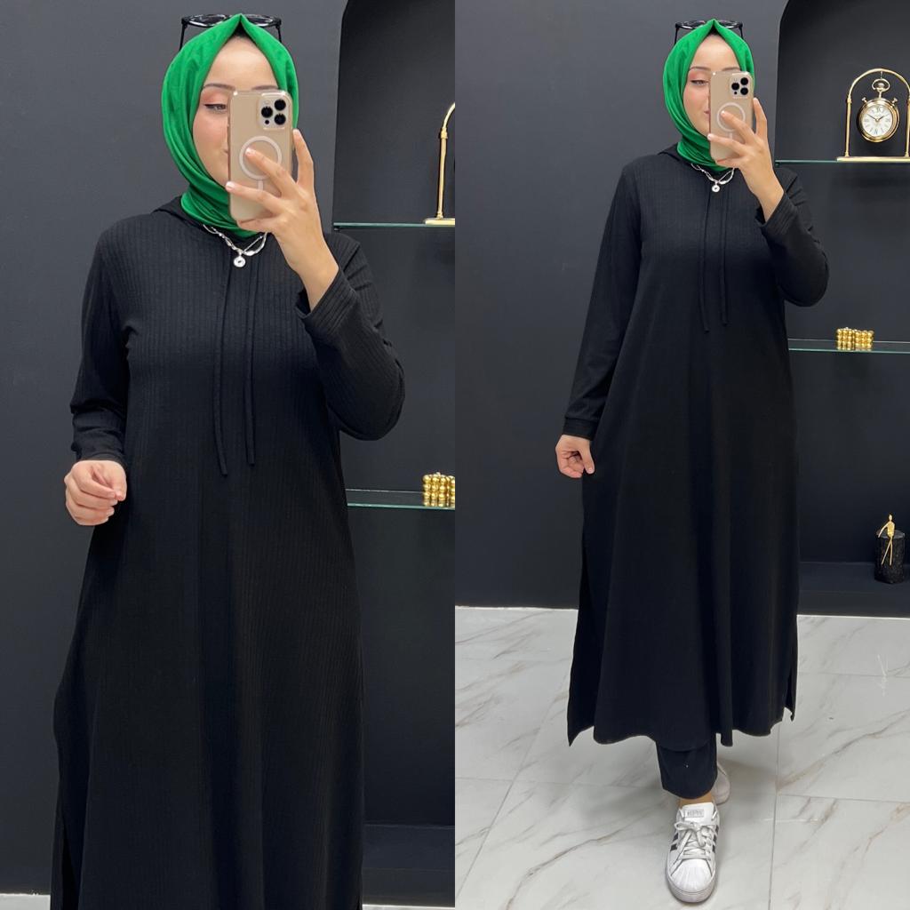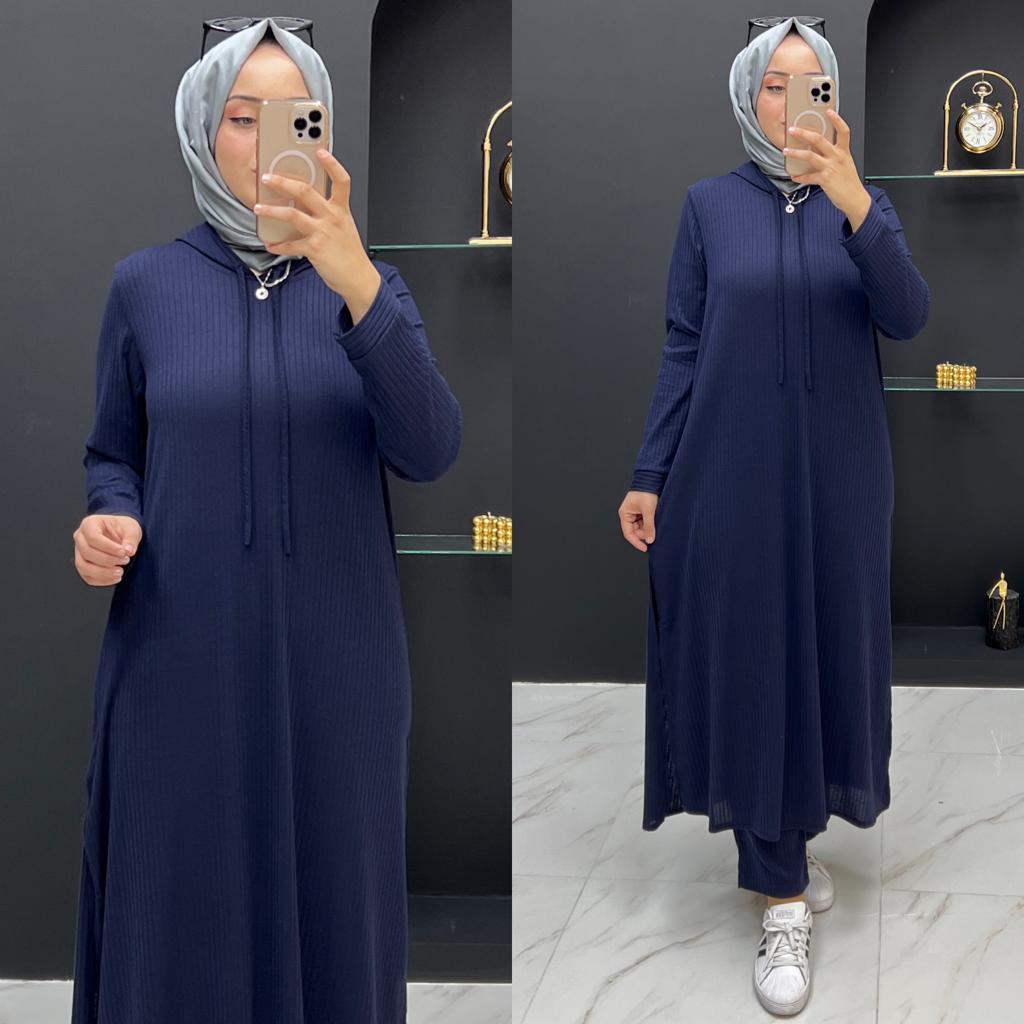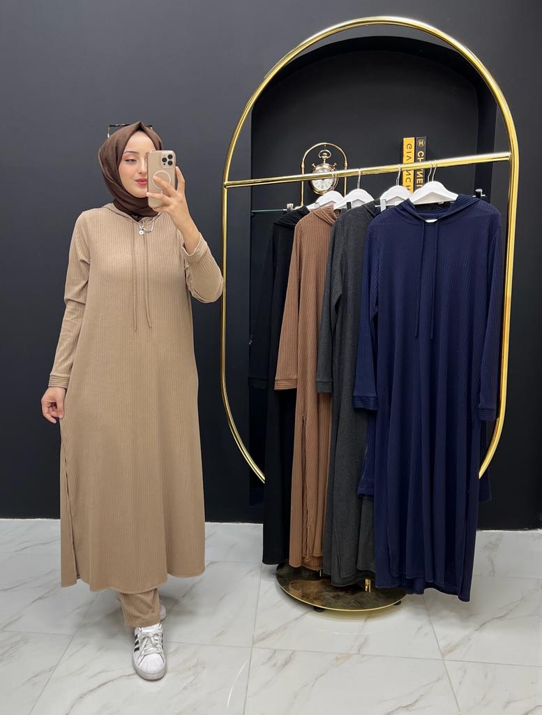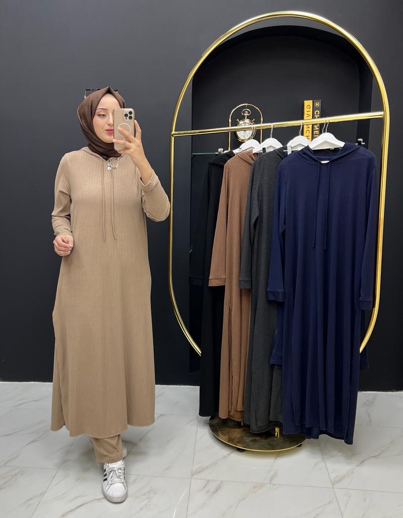 Beren takım ipek triko kumaş - Saklı tesettür kadın giyim elbise etek tunik takım