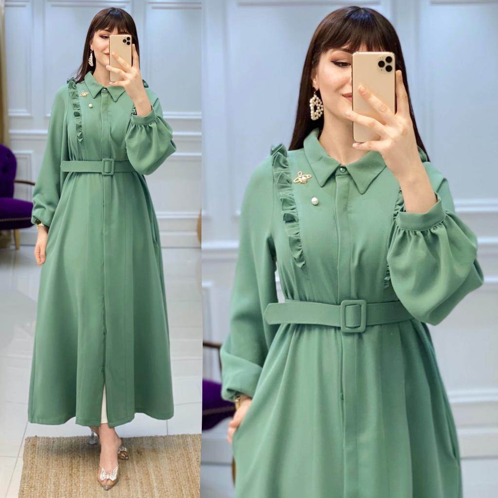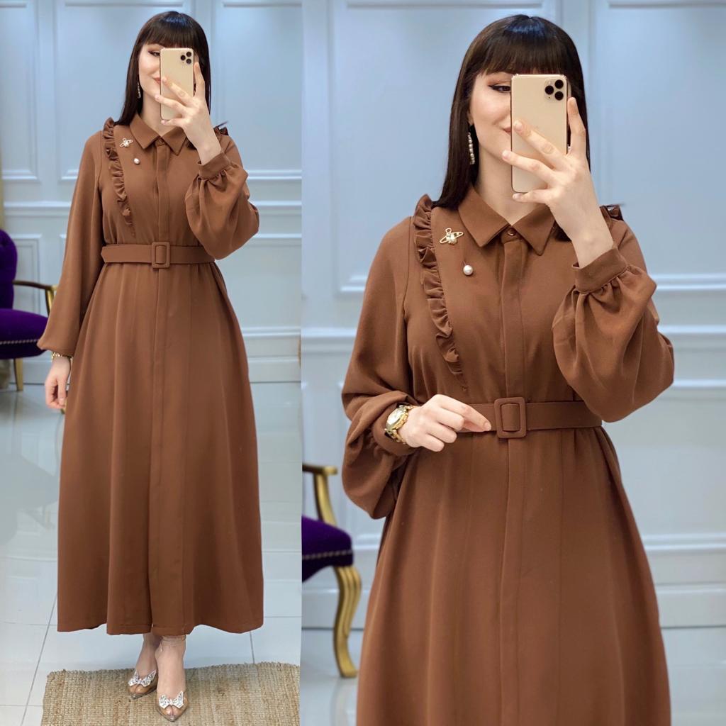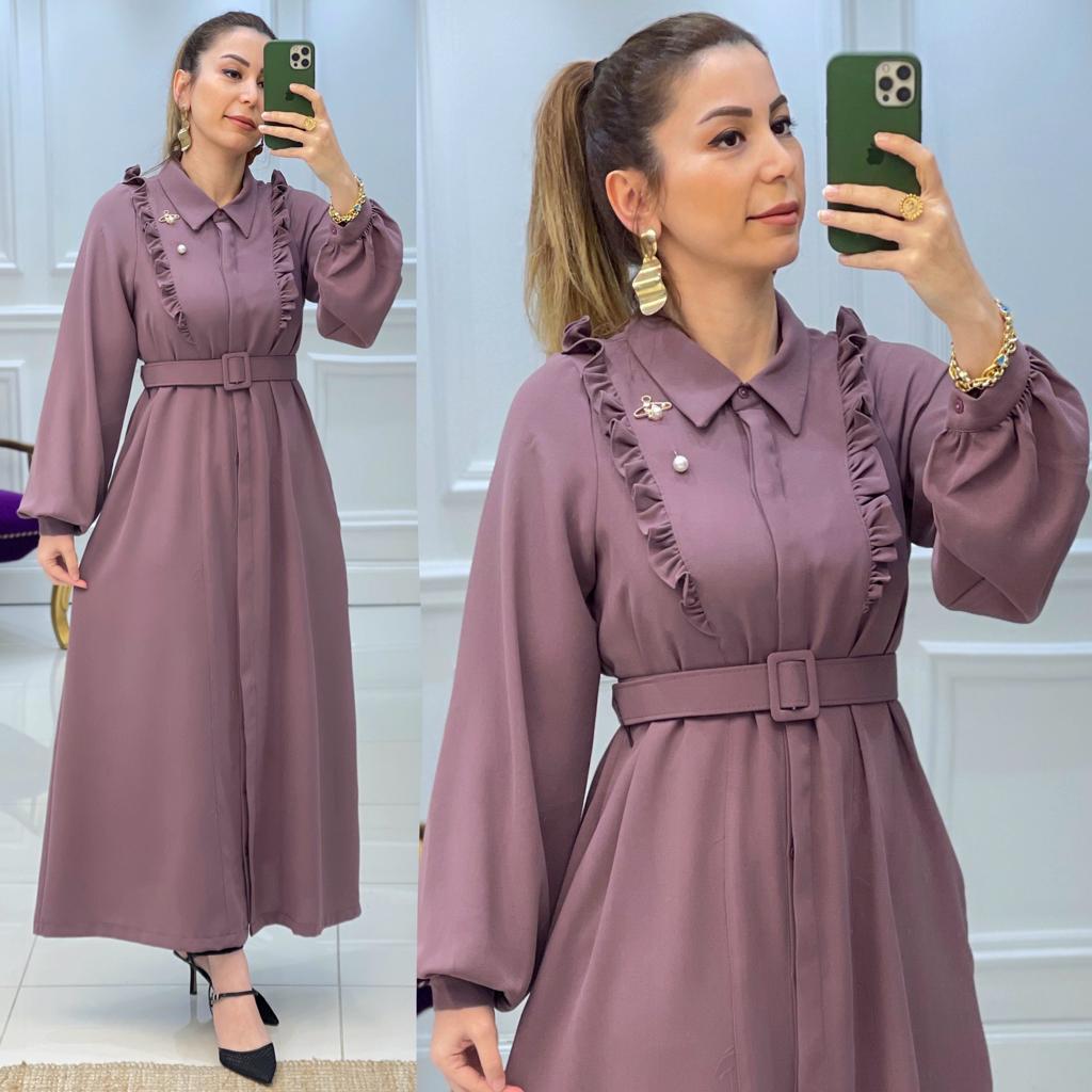 Ürün bilgileri: Birinci sınıf Krep kumaştır. Boydan boya düğmelidir. Broş hediyelidir. Kemer ürüne dahildir.
