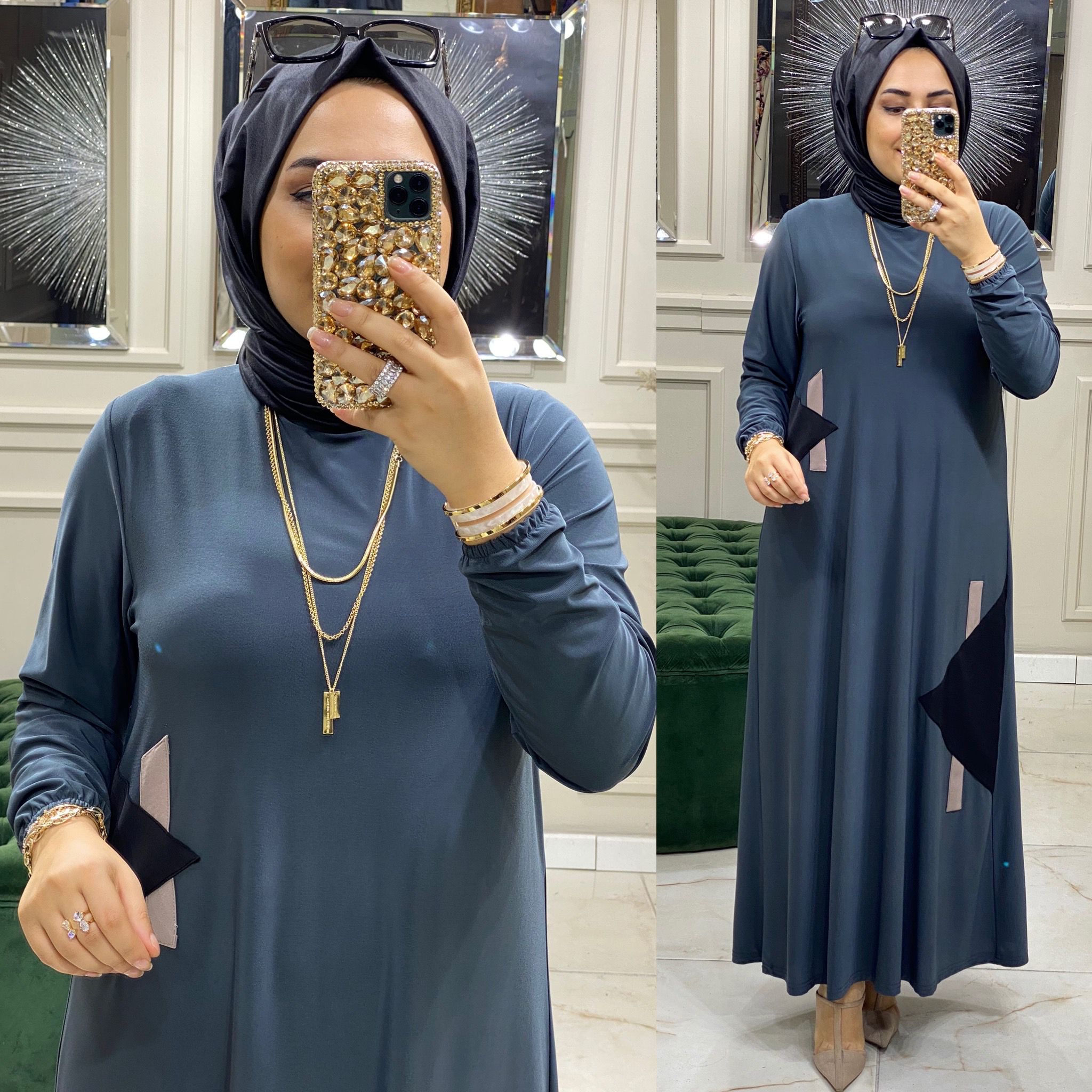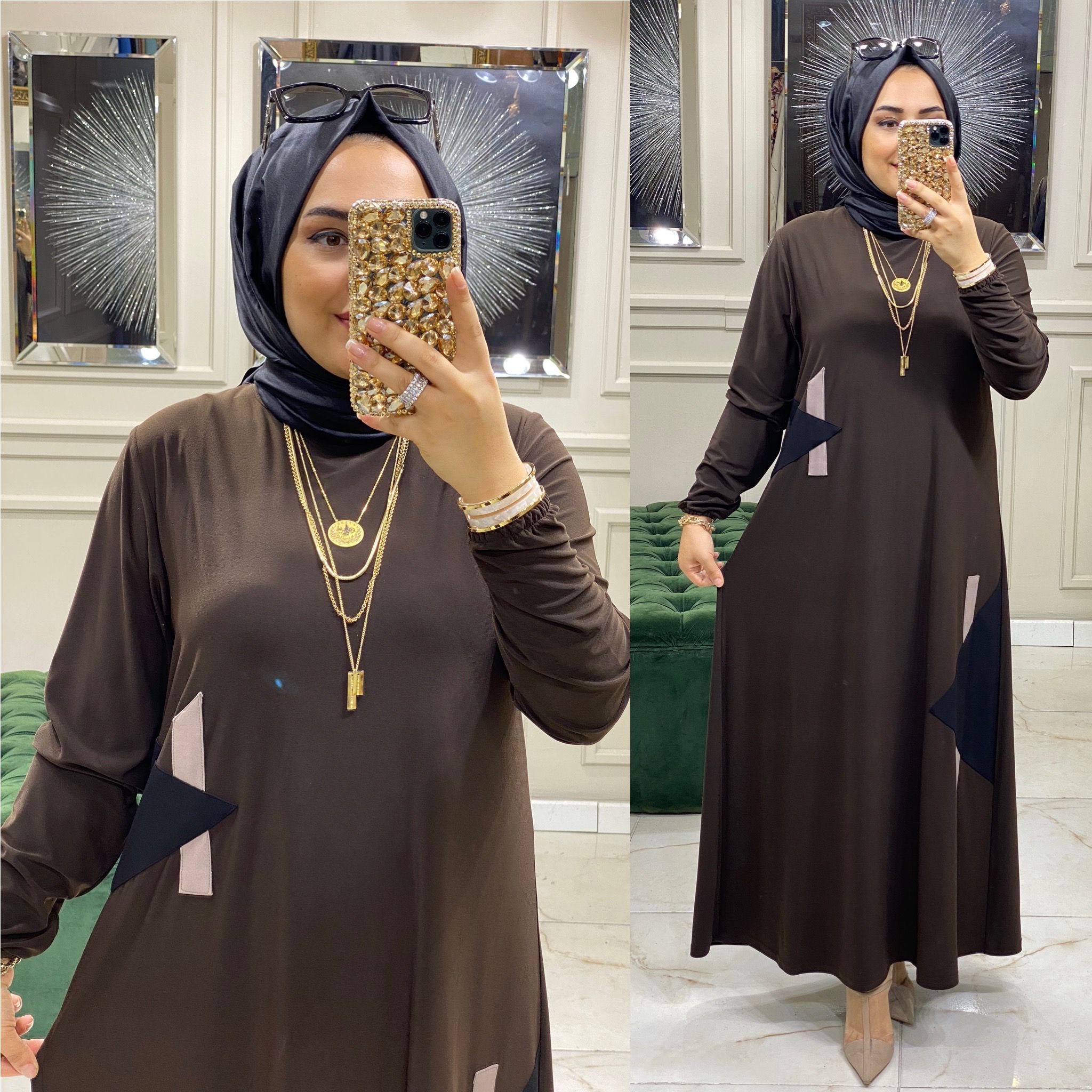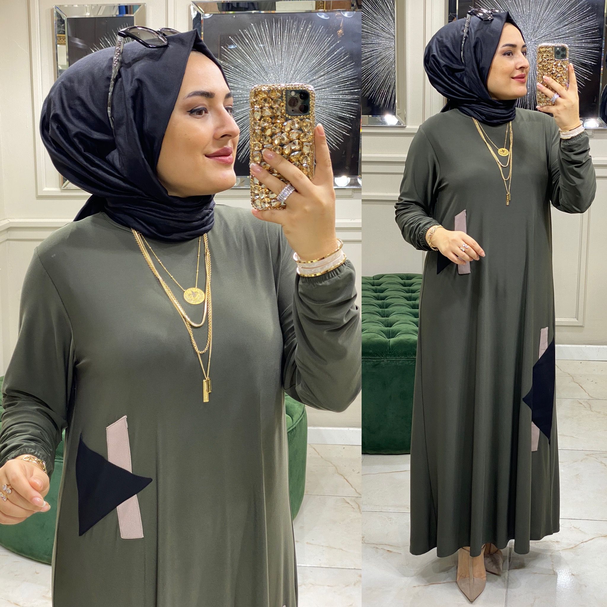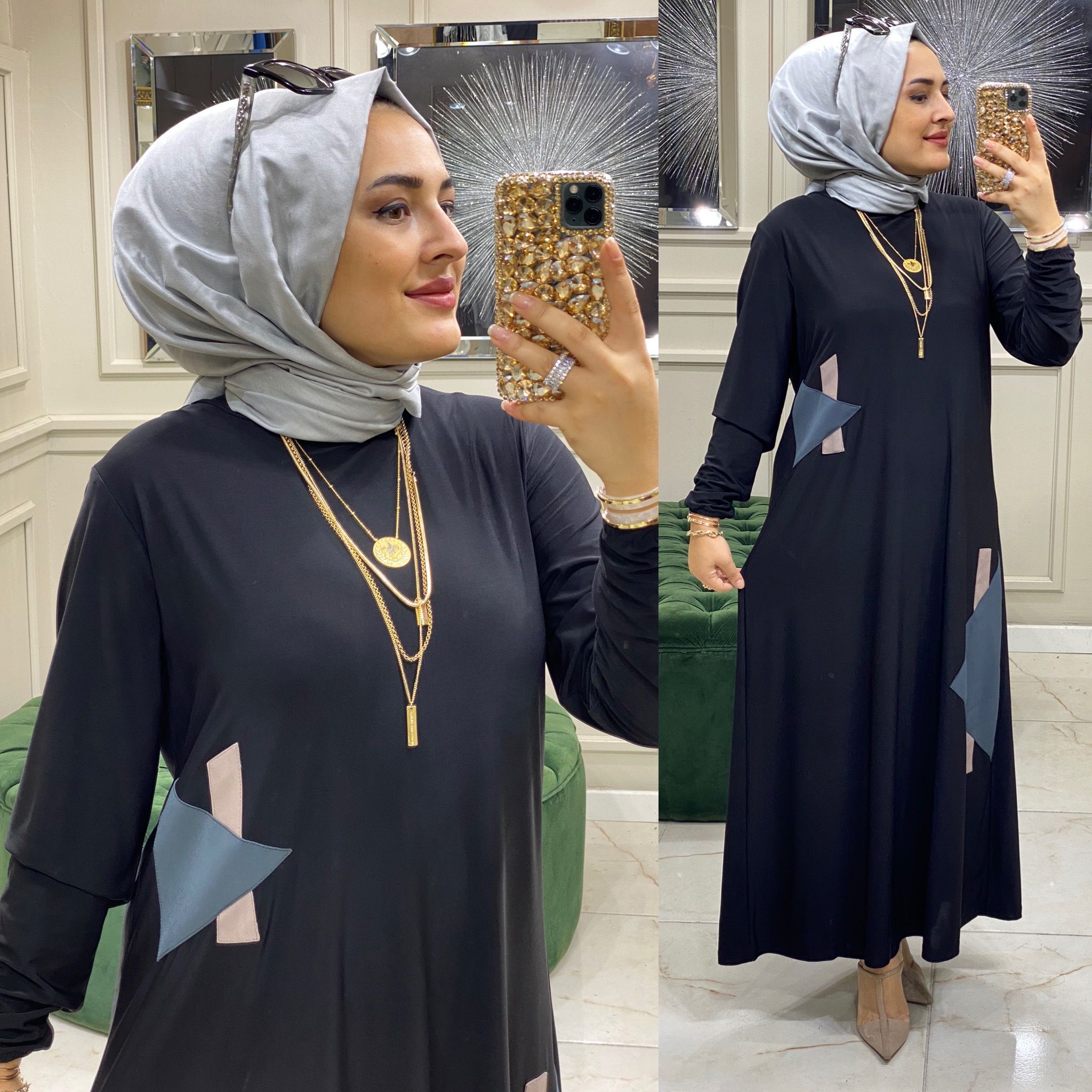 Büyük beden akel elbise - Saklı tesettür kadın giyim elbise etek tunik takım