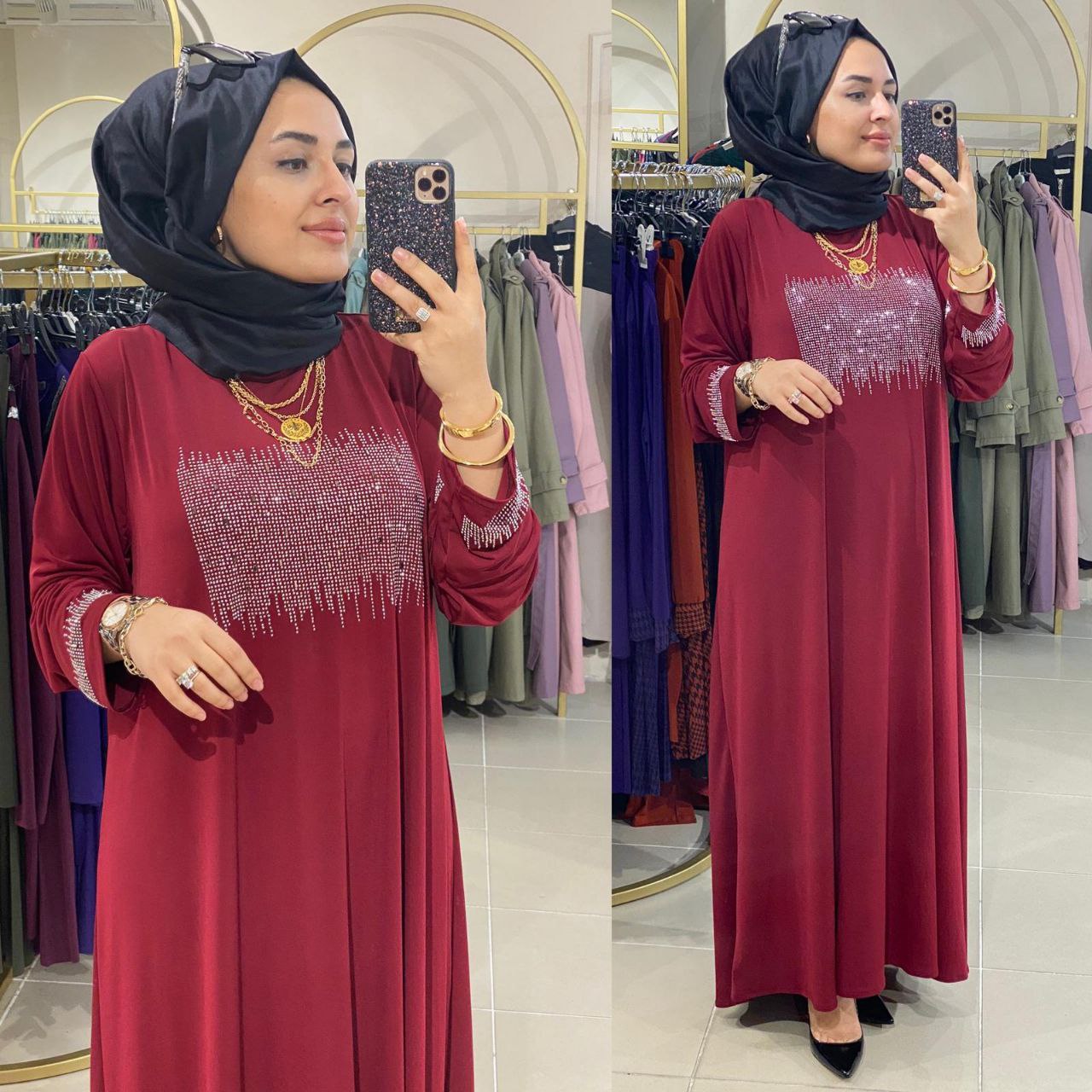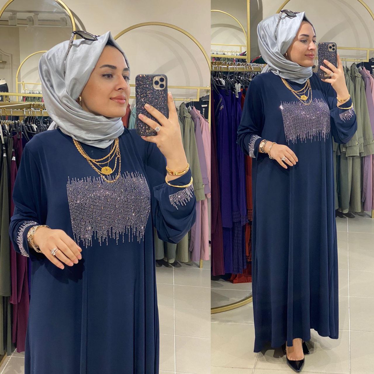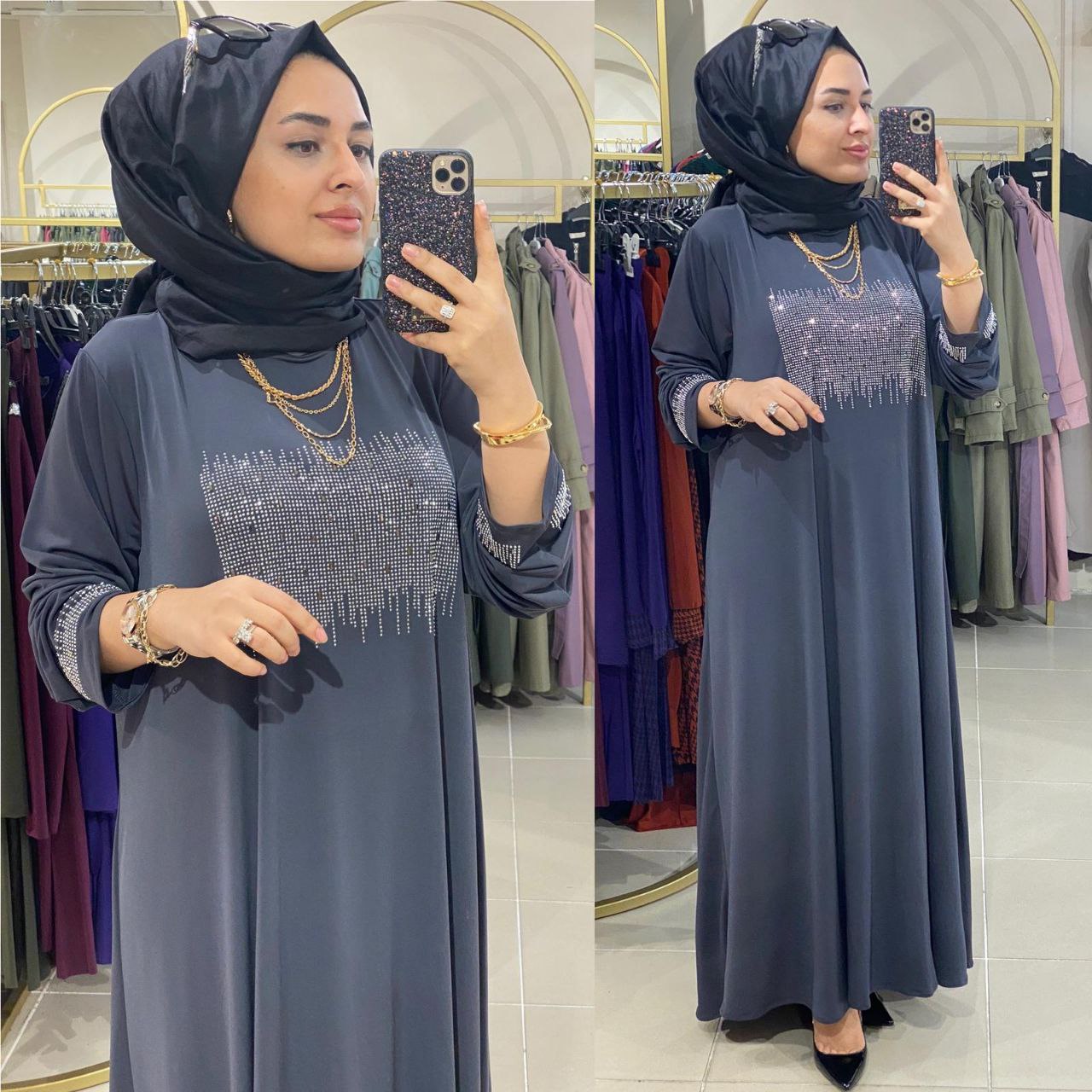 Büyük beden elbise - Saklı tesettür kadın giyim elbise etek tunik takım