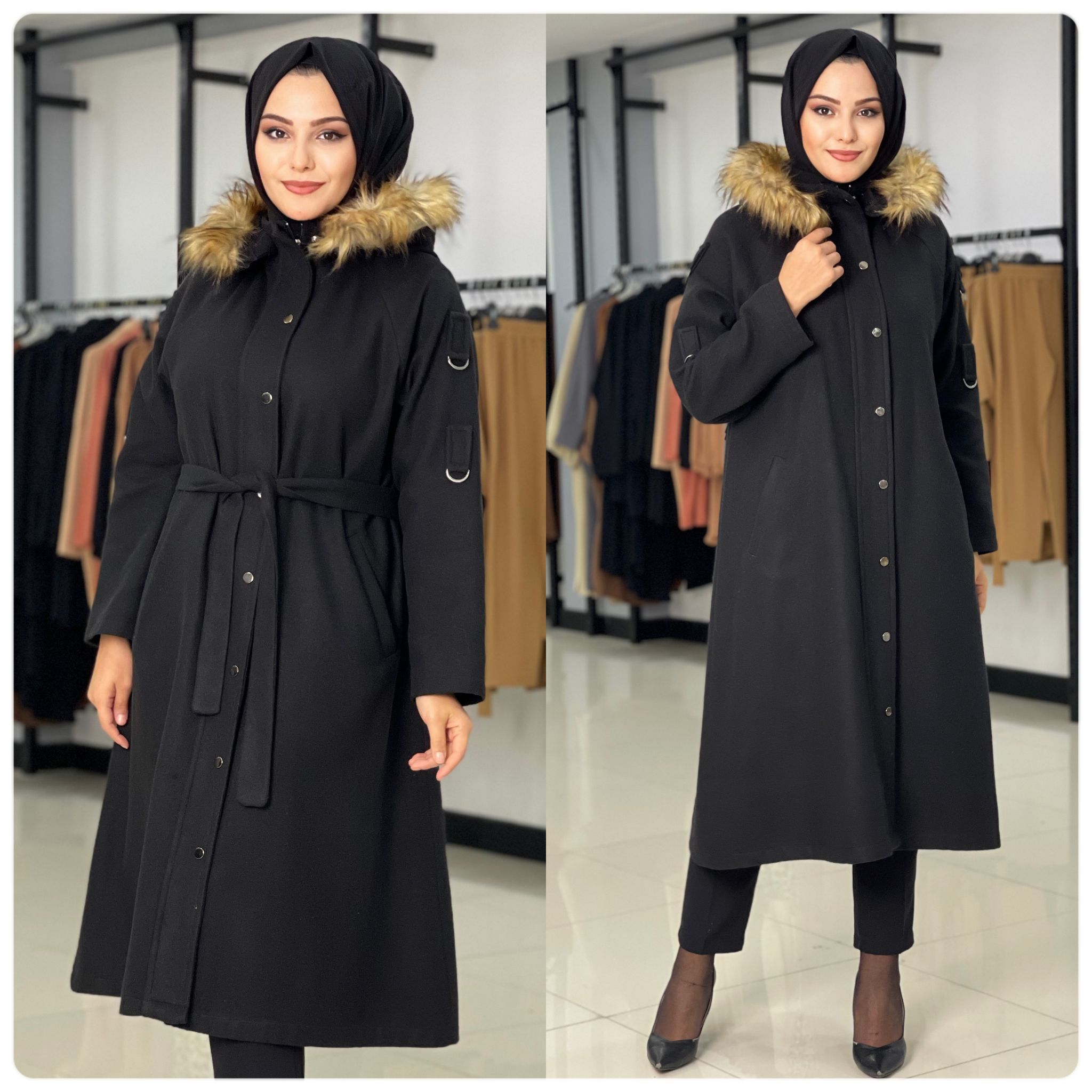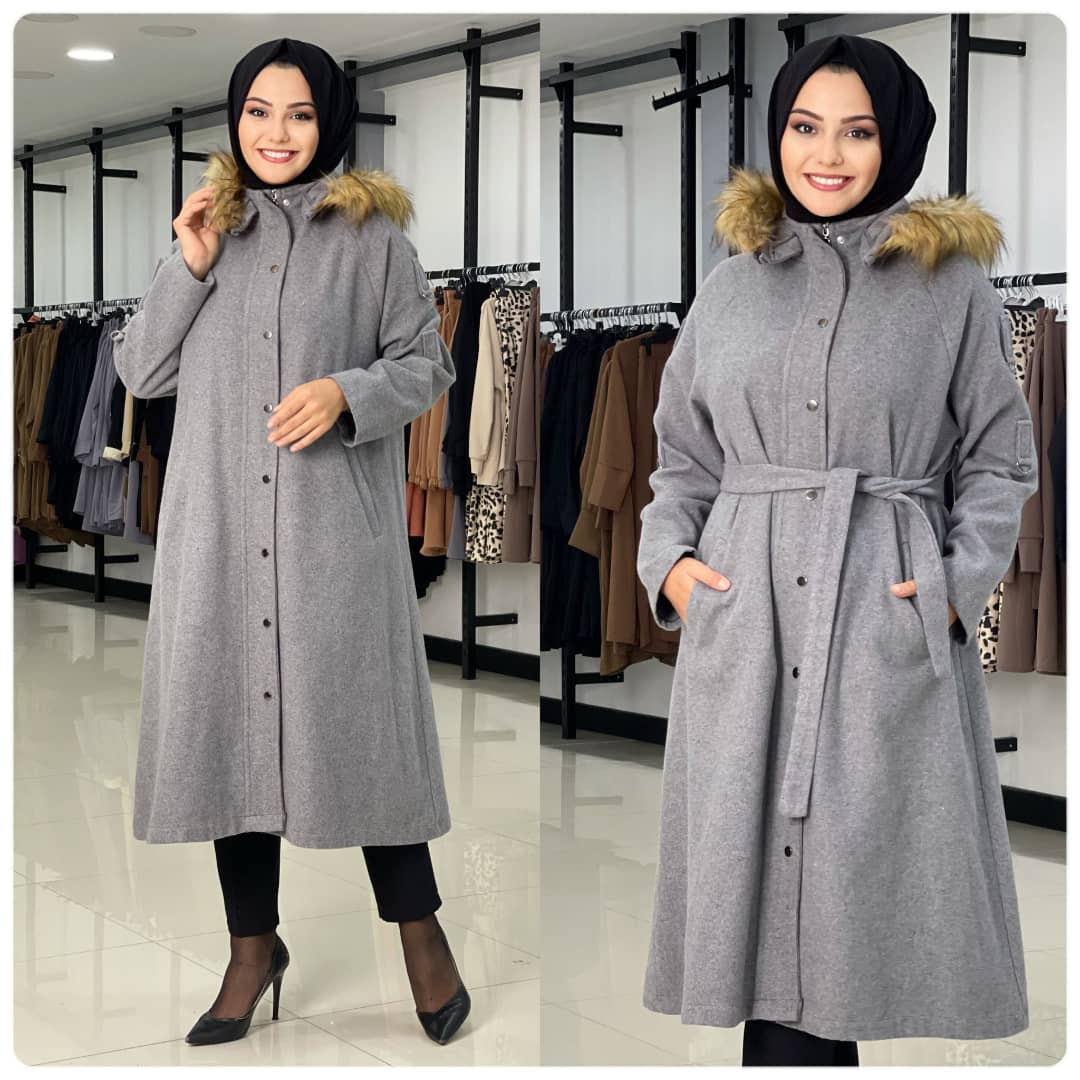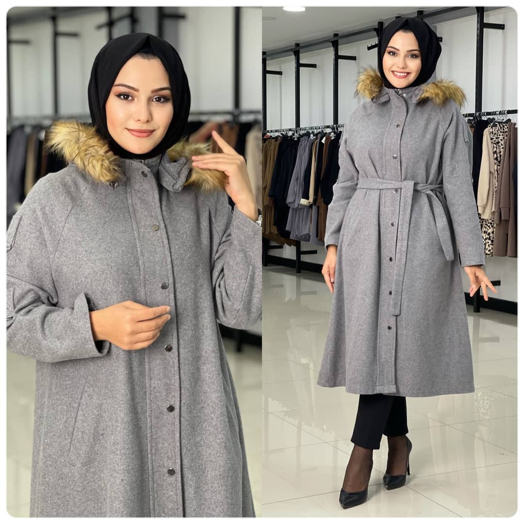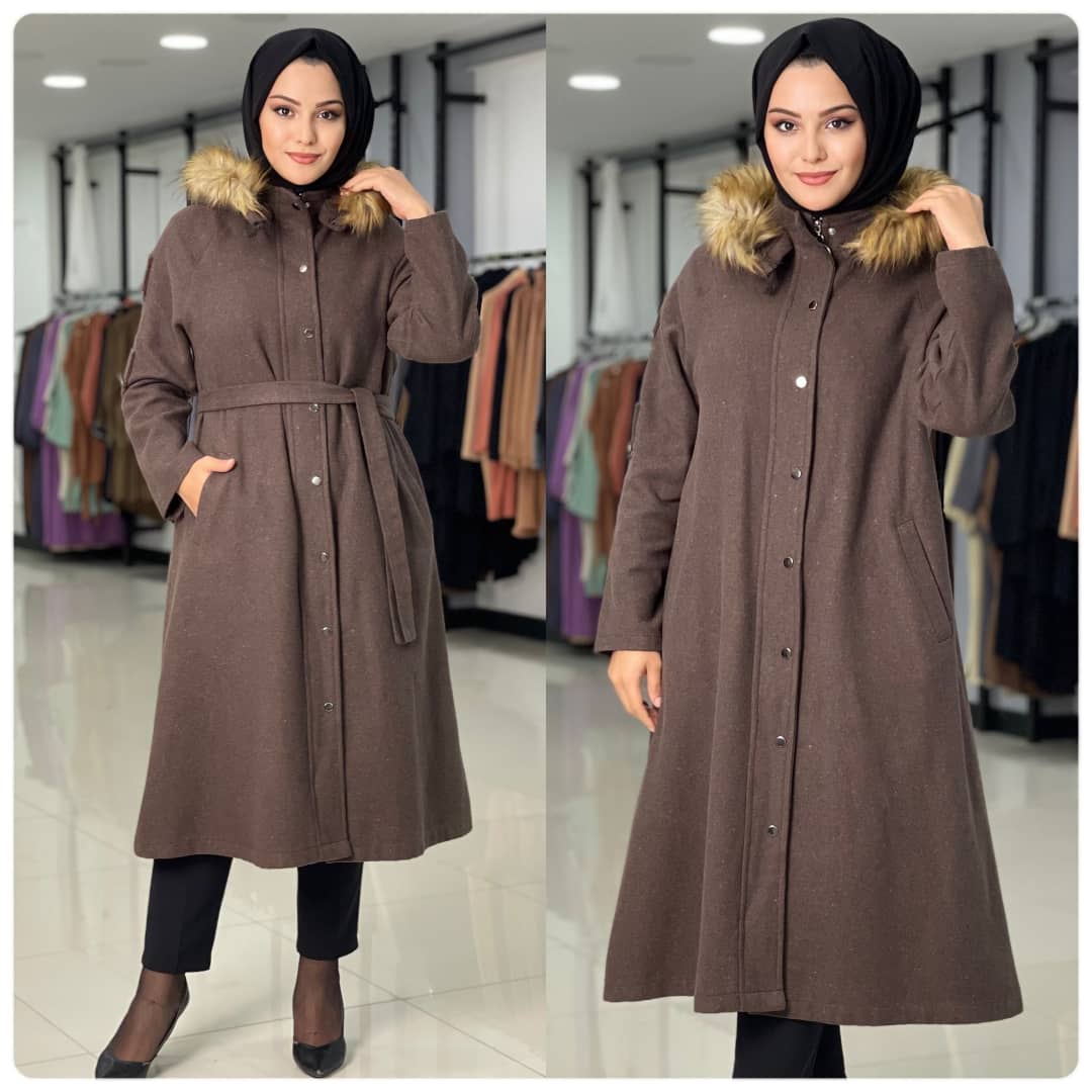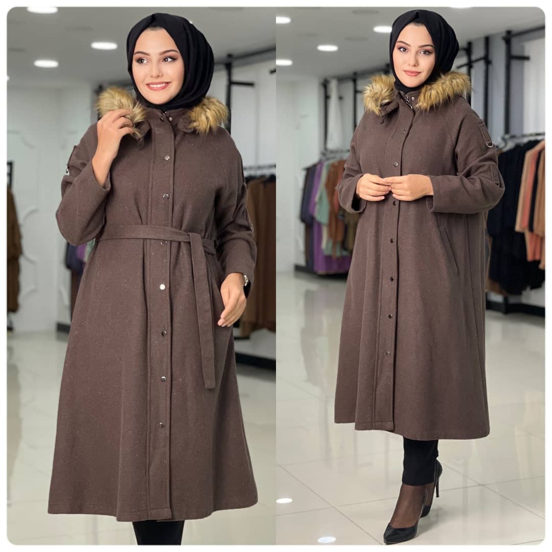 Büyük beden kaşe kaban - Saklı tesettür kadın giyim elbise etek tunik takım