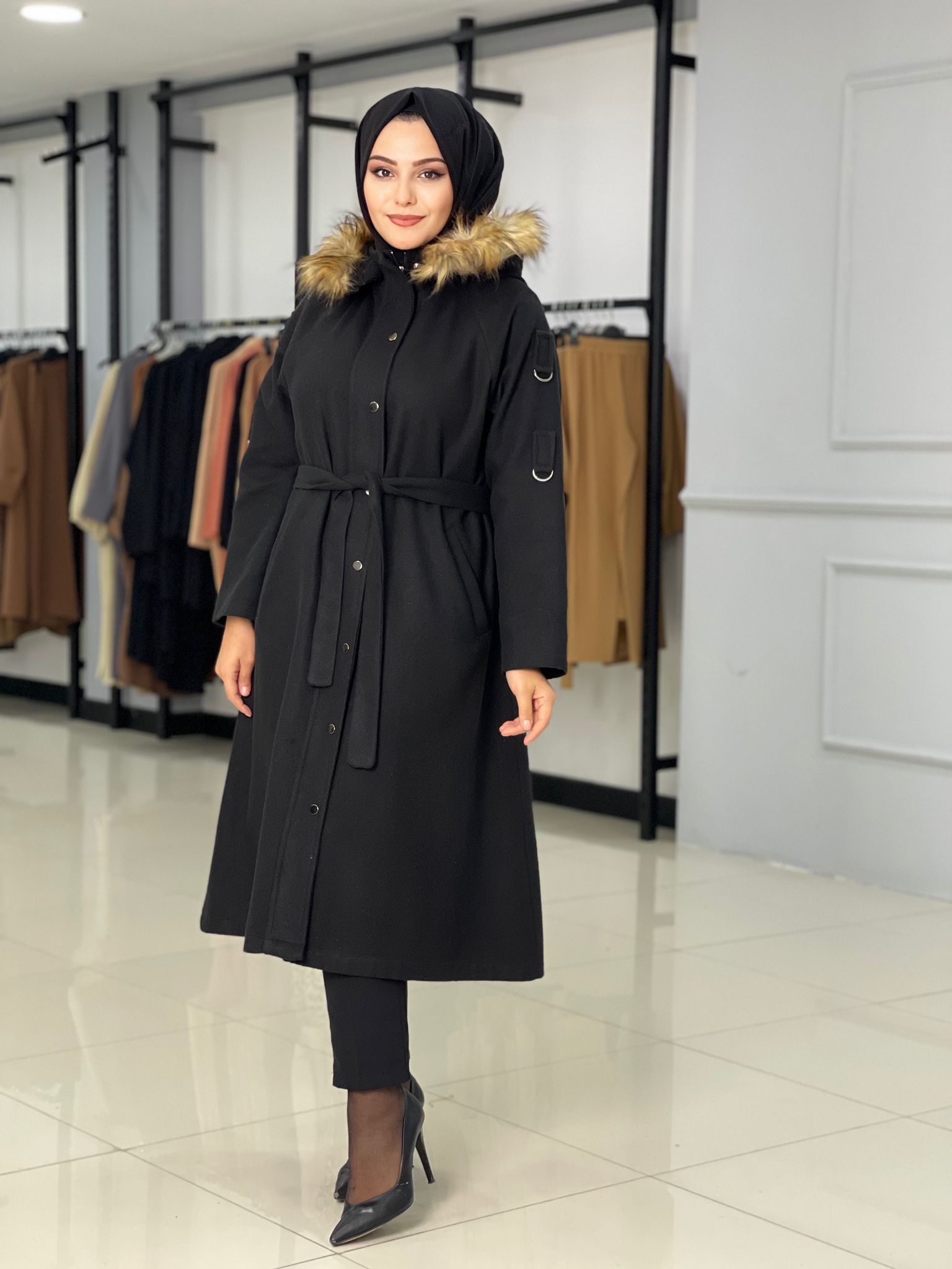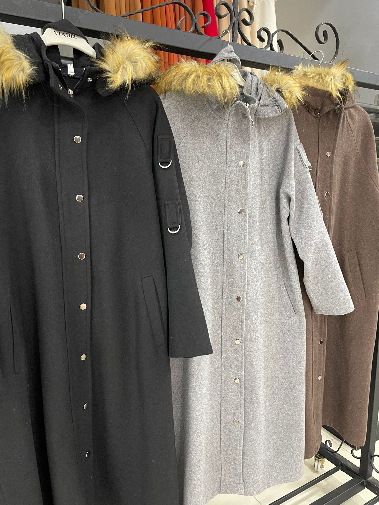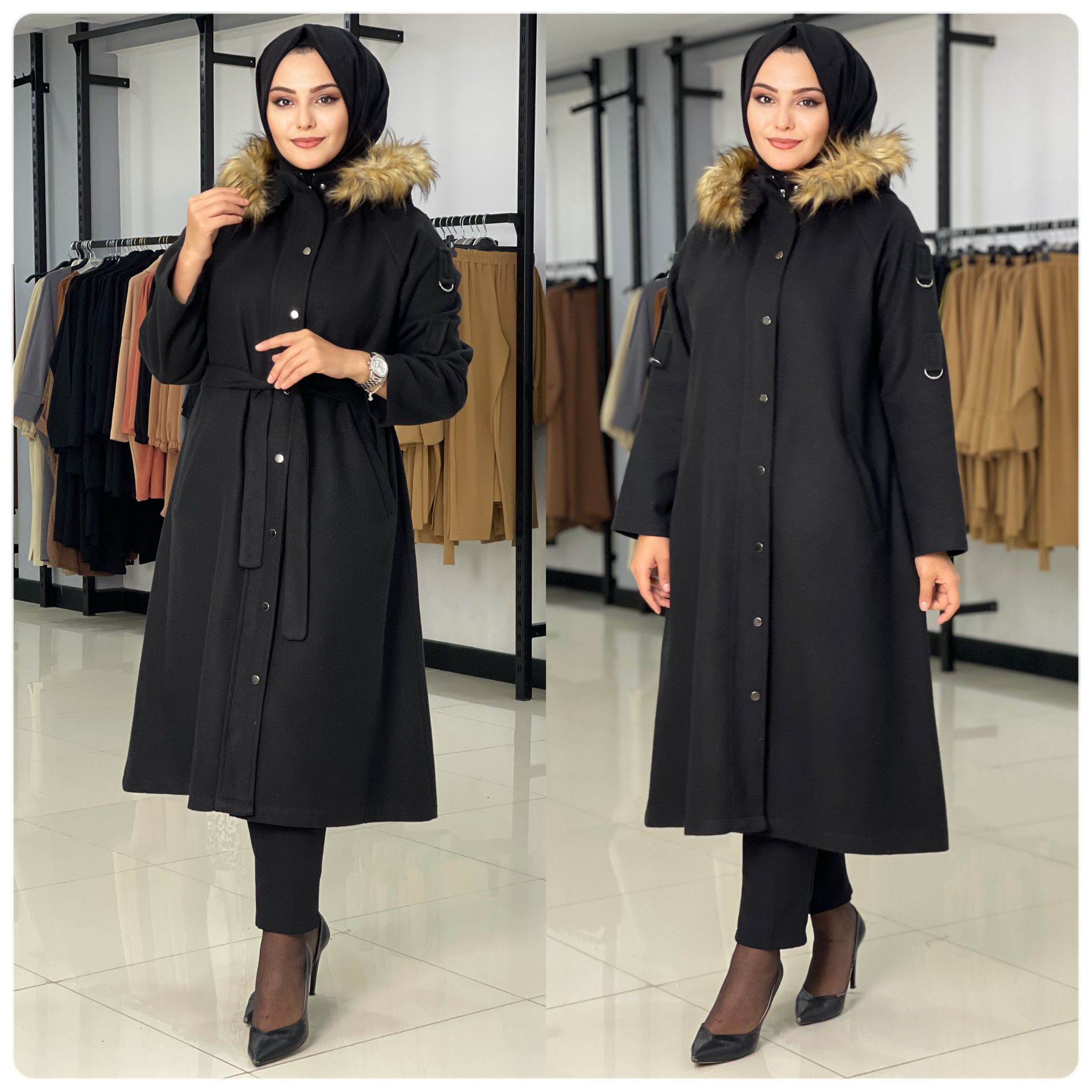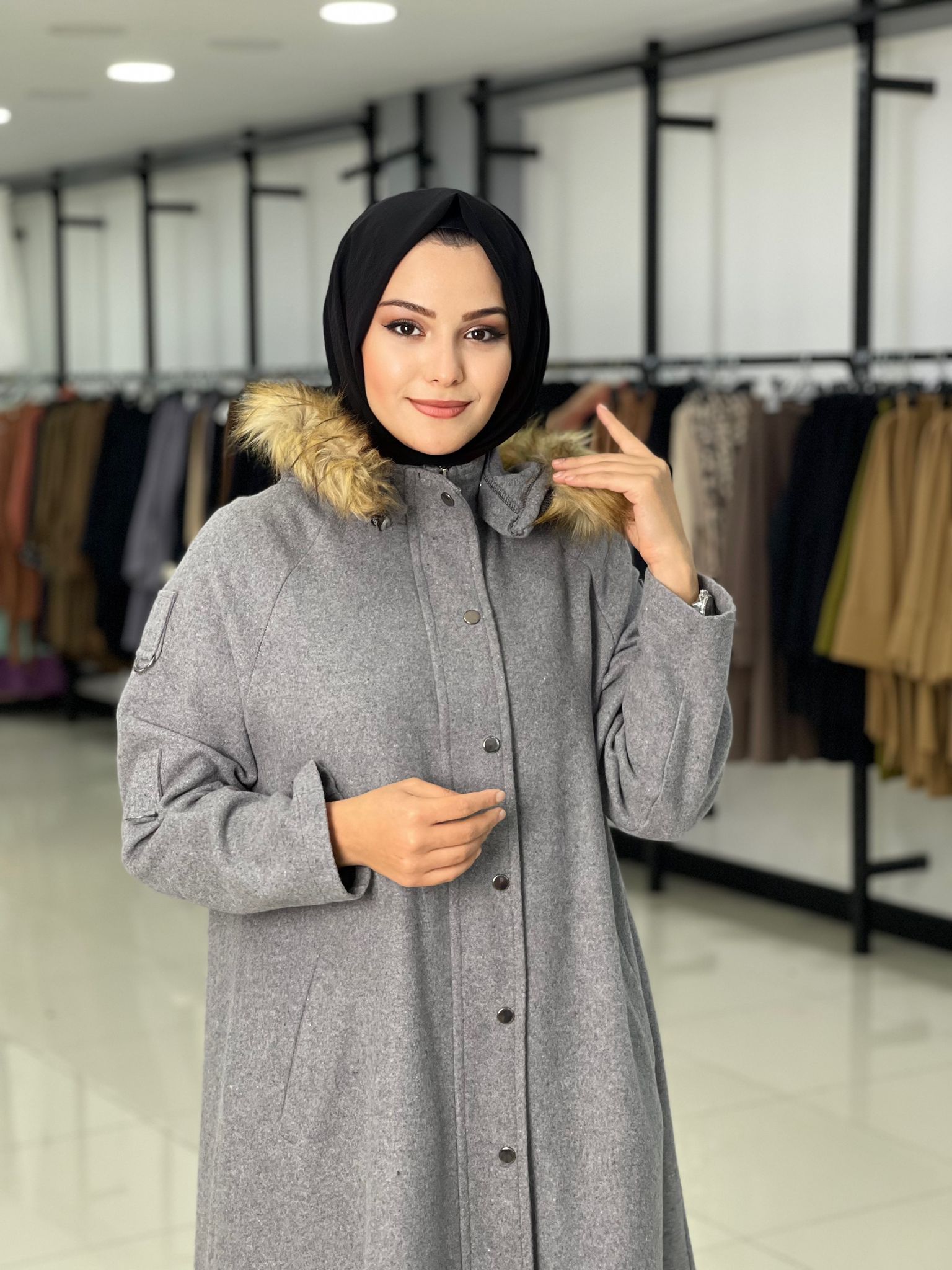 Büyük beden kaşe kaban - Saklı tesettür kadın giyim elbise etek tunik takım