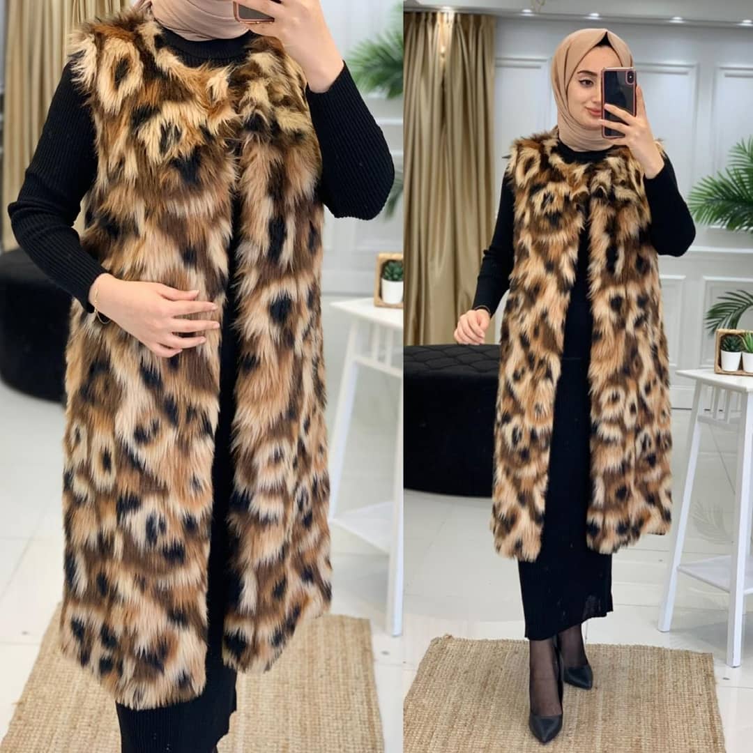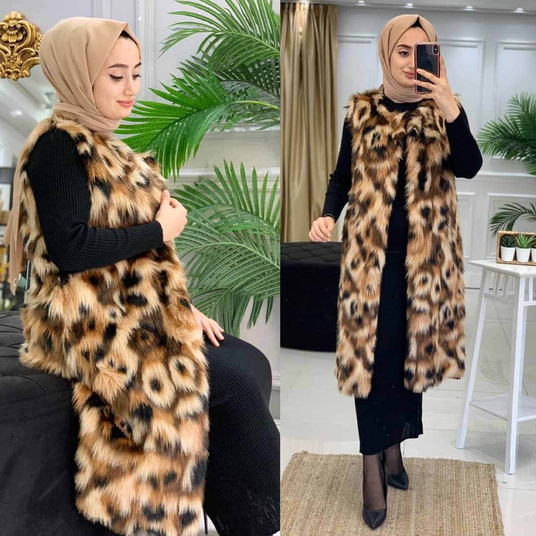 Büyük beden kürk yelek - Saklı tesettür kadın giyim elbise etek tunik takım