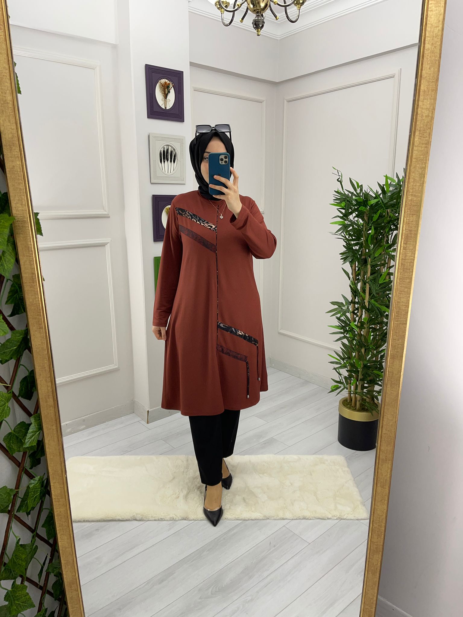 Büyük beden tunik takım likralı - Saklı tesettür kadın giyim elbise etek tunik takım
