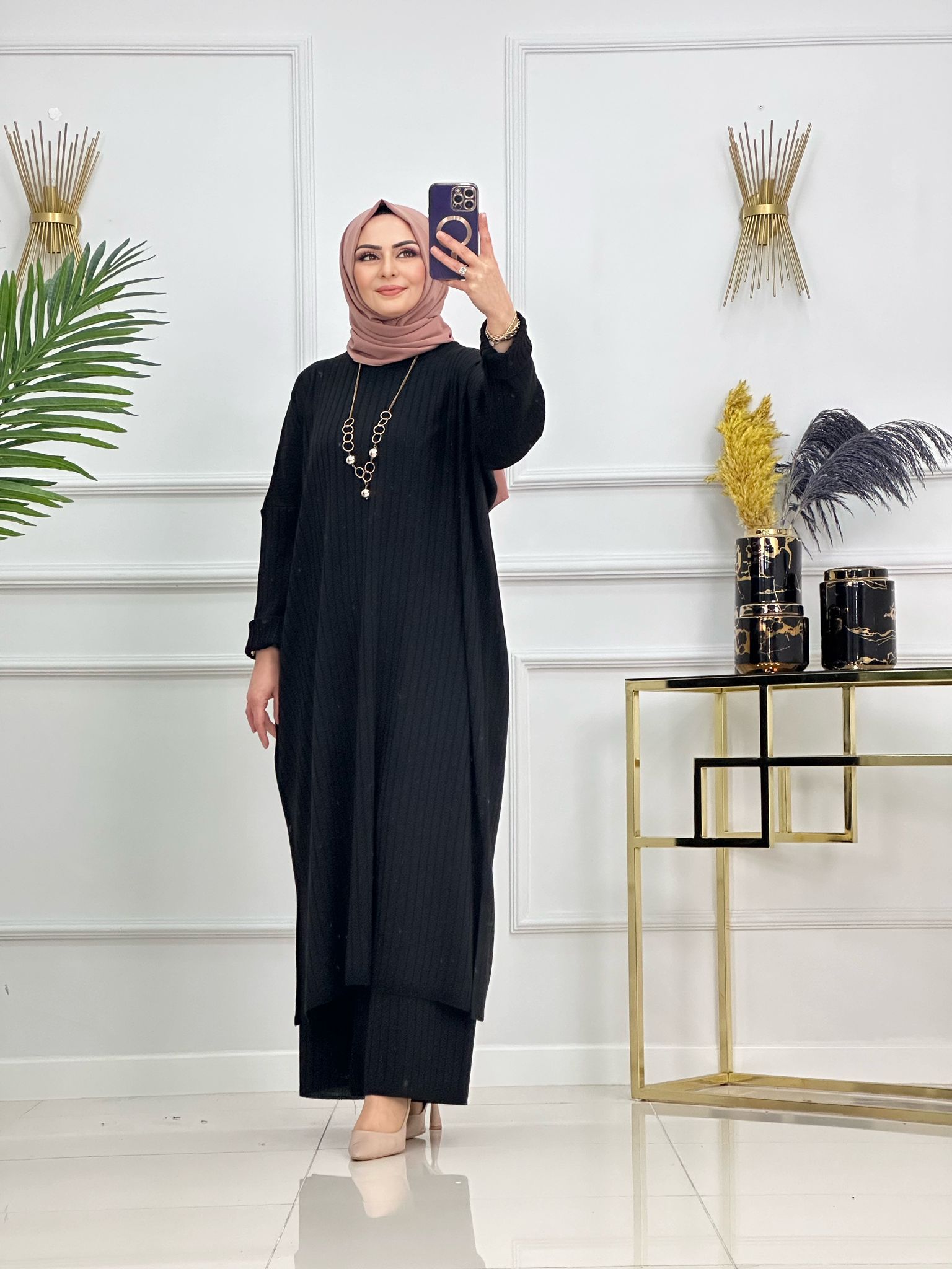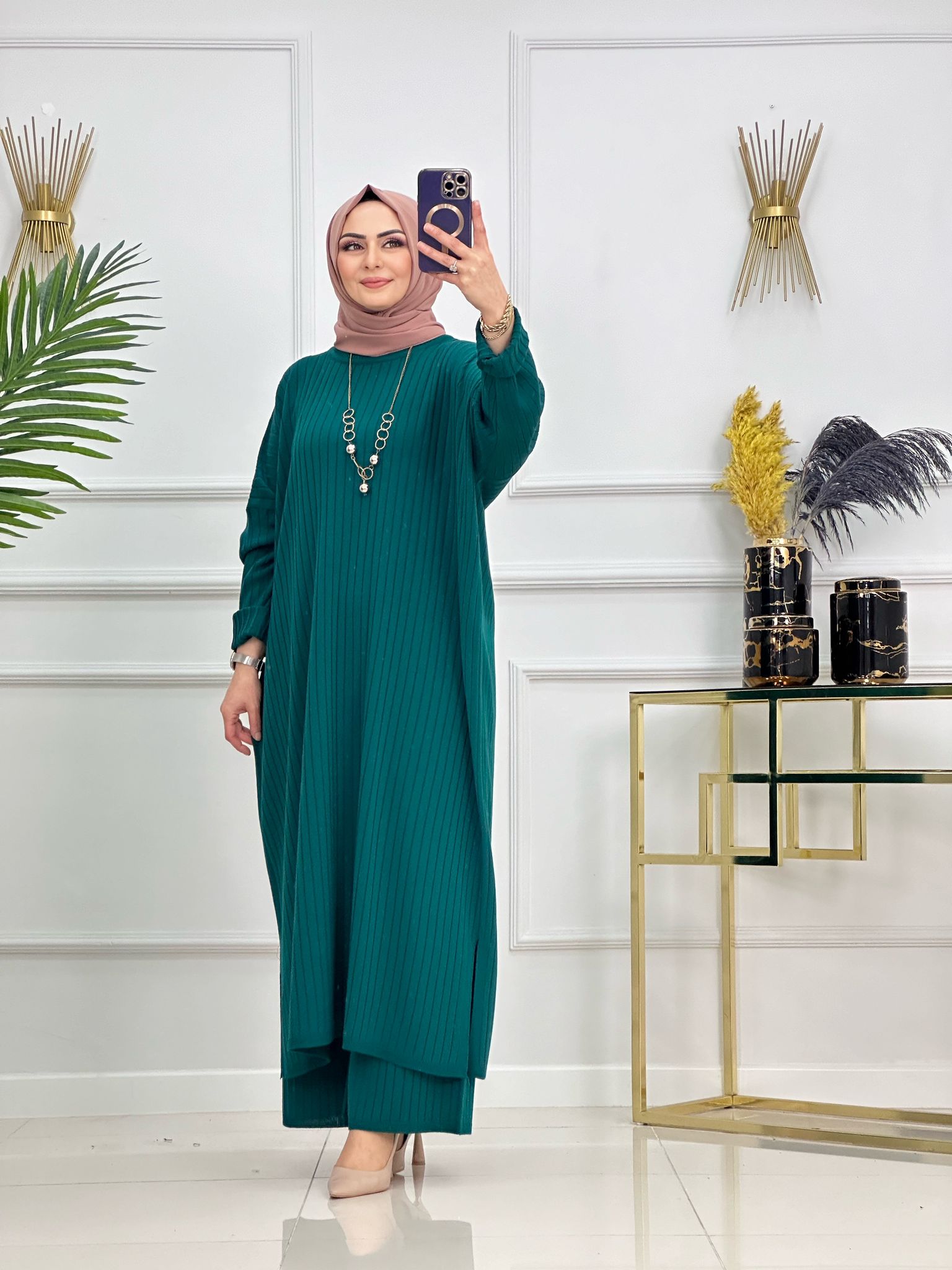 Saklı tesettür kadın giyim elbise etek tunik takım