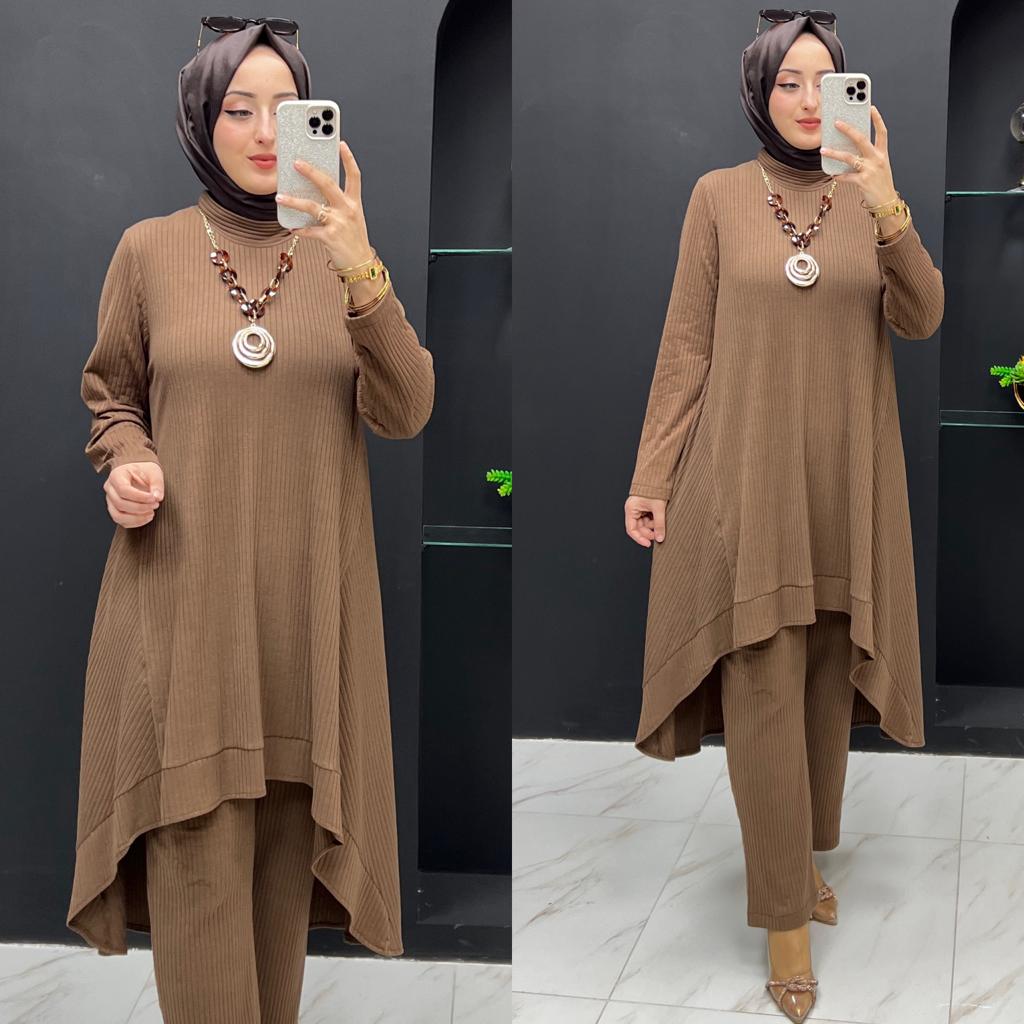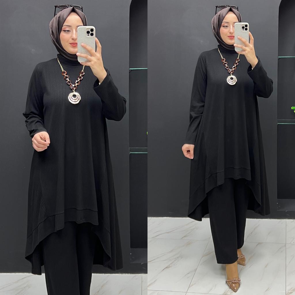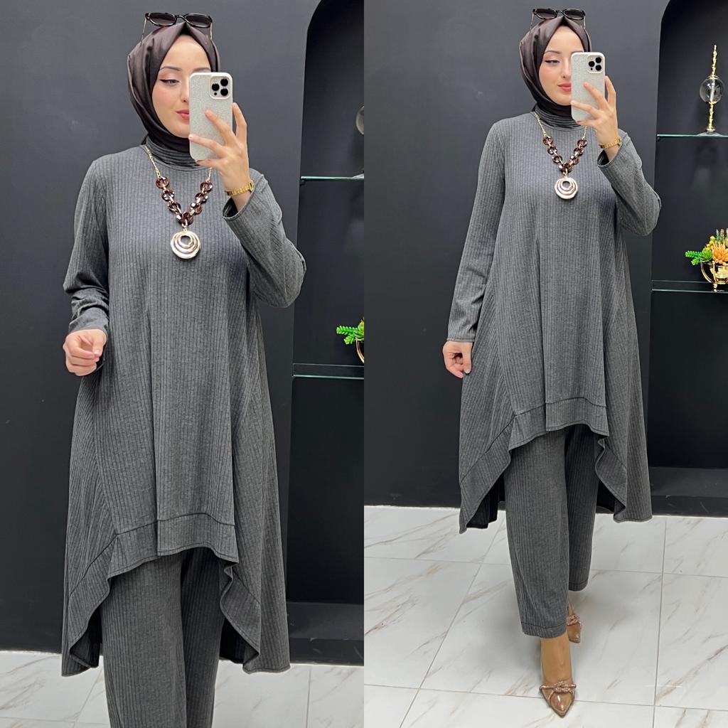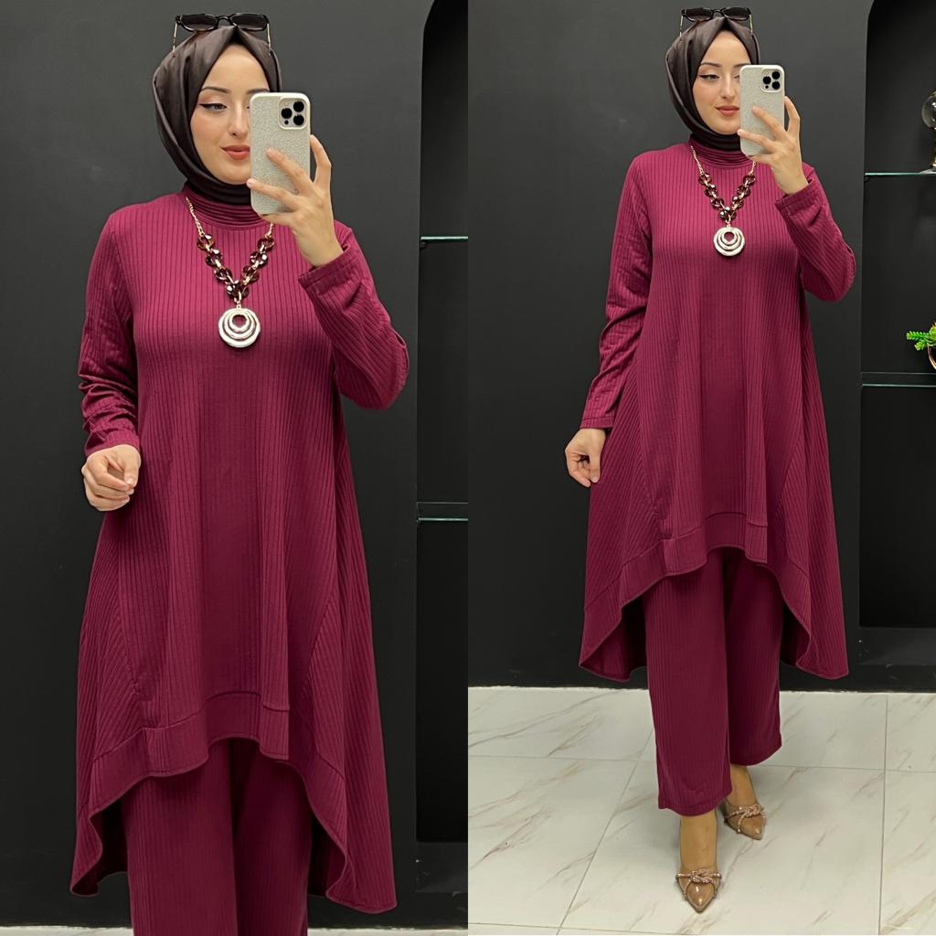 Cansu takım triko kumaş - Saklı tesettür kadın giyim elbise etek tunik takım