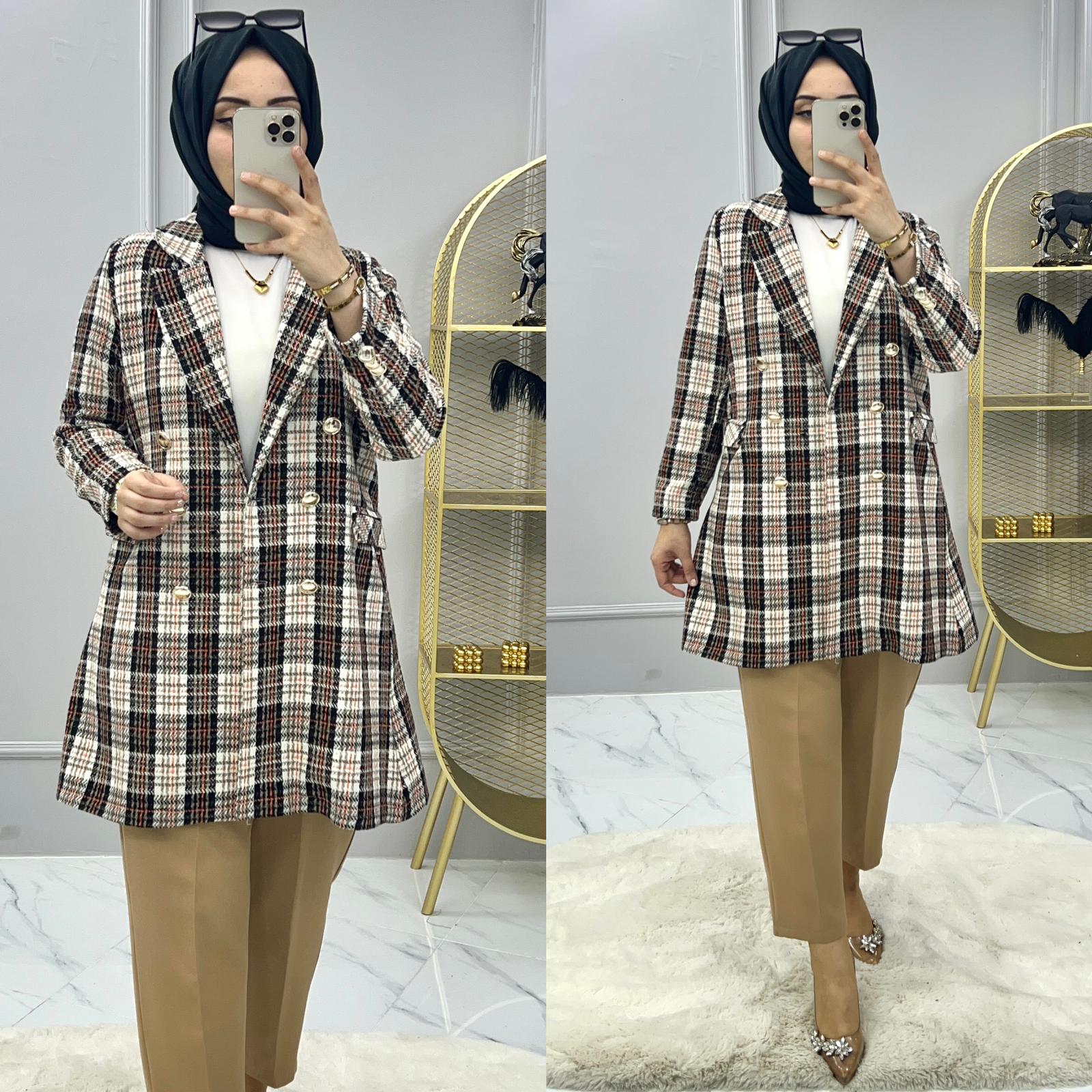 Ceket içlik pantolon takım tuvit kumaş - Saklı tesettür kadın giyim elbise etek tunik takım