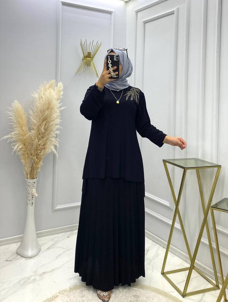 Cepli elbise ekosa kumaş - Saklı tesettür kadın giyim elbise etek tunik takım