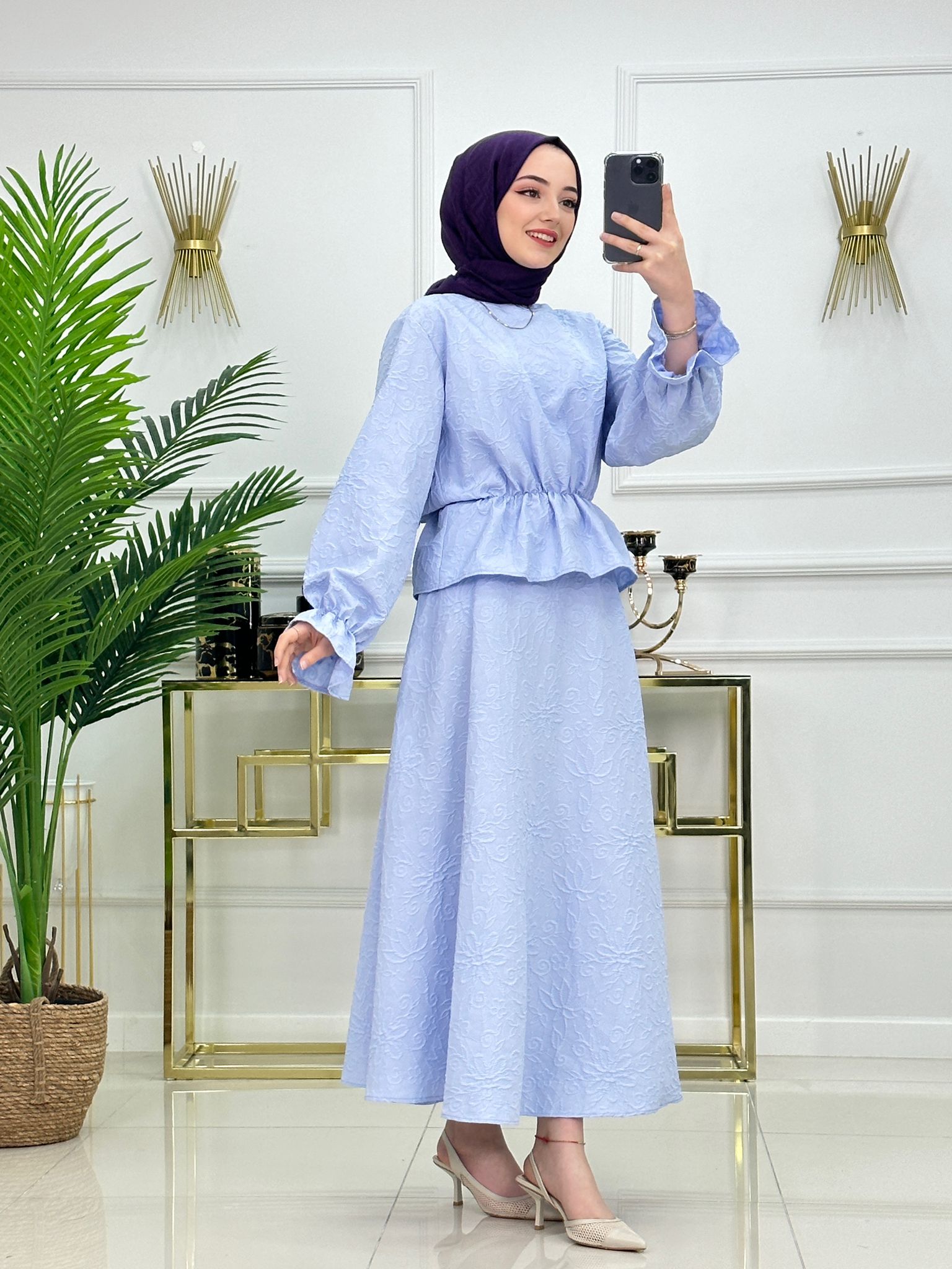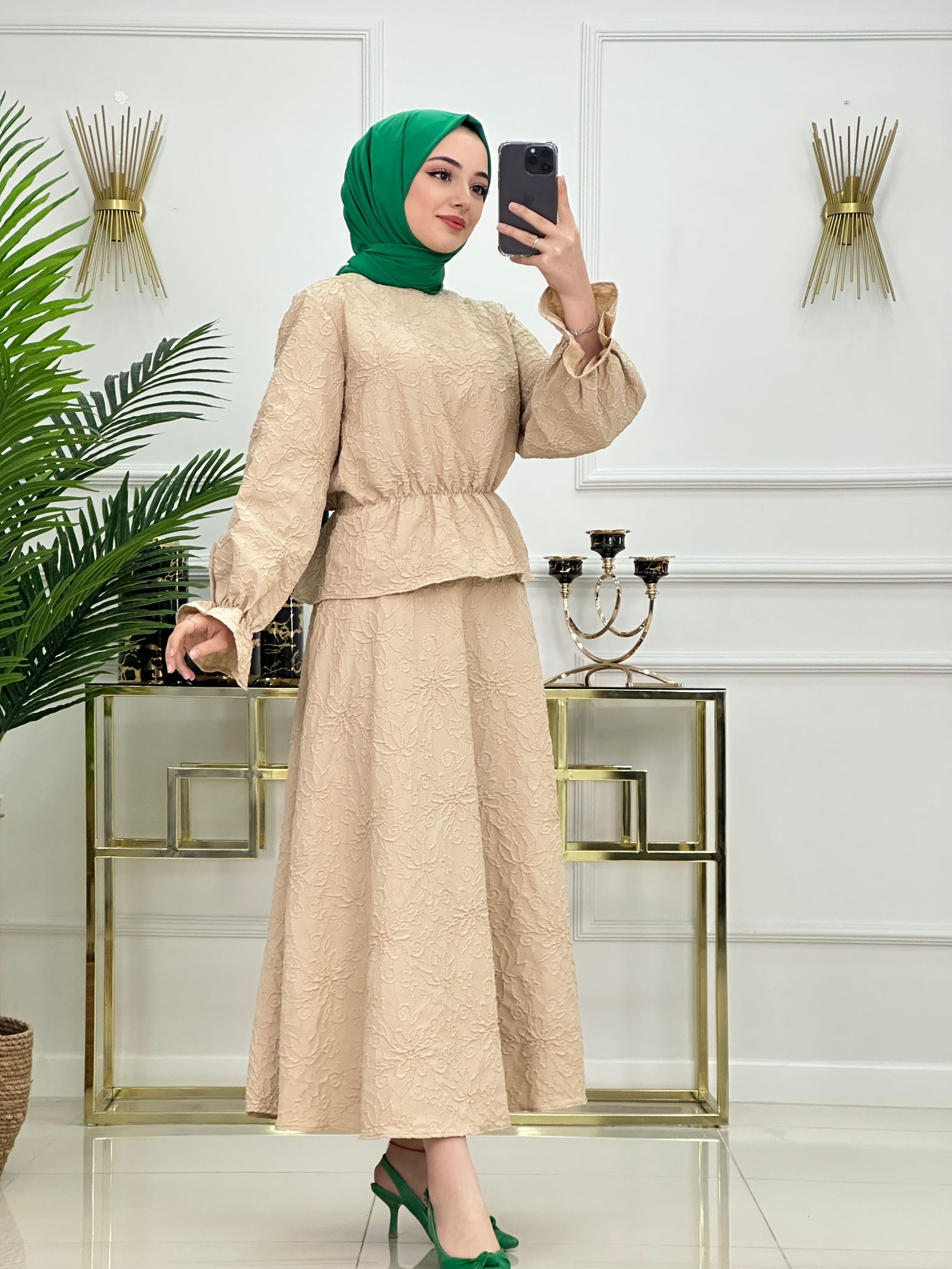 Çiçek takım pamuk kumaş - Saklı tesettür kadın giyim elbise etek tunik takım