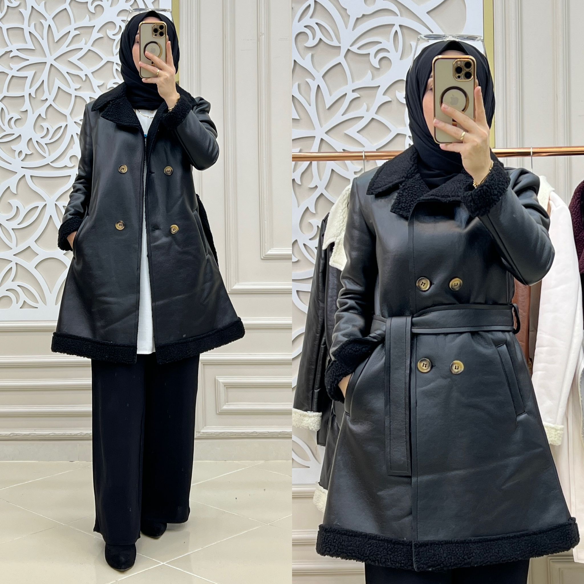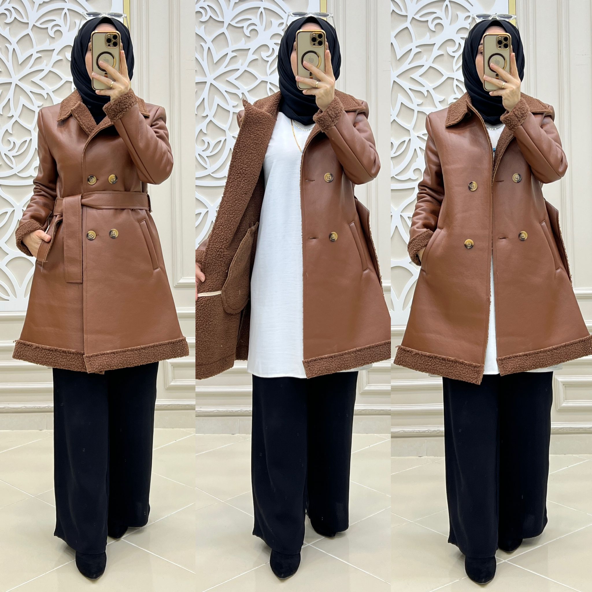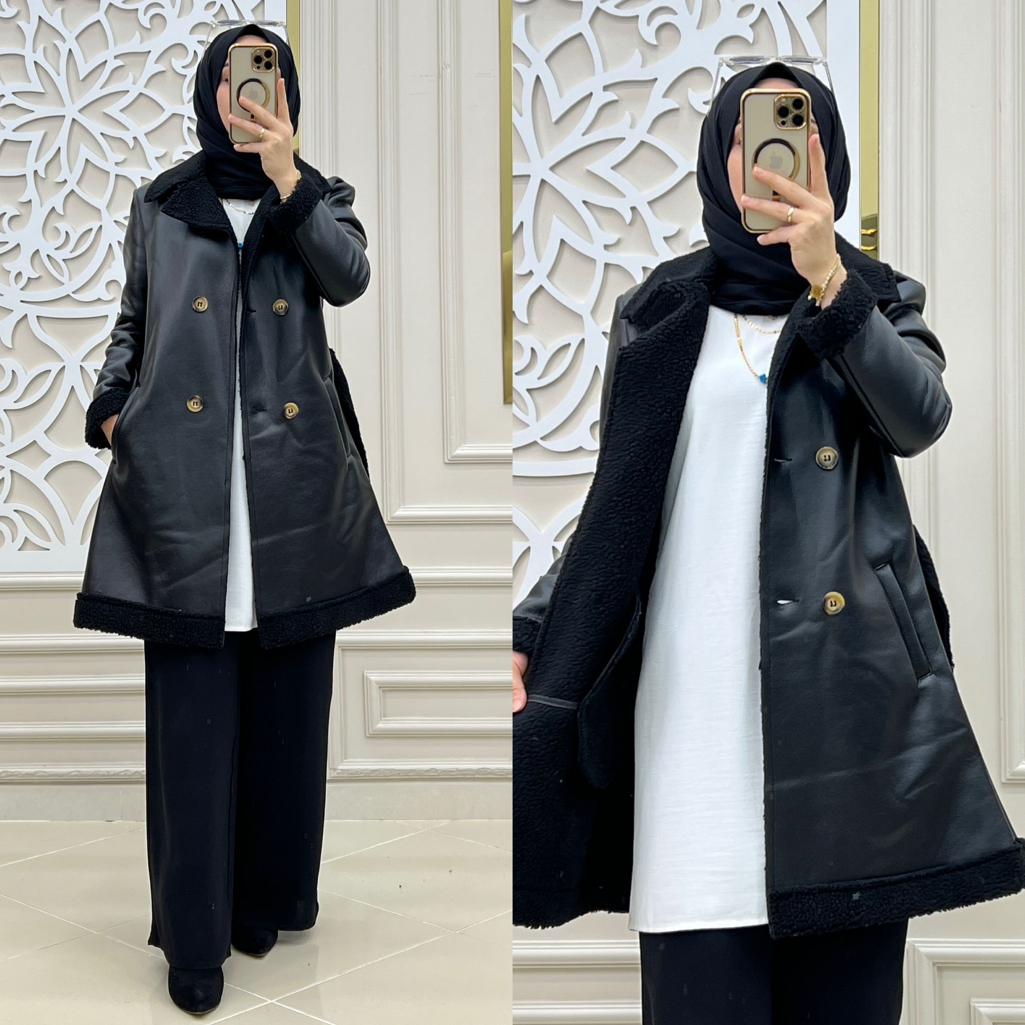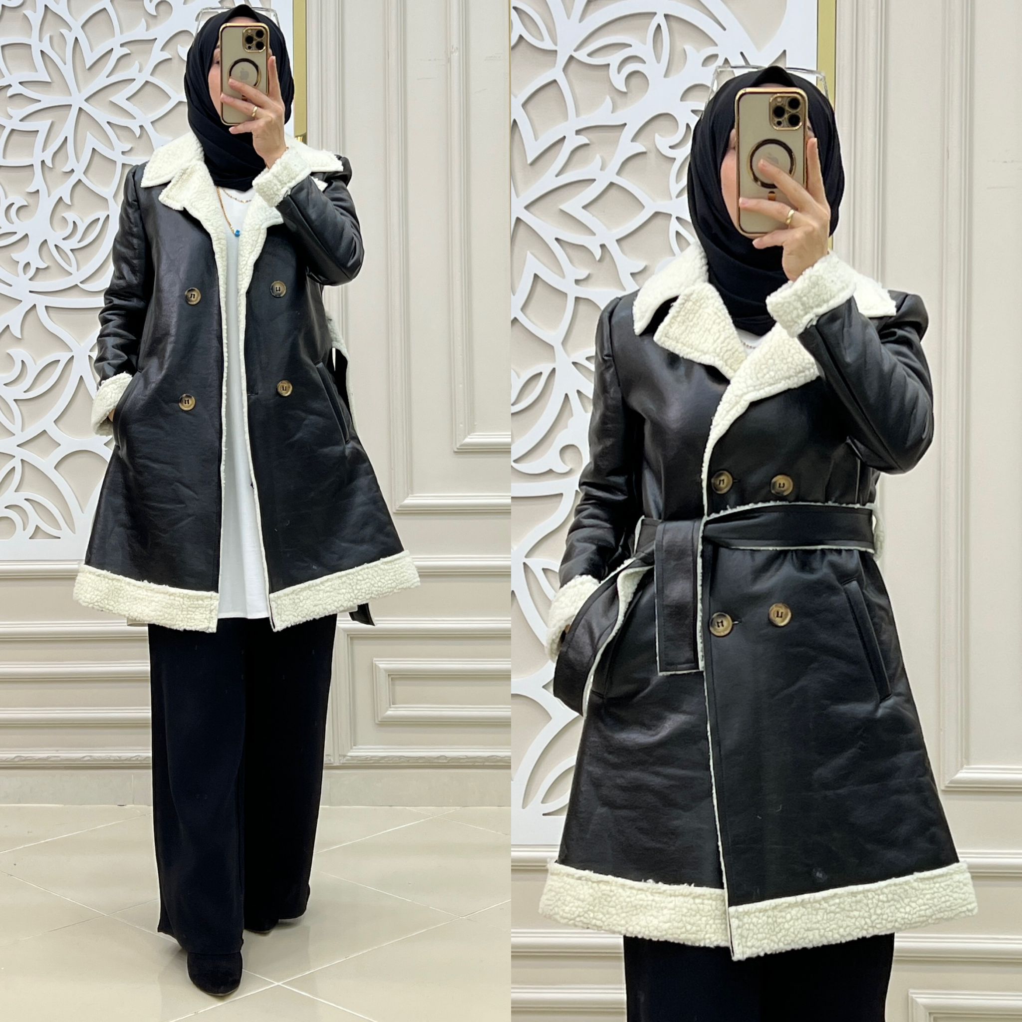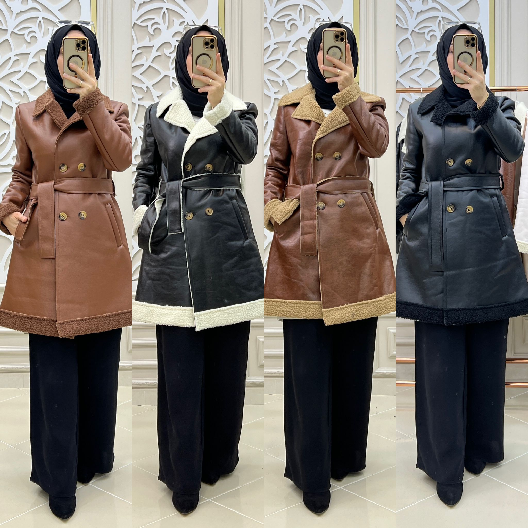 Deri kap içi kürklü - Saklı tesettür kadın giyim elbise etek tunik takım