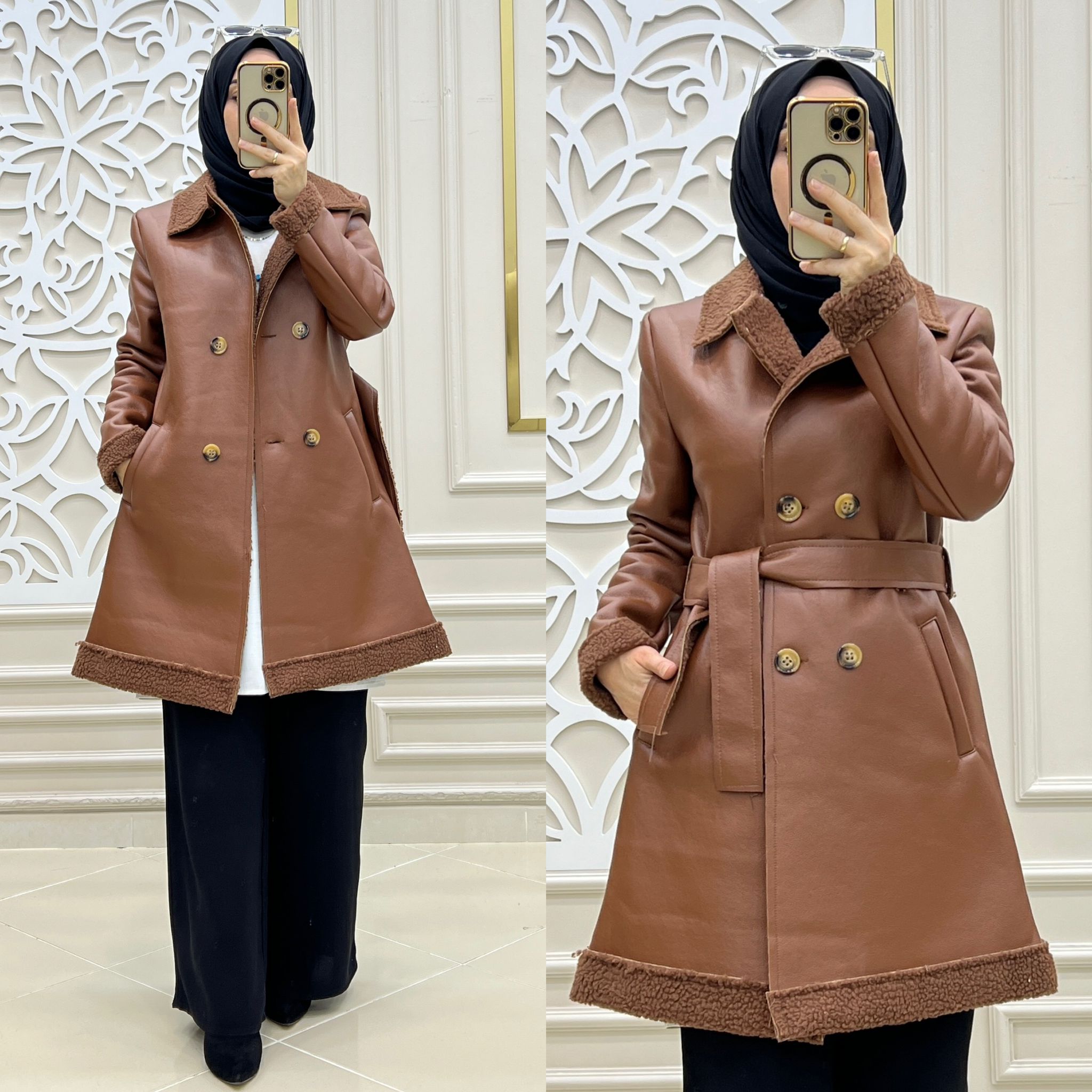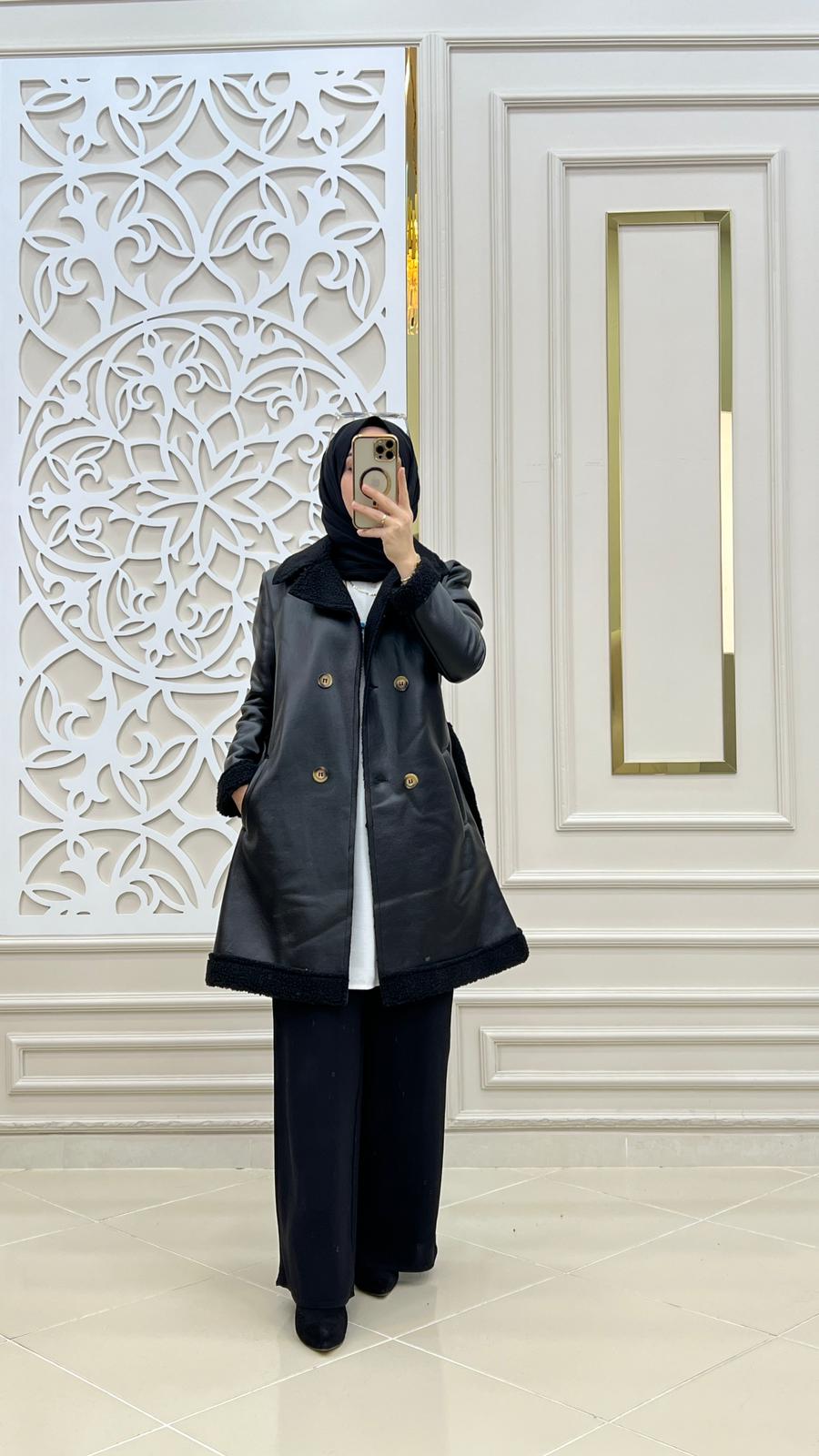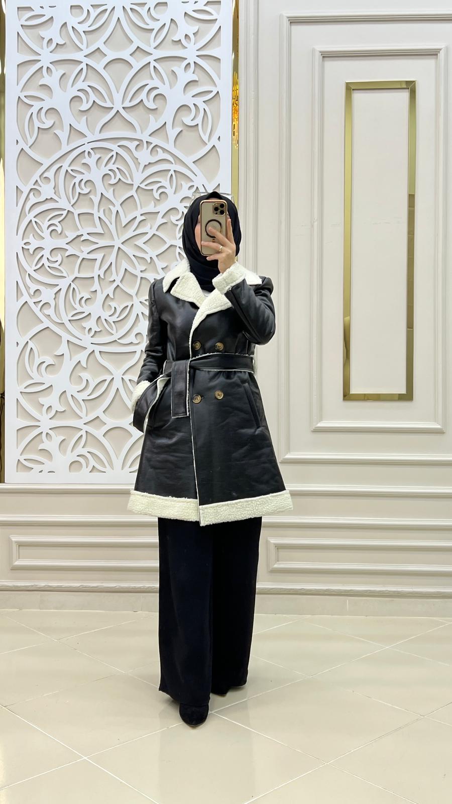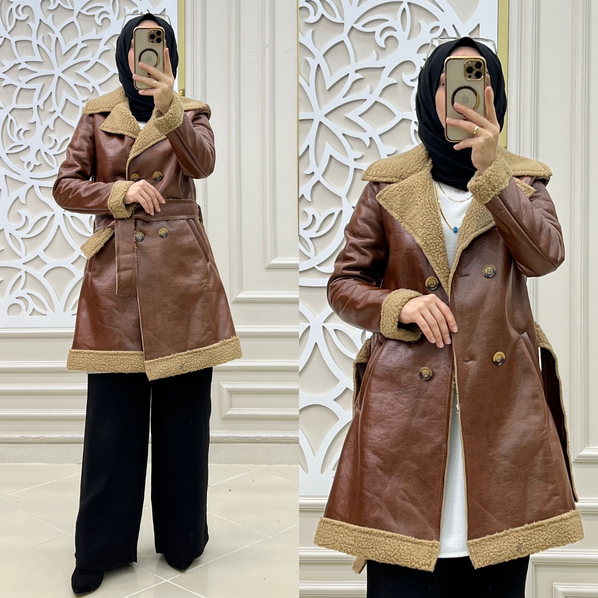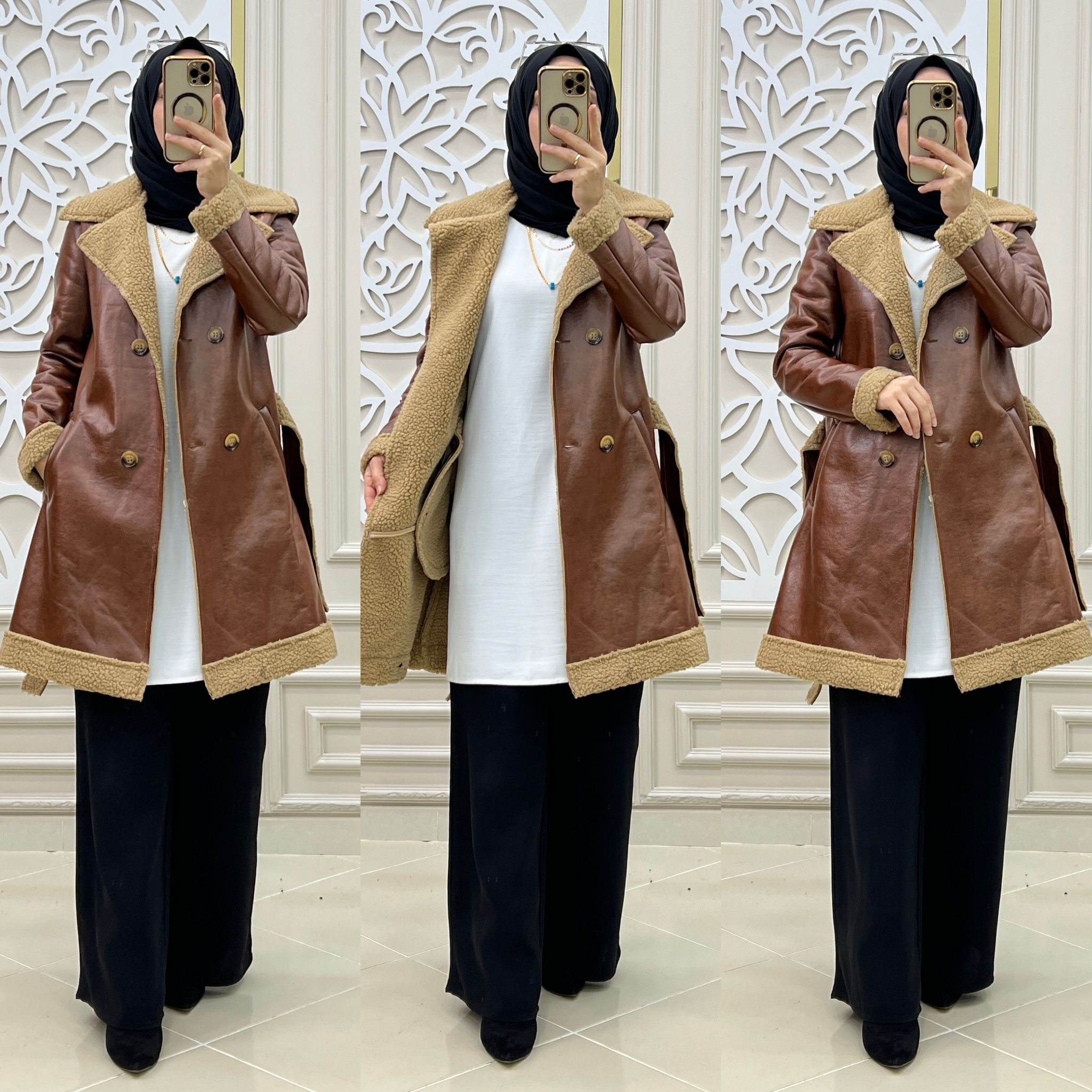 Deri kap içi kürklü - Saklı tesettür kadın giyim elbise etek tunik takım
