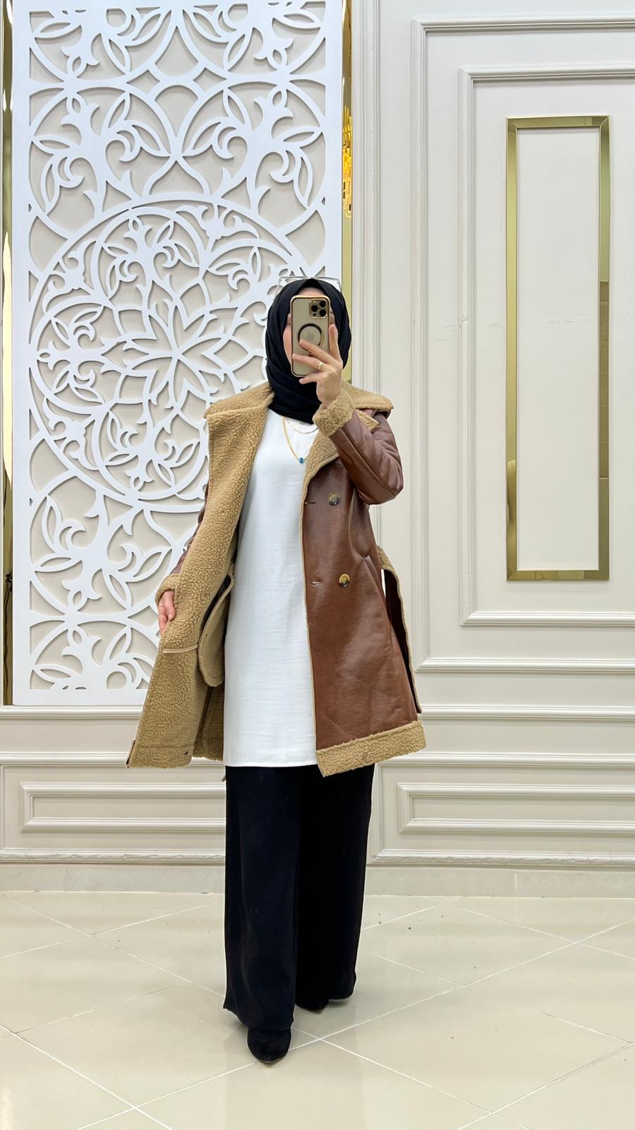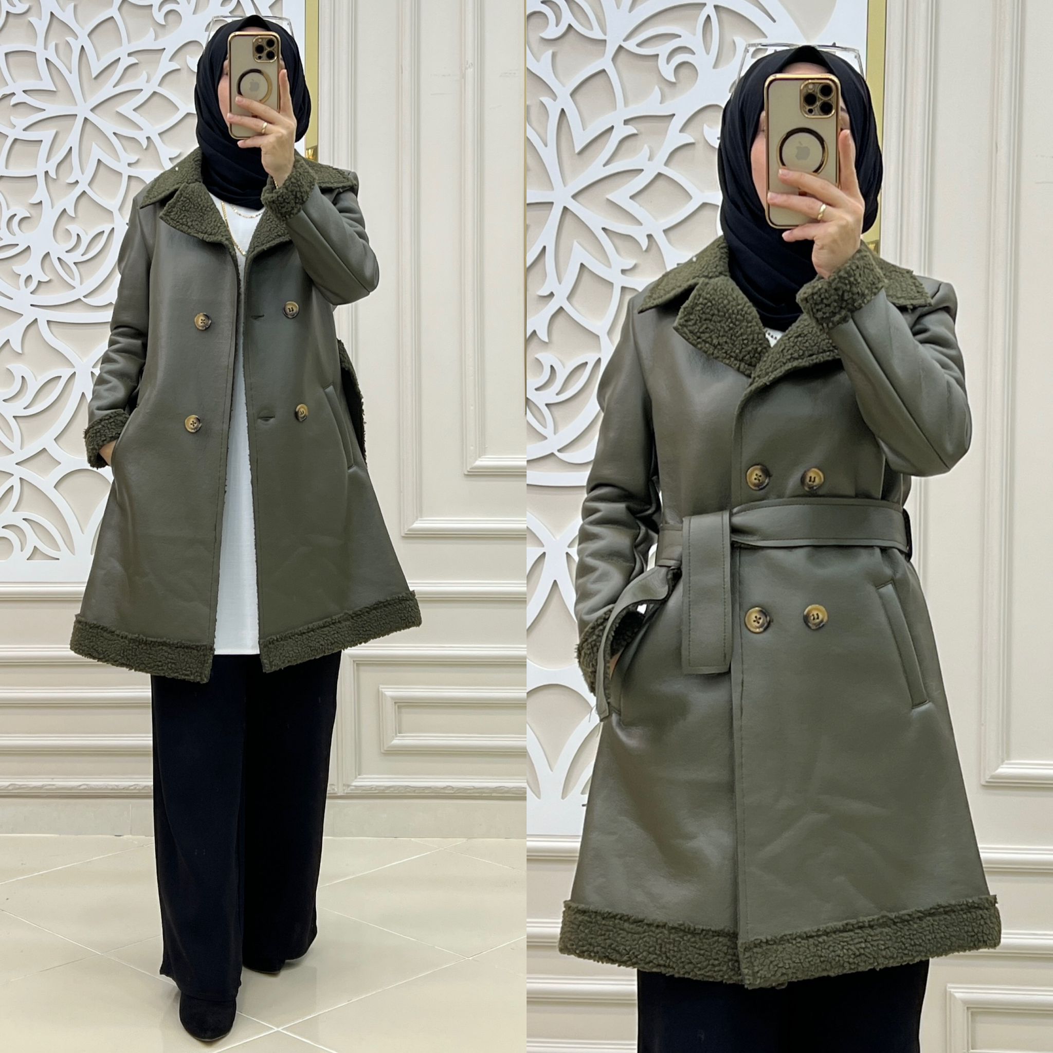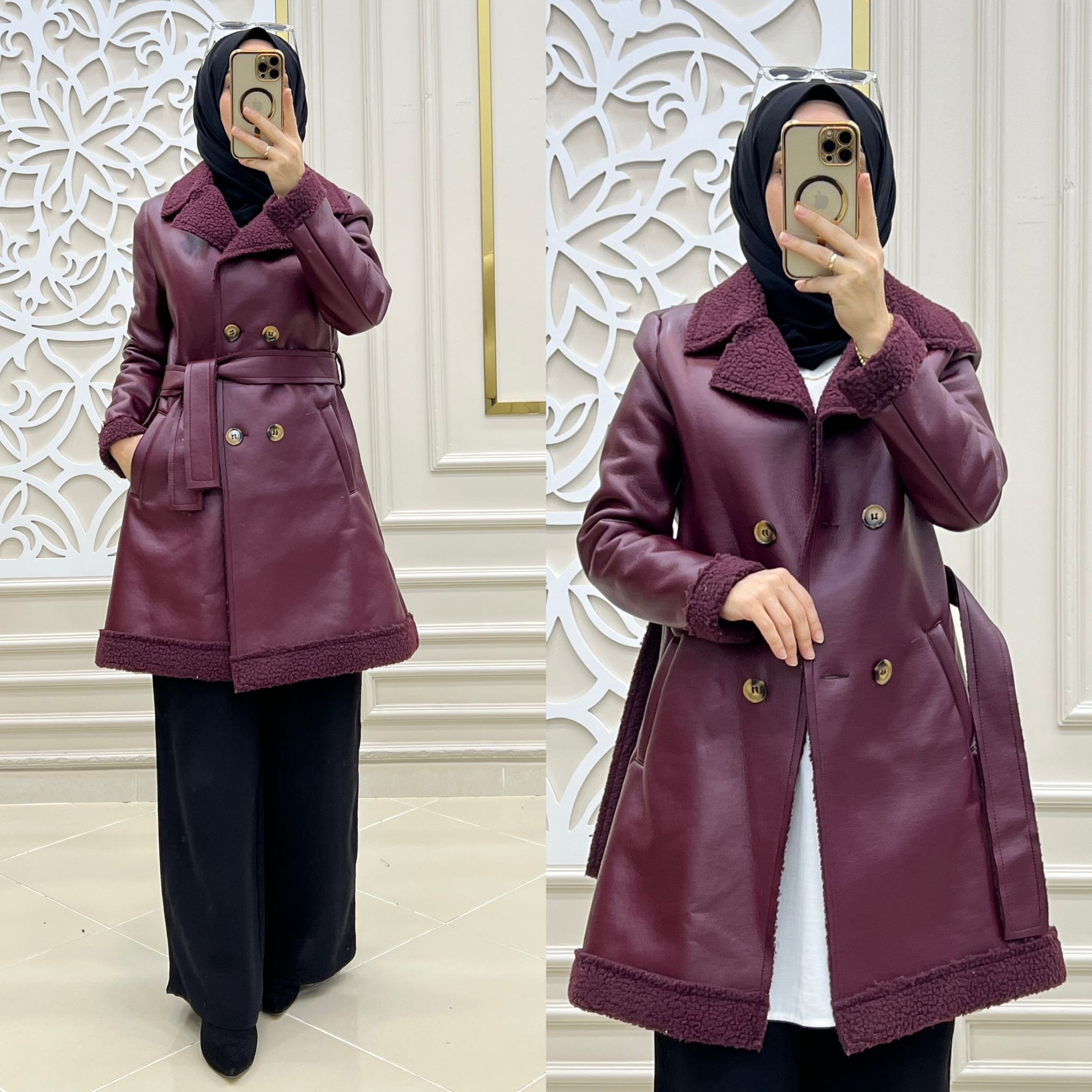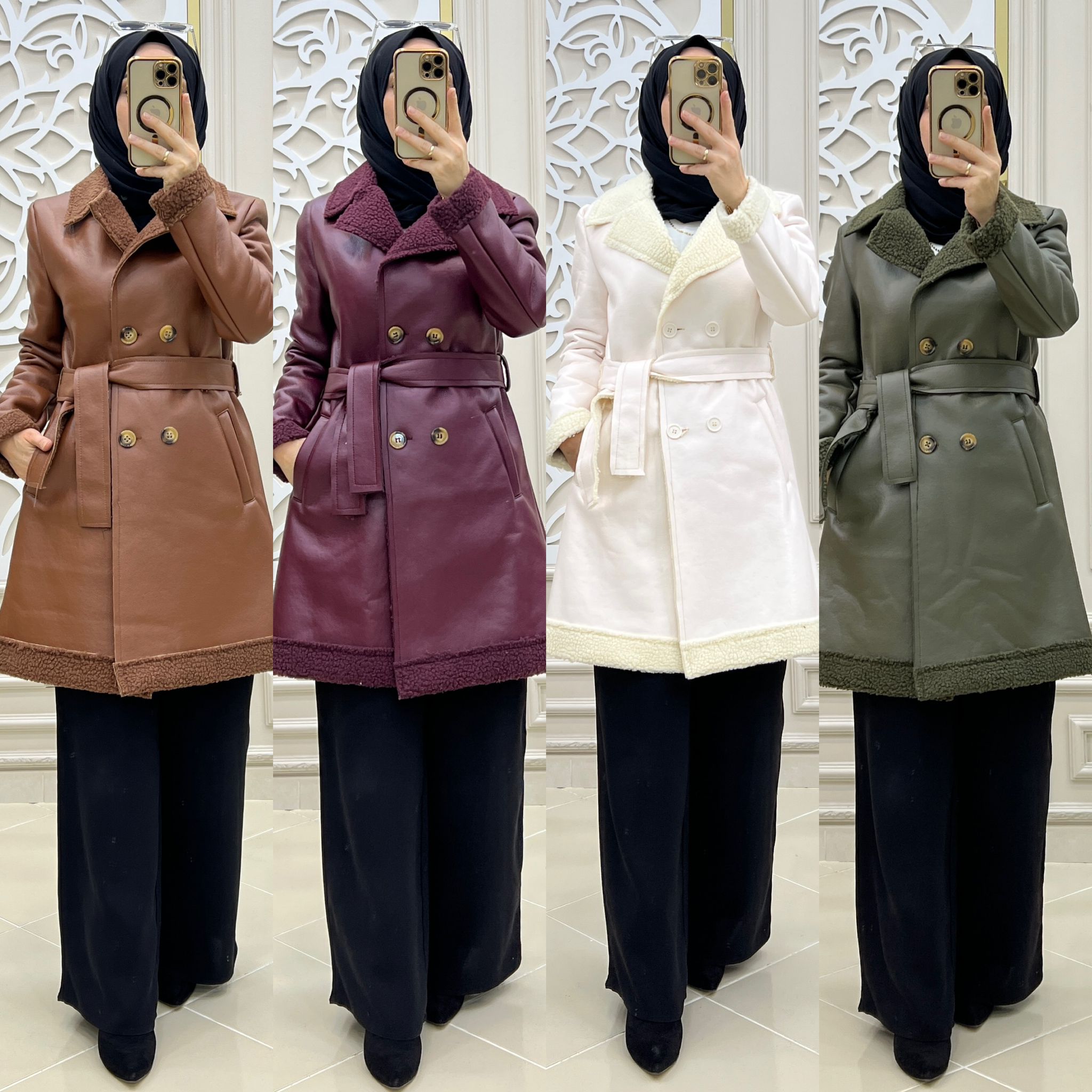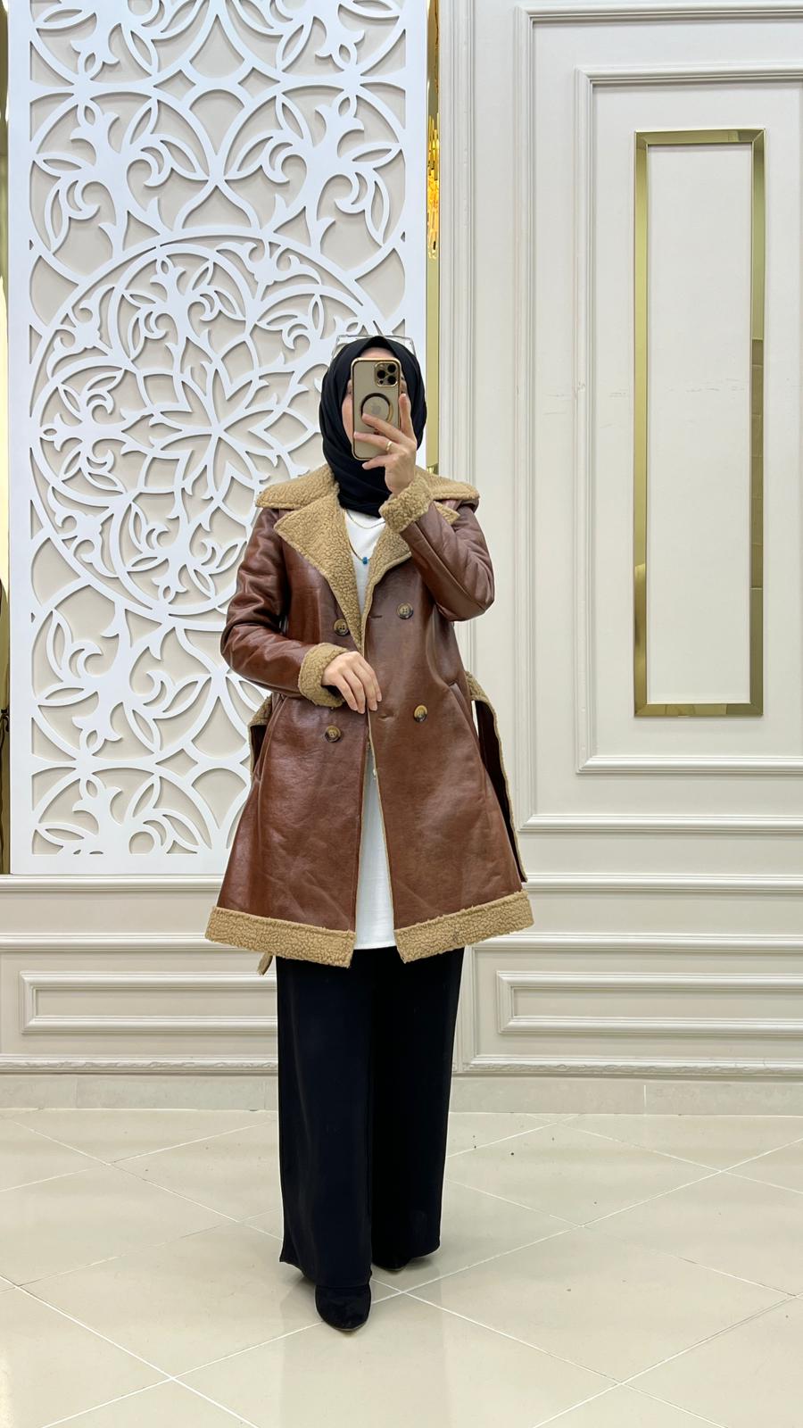 Deri kap içi kürklü - Saklı tesettür kadın giyim elbise etek tunik takım