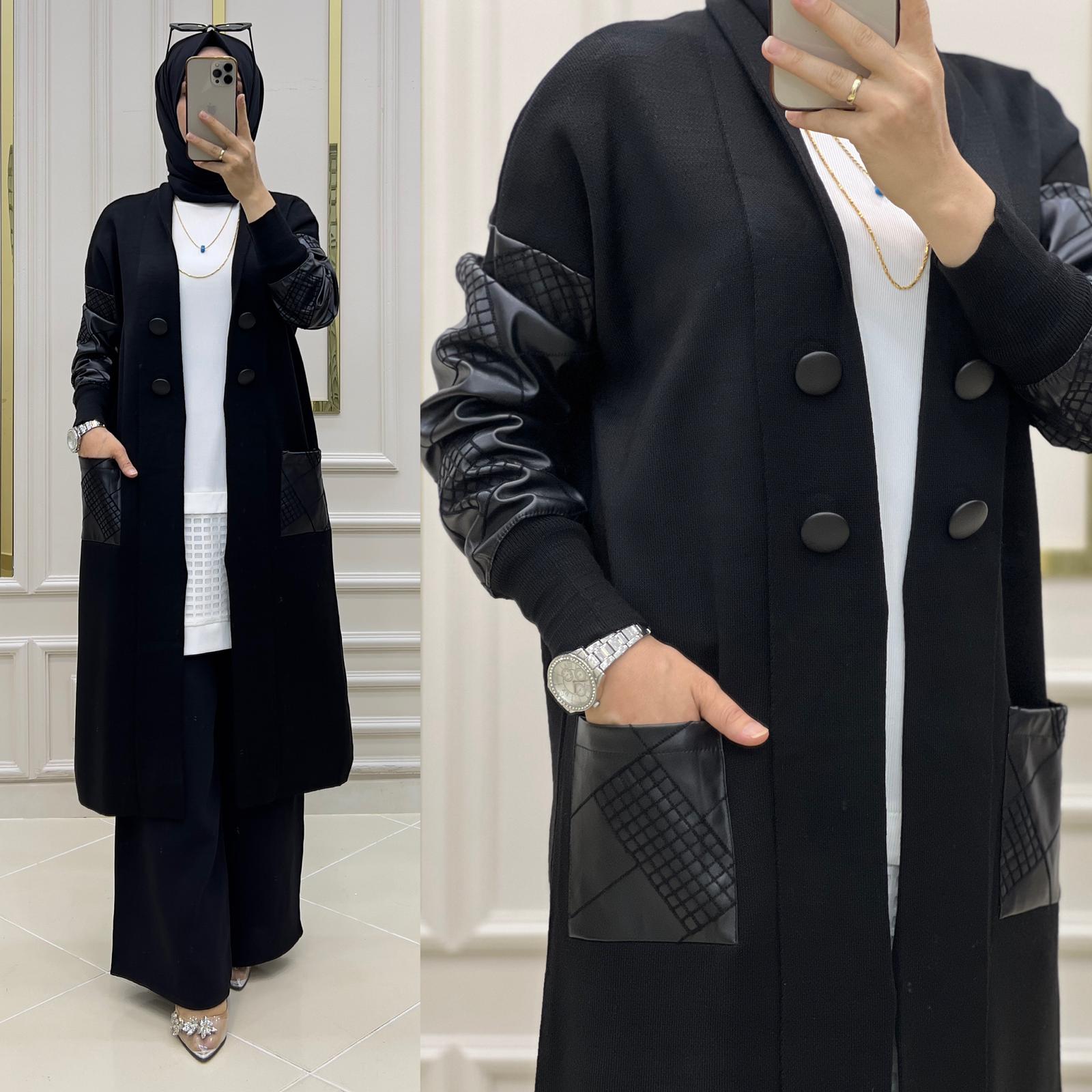 Deri triko hırka - Saklı tesettür kadın giyim elbise etek tunik takım