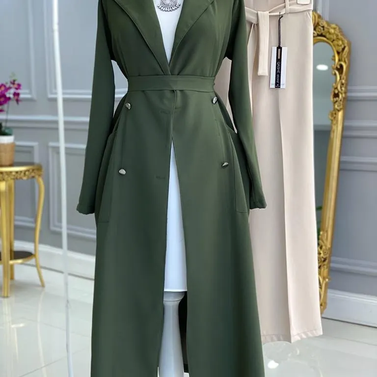 Ürün bilgileri: Birinci Sınıf İthal Krep Kumaştır. Trenç boydan boya düğmelidir. Trenç kol uçlarıda düğmelidir. Trenç cep detaylıdır ve seyyar kemerlidir.