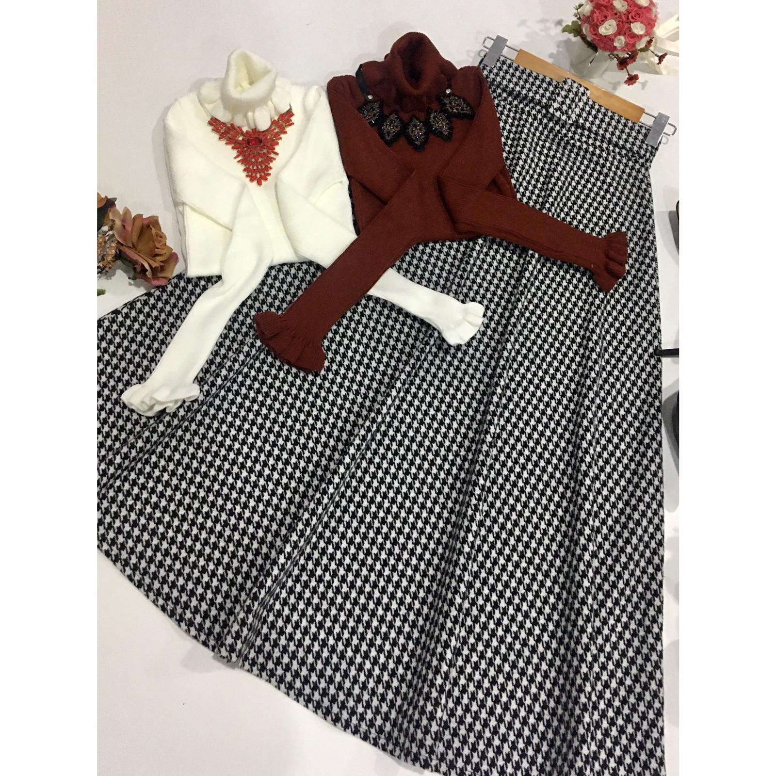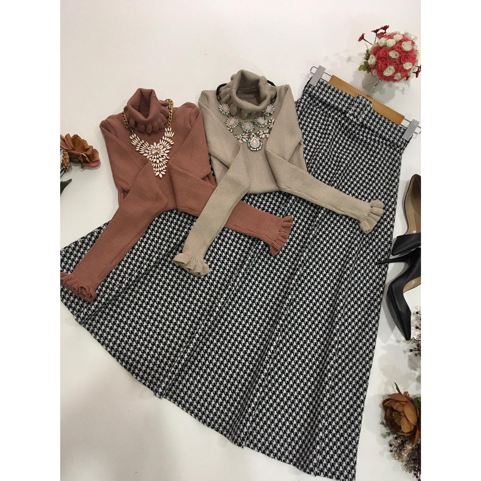 Ekose etek triko etek takım - Saklı tesettür kadın giyim elbise etek tunik takım