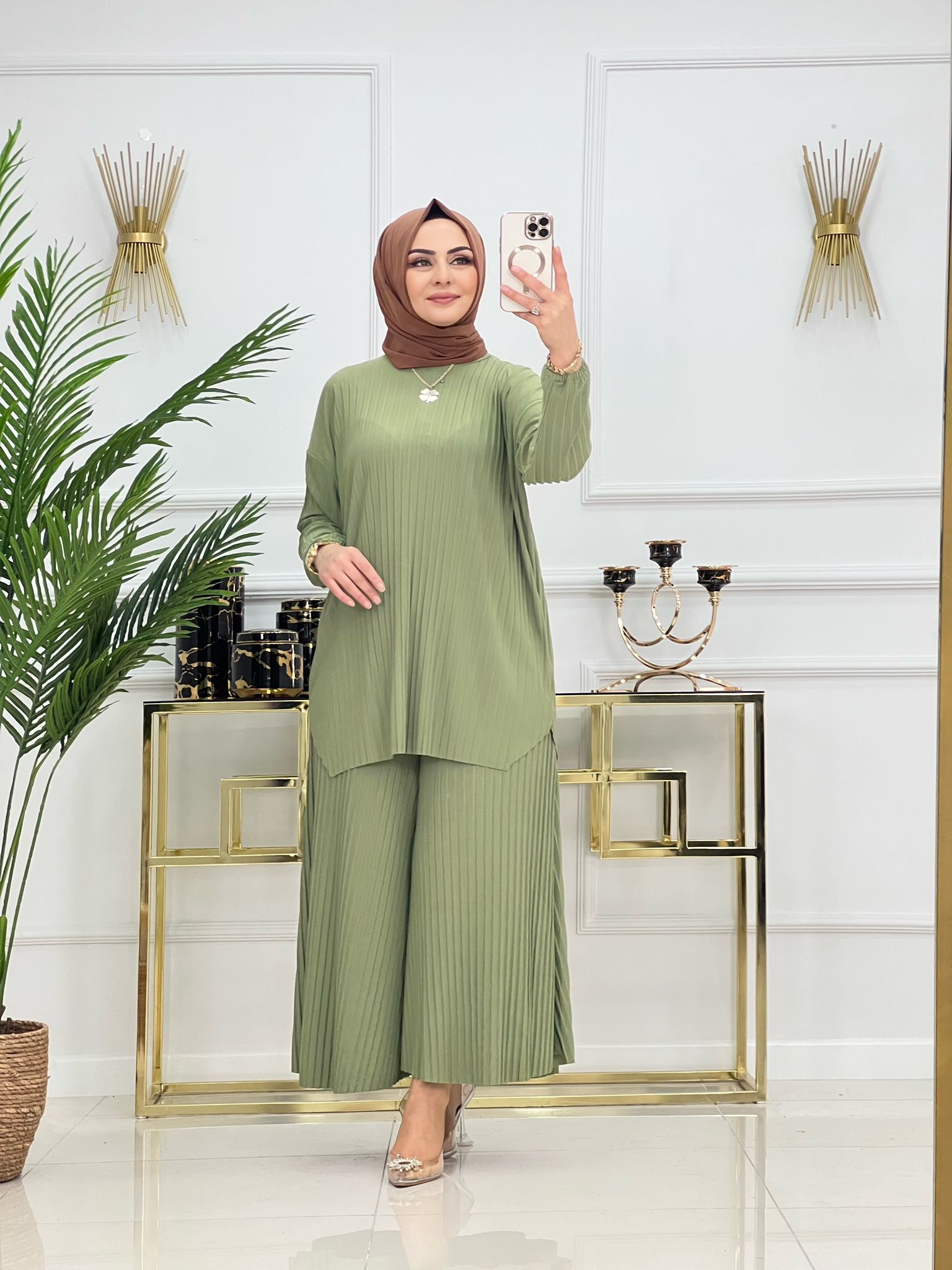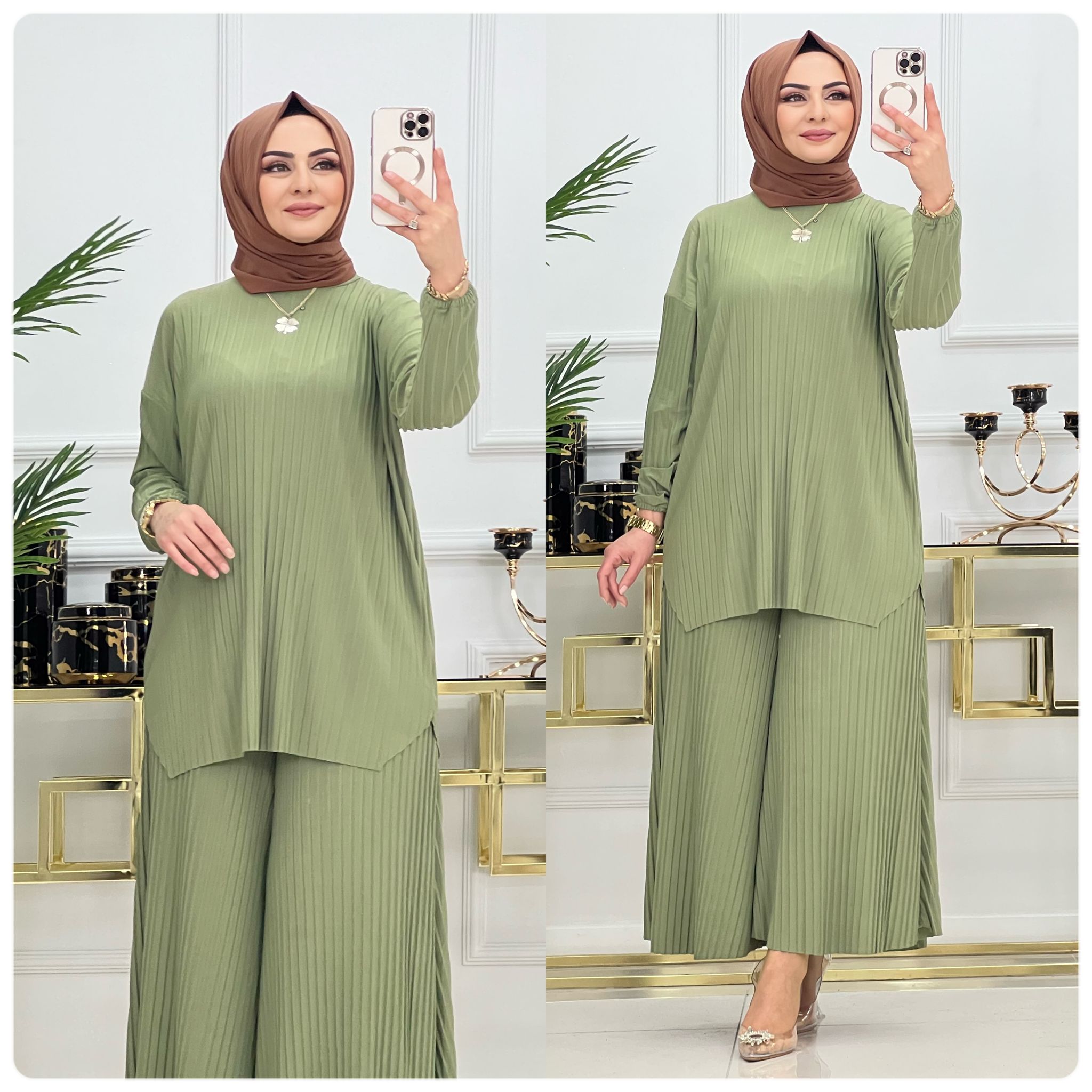 Saklı tesettür kadın giyim elbise etek tunik takım