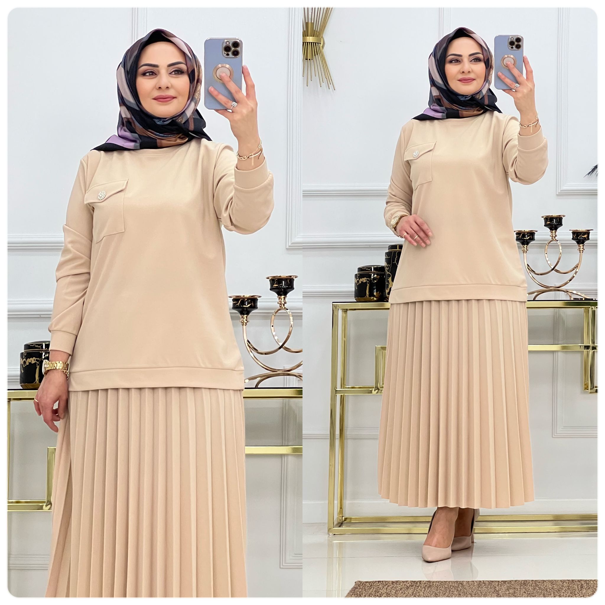 Saklı tesettür kadın giyim elbise etek tunik takım