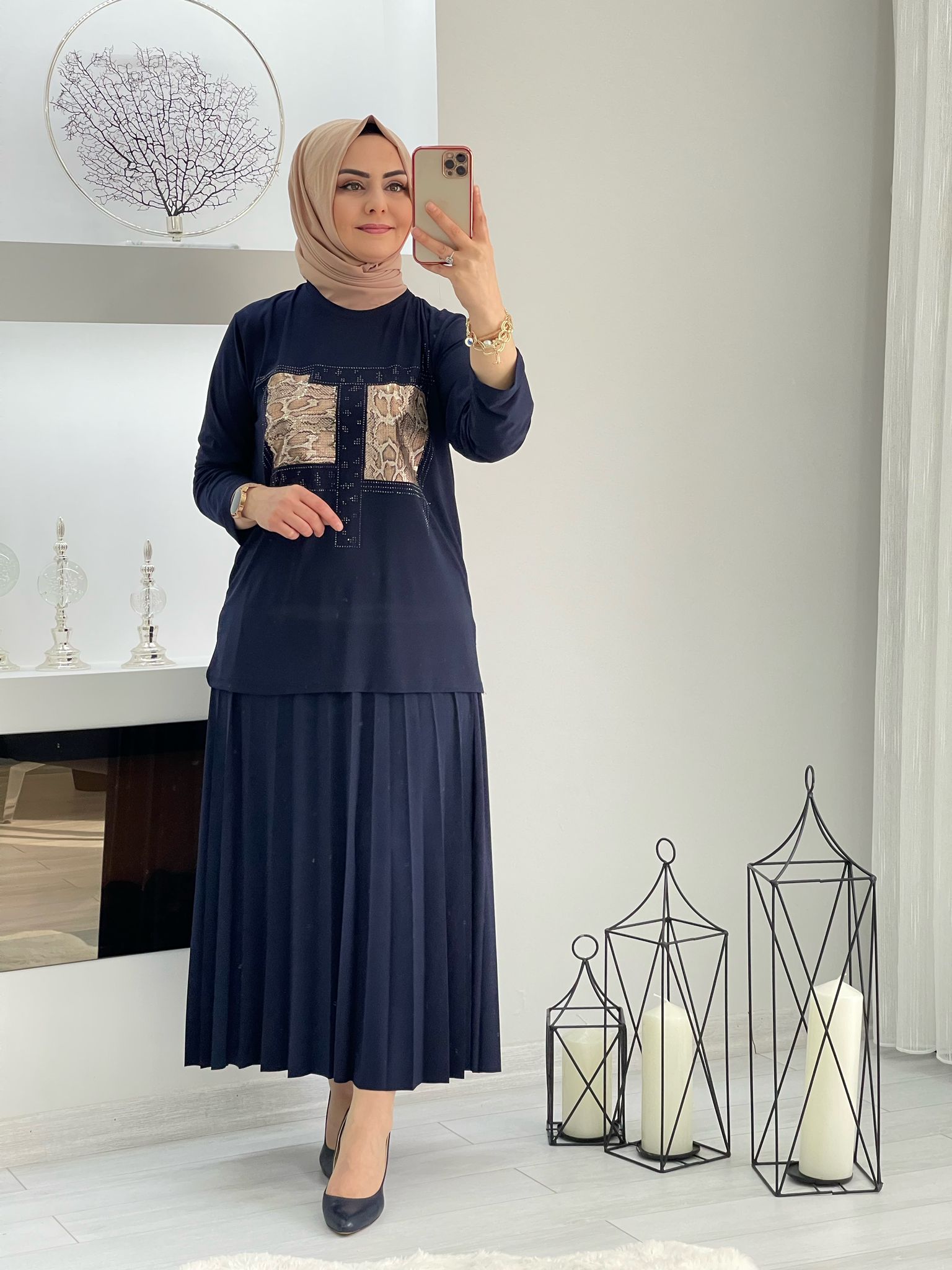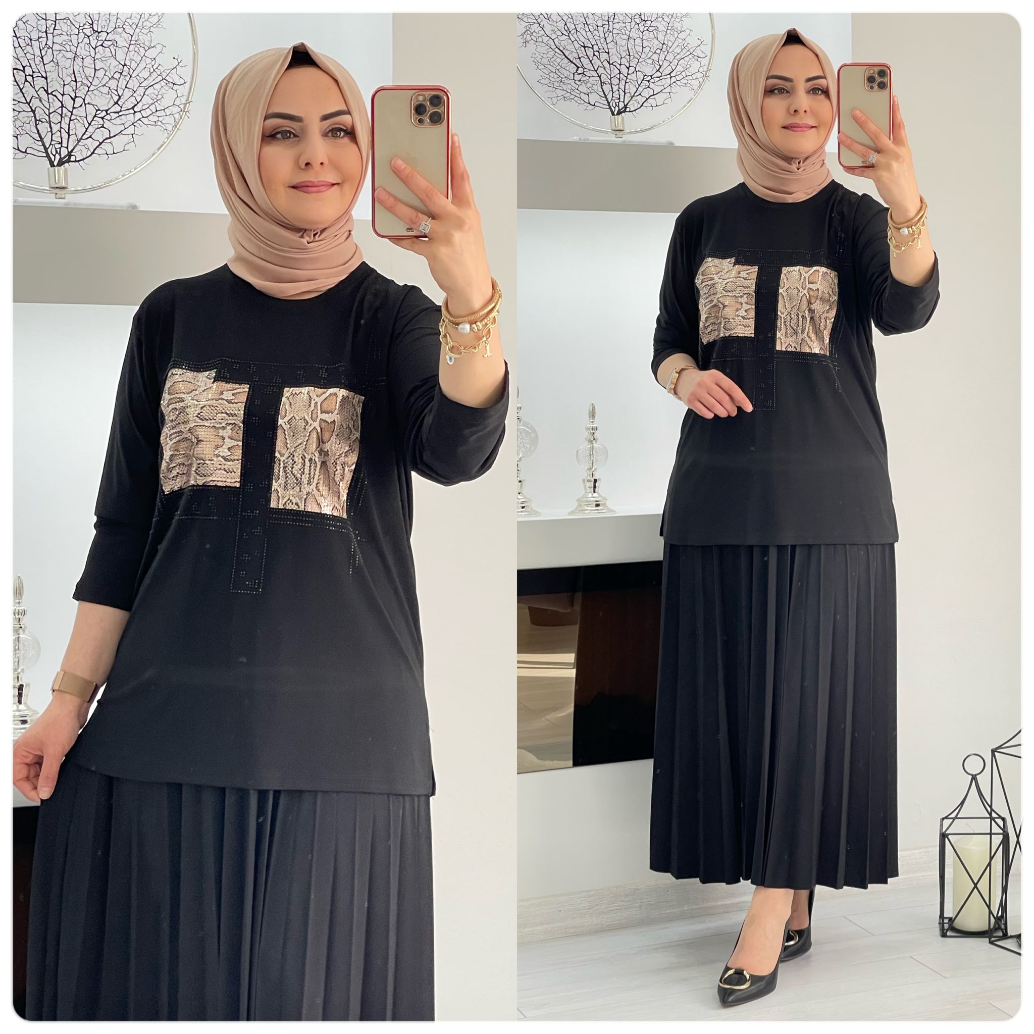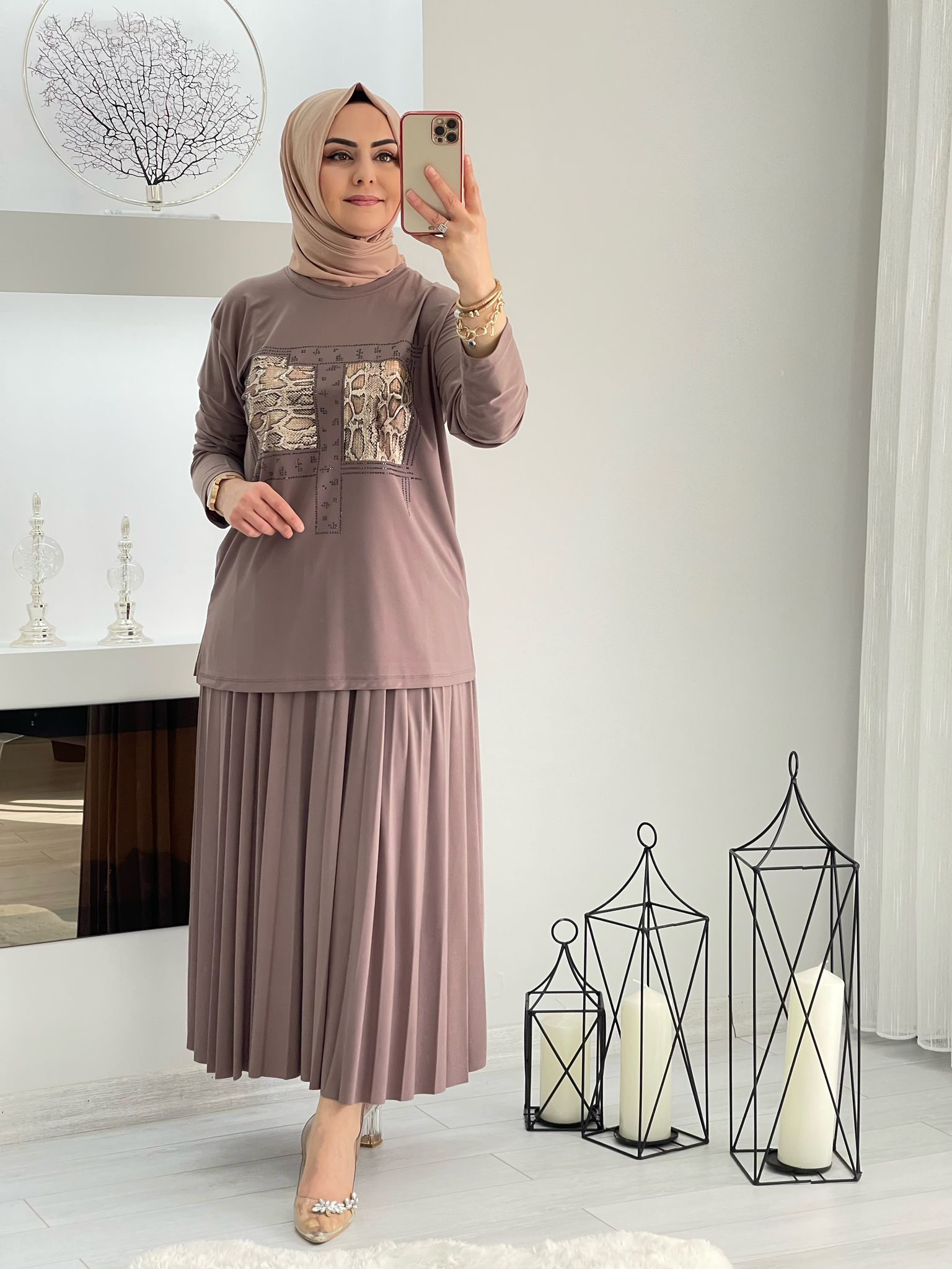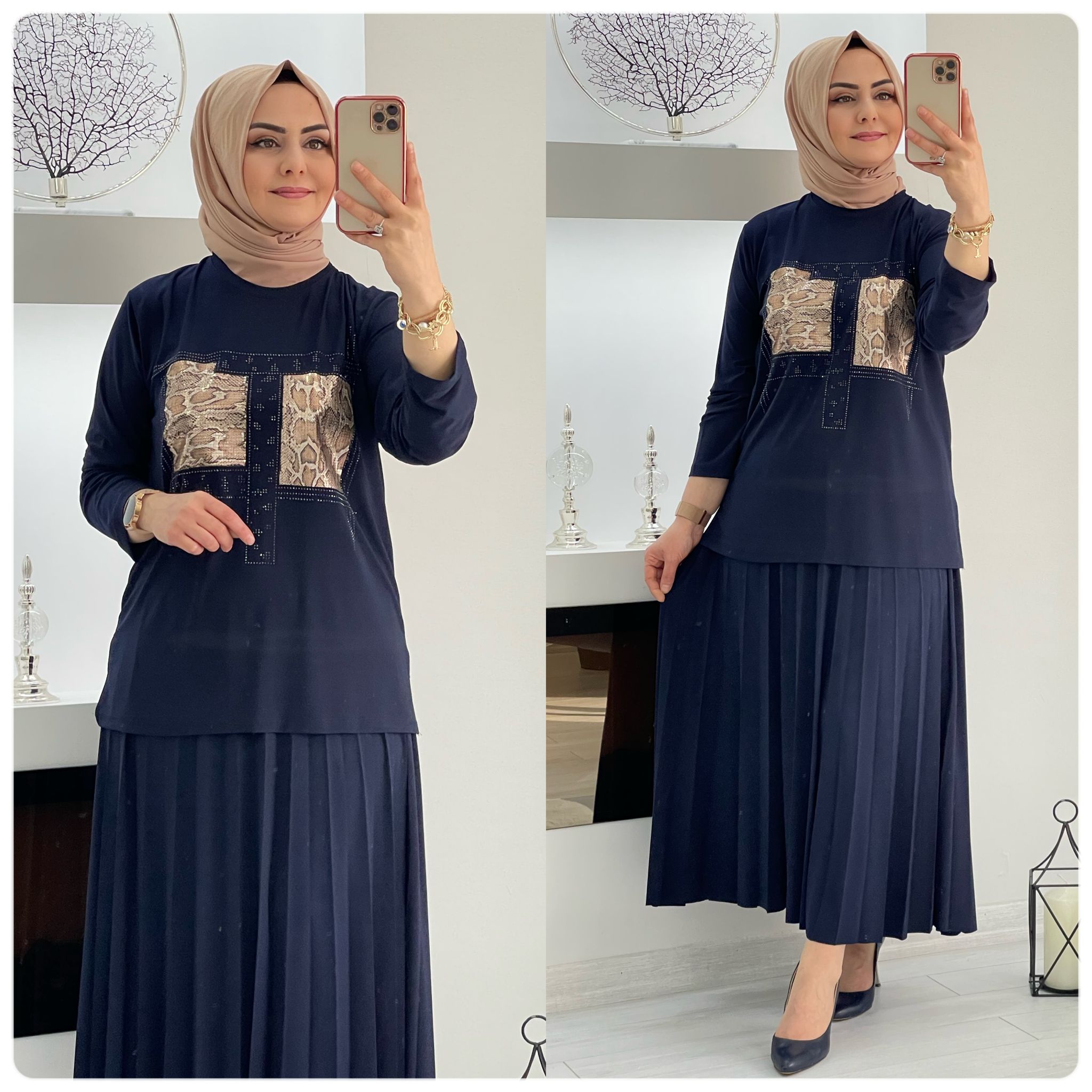 Saklı tesettür kadın giyim elbise etek tunik takım