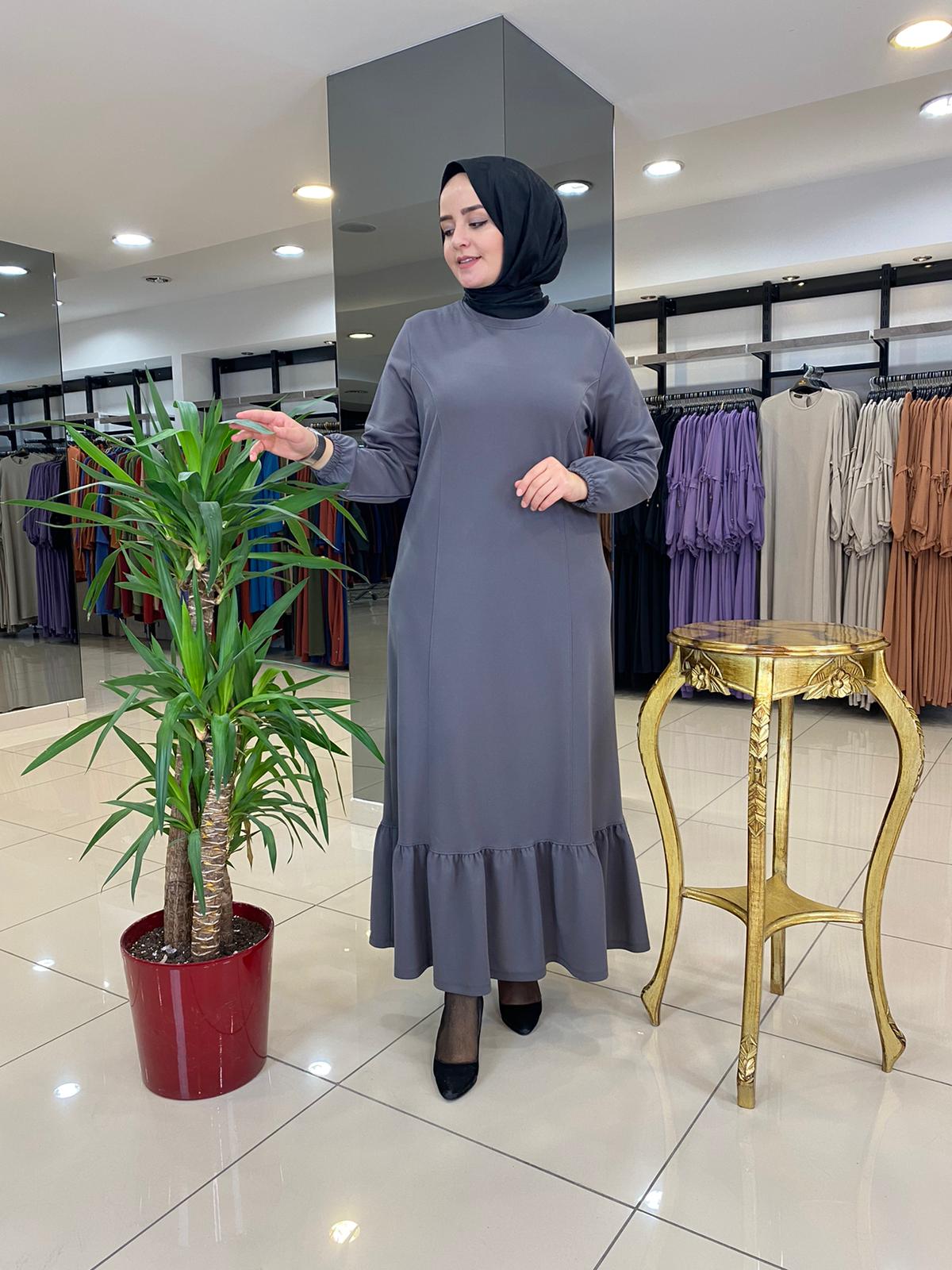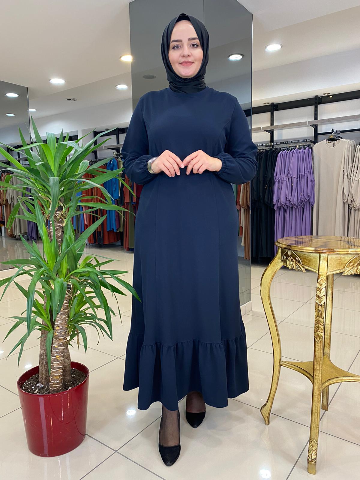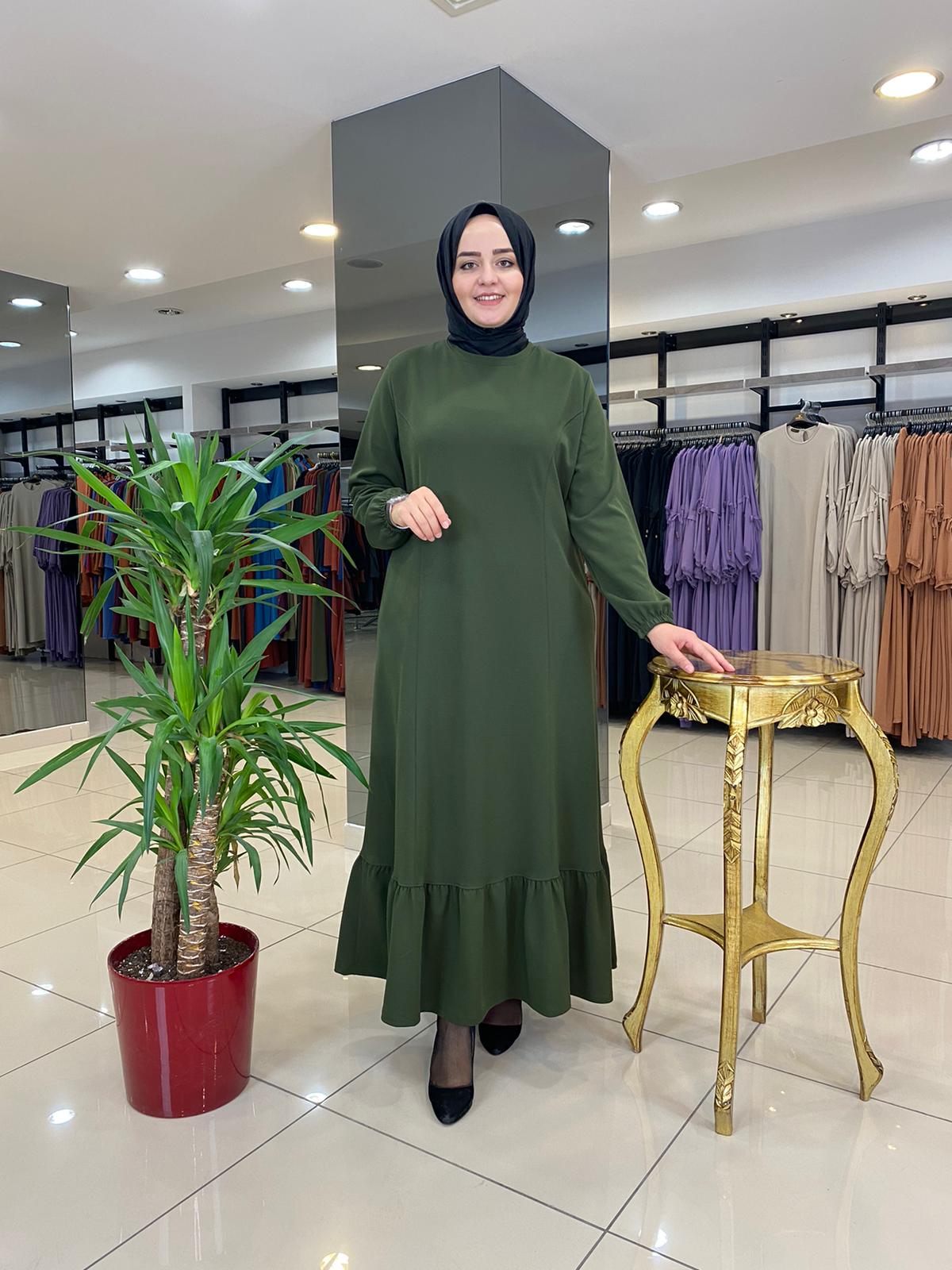 Etek ucu fırfırlı elbise krep kumaş - Saklı tesettür kadın giyim elbise etek tunik takım
