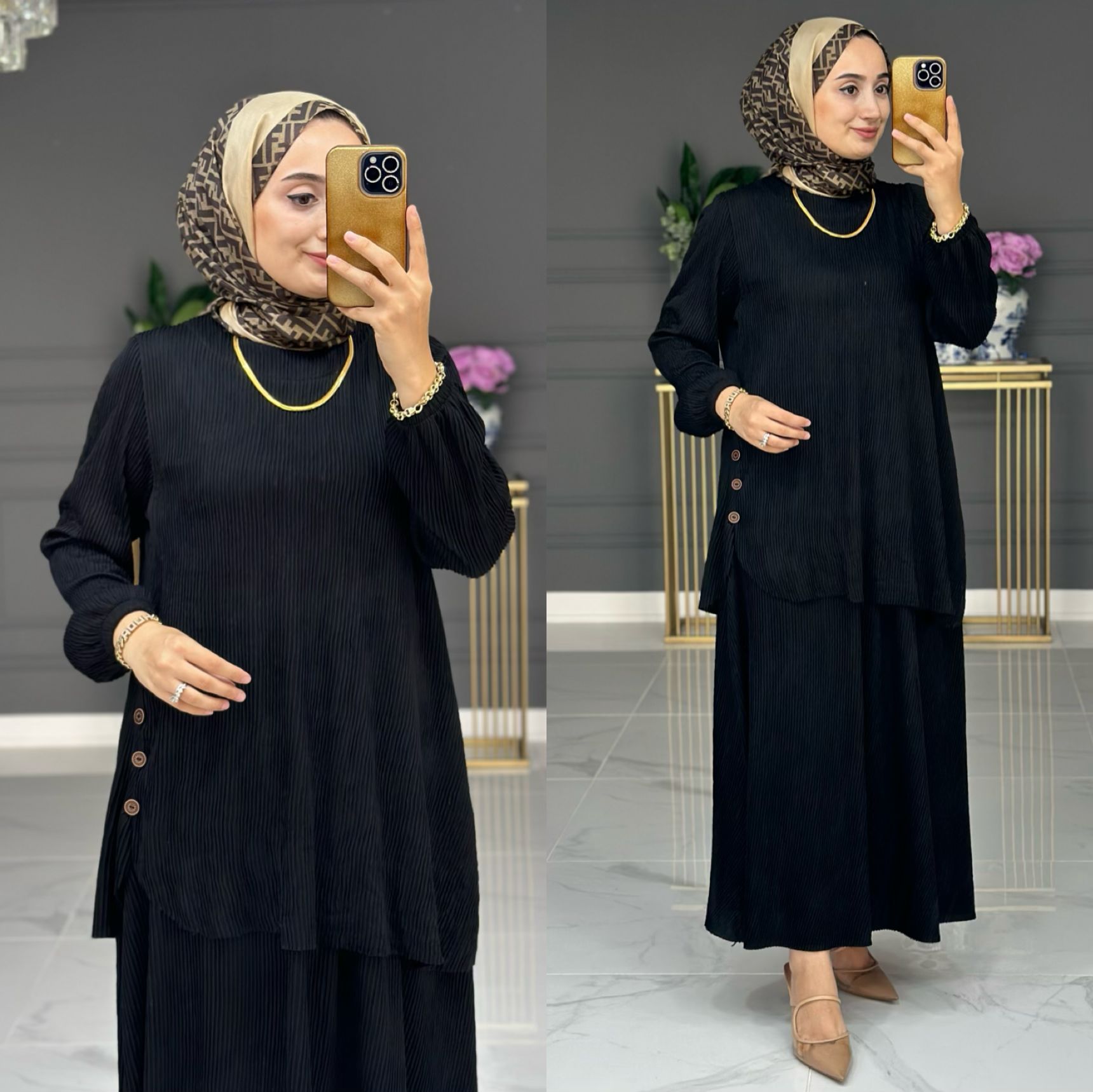 Saklı tesettür kadın giyim elbise etek tunik takım