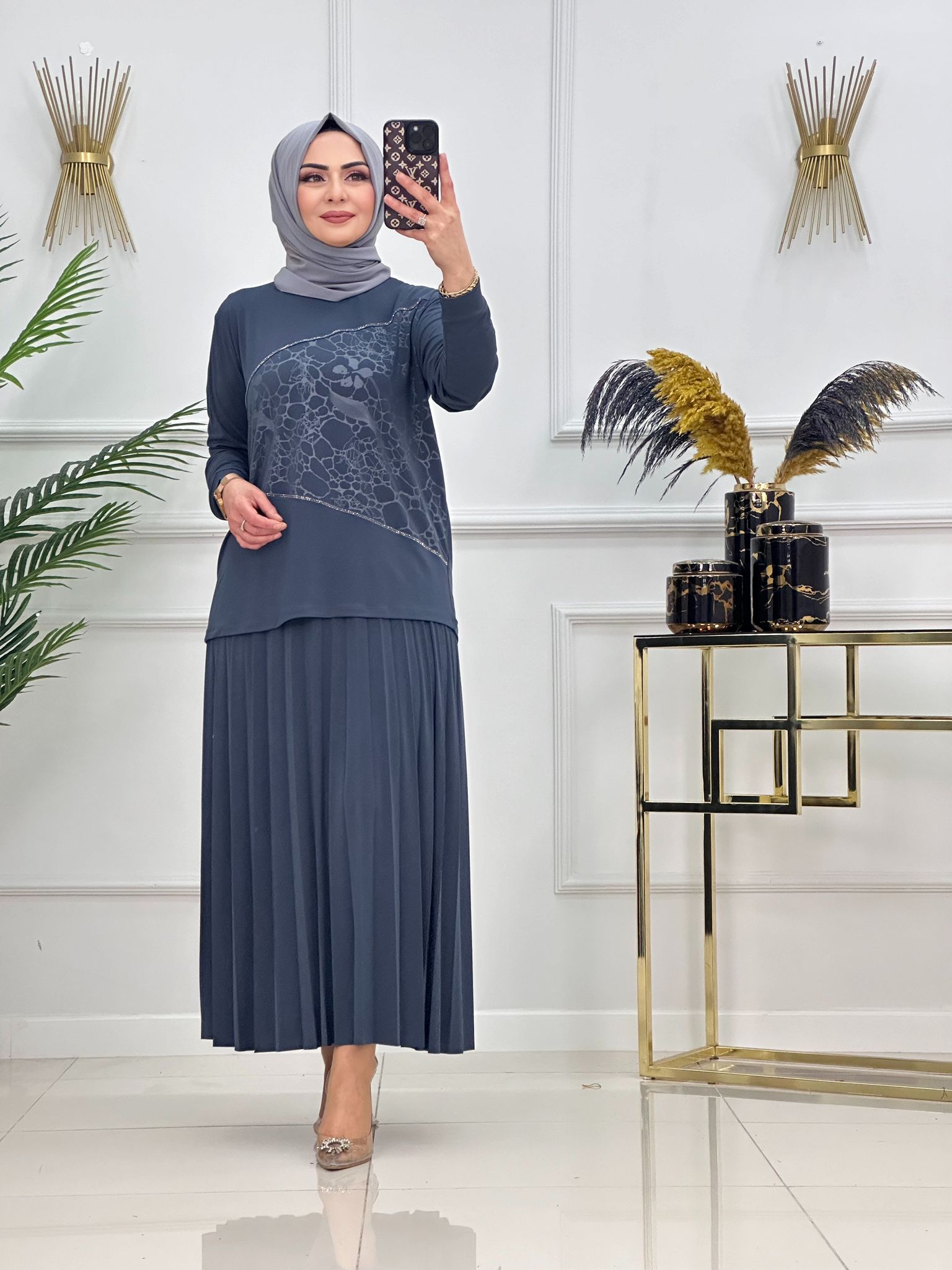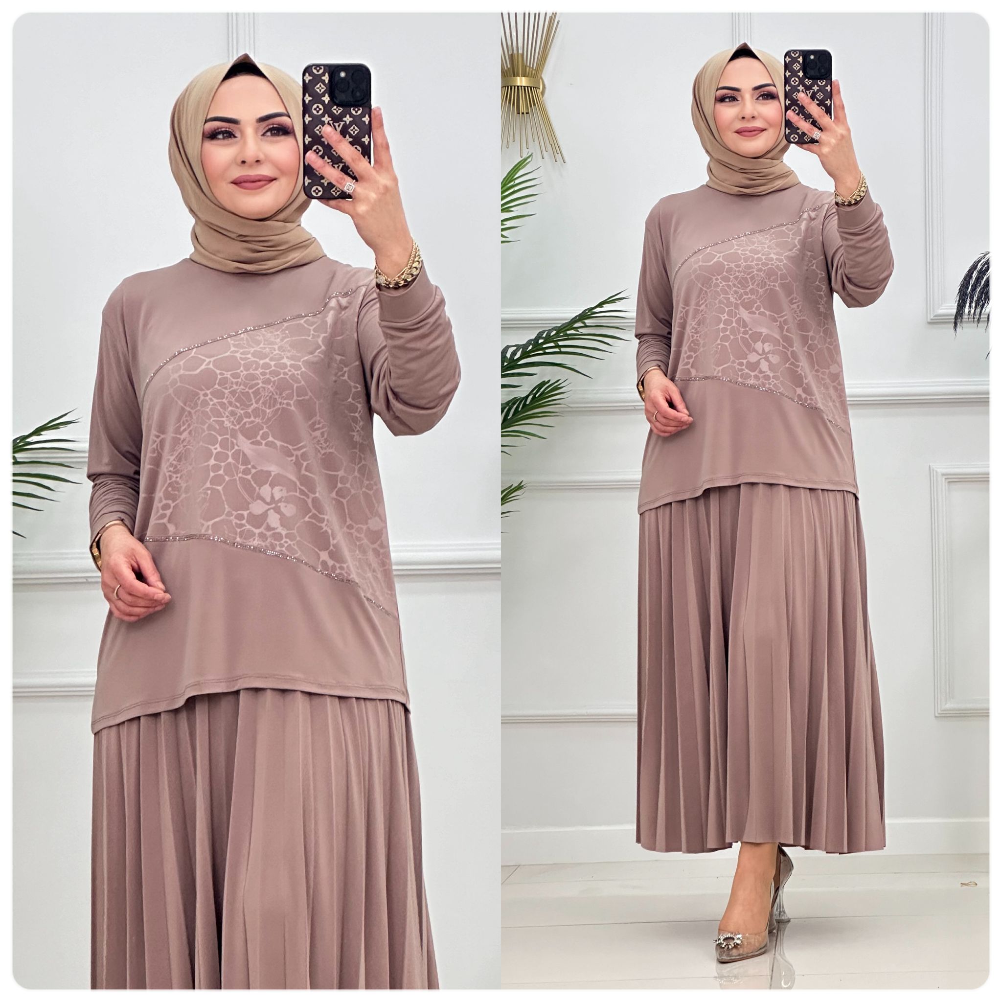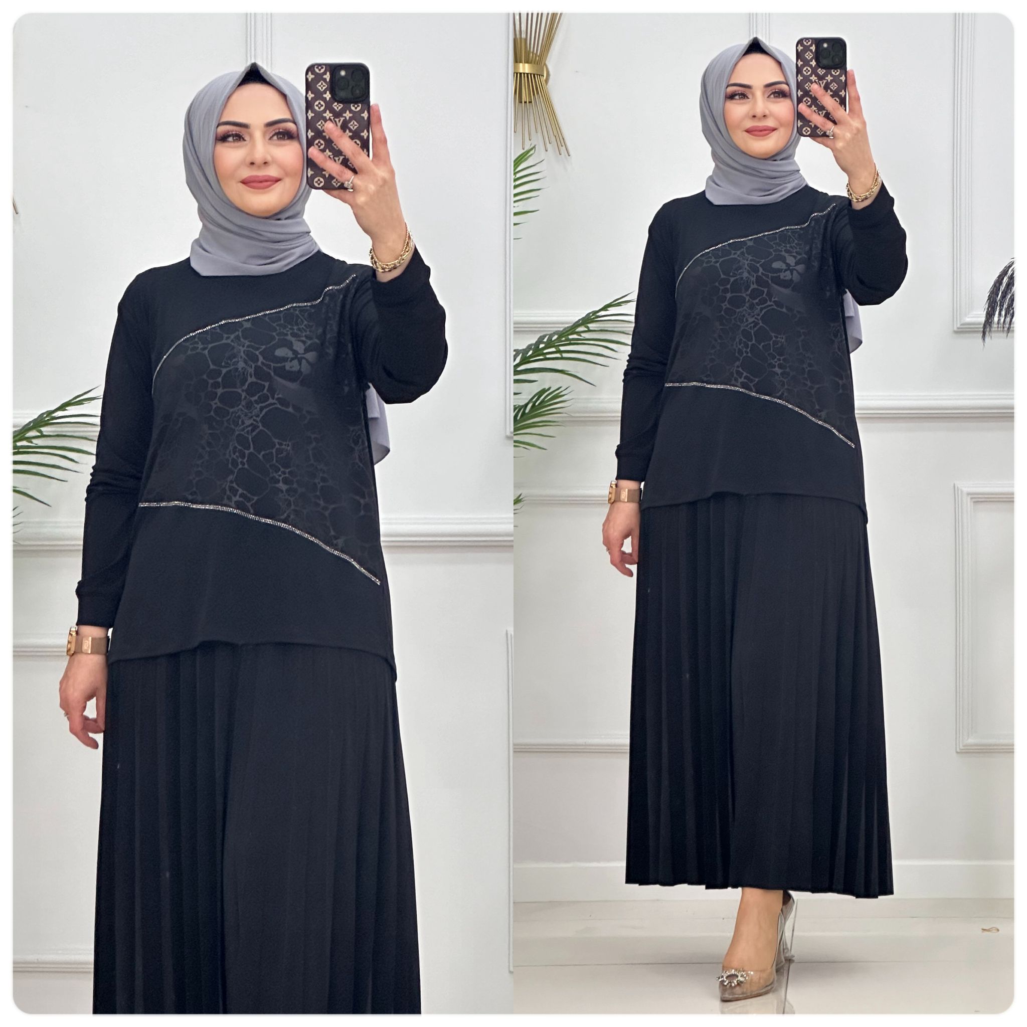 Saklı tesettür kadın giyim elbise etek tunik takım