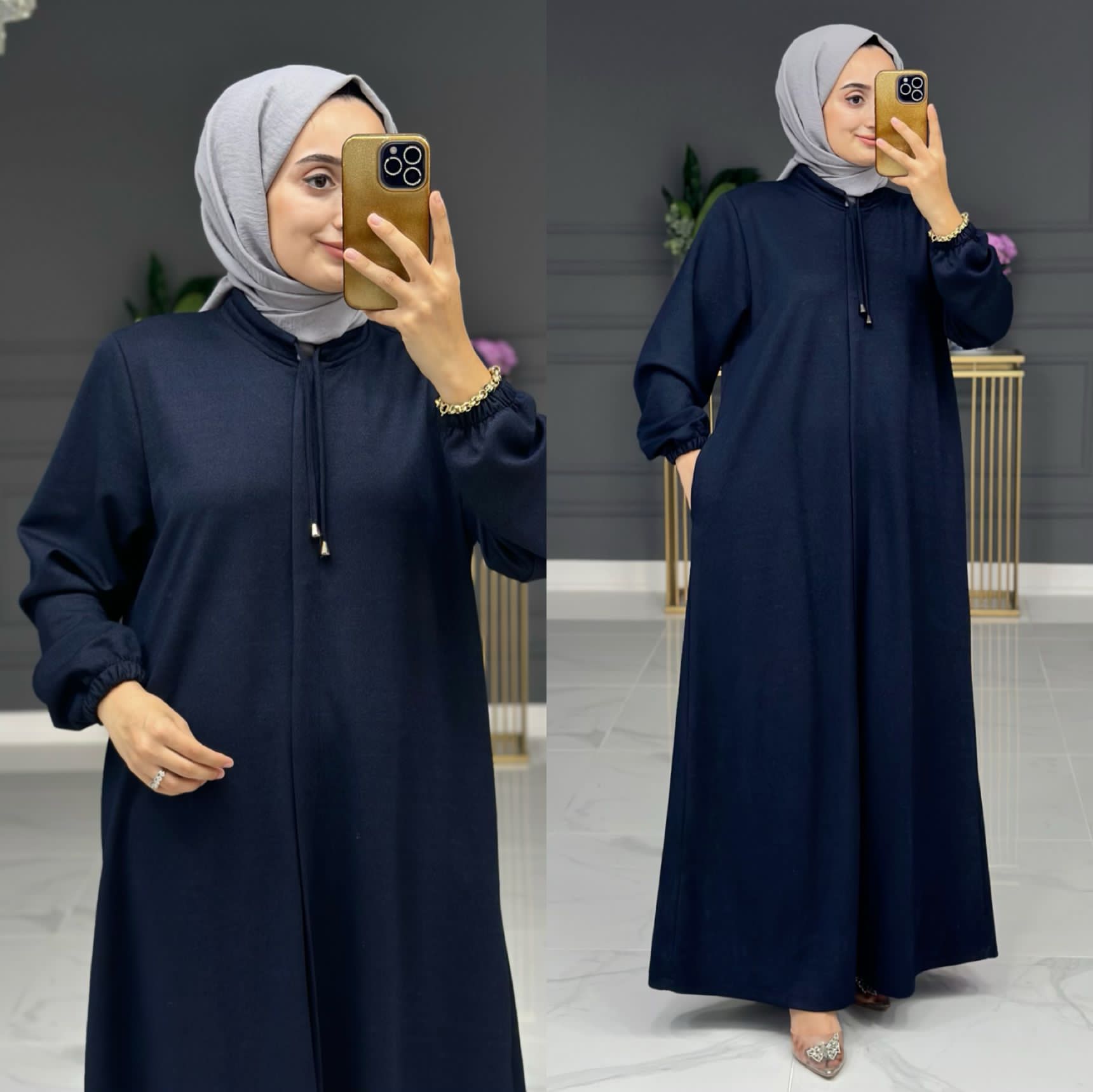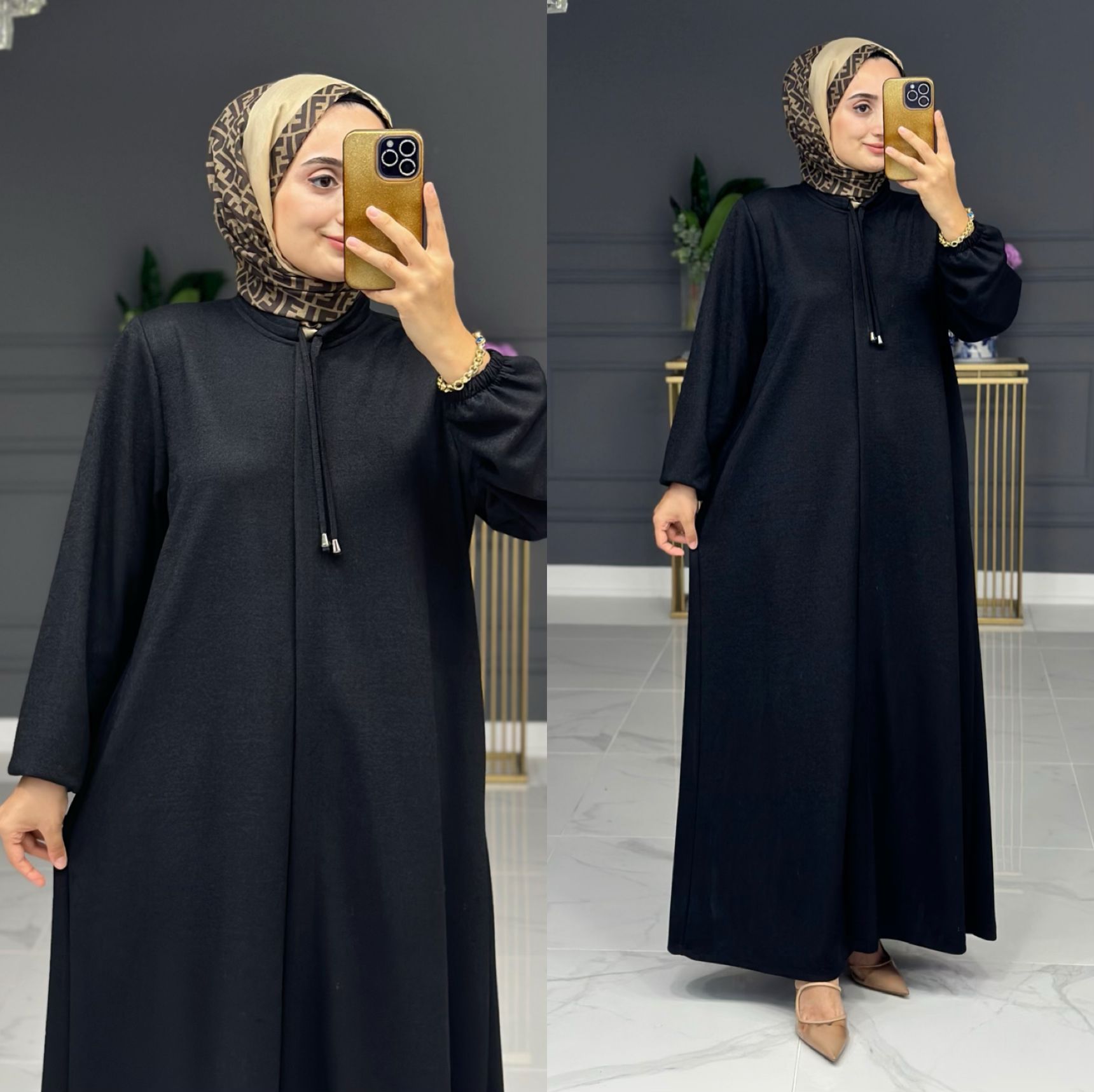 Güllü ferace krep kumaş - Saklı tesettür kadın giyim elbise etek tunik takım