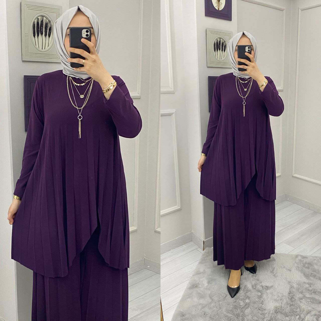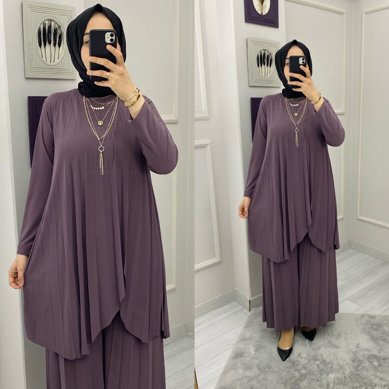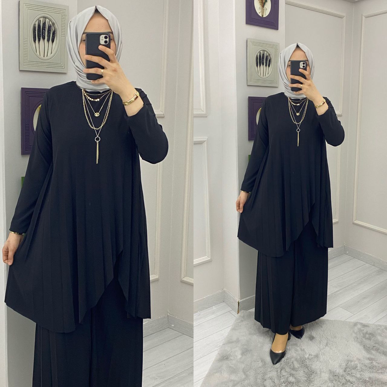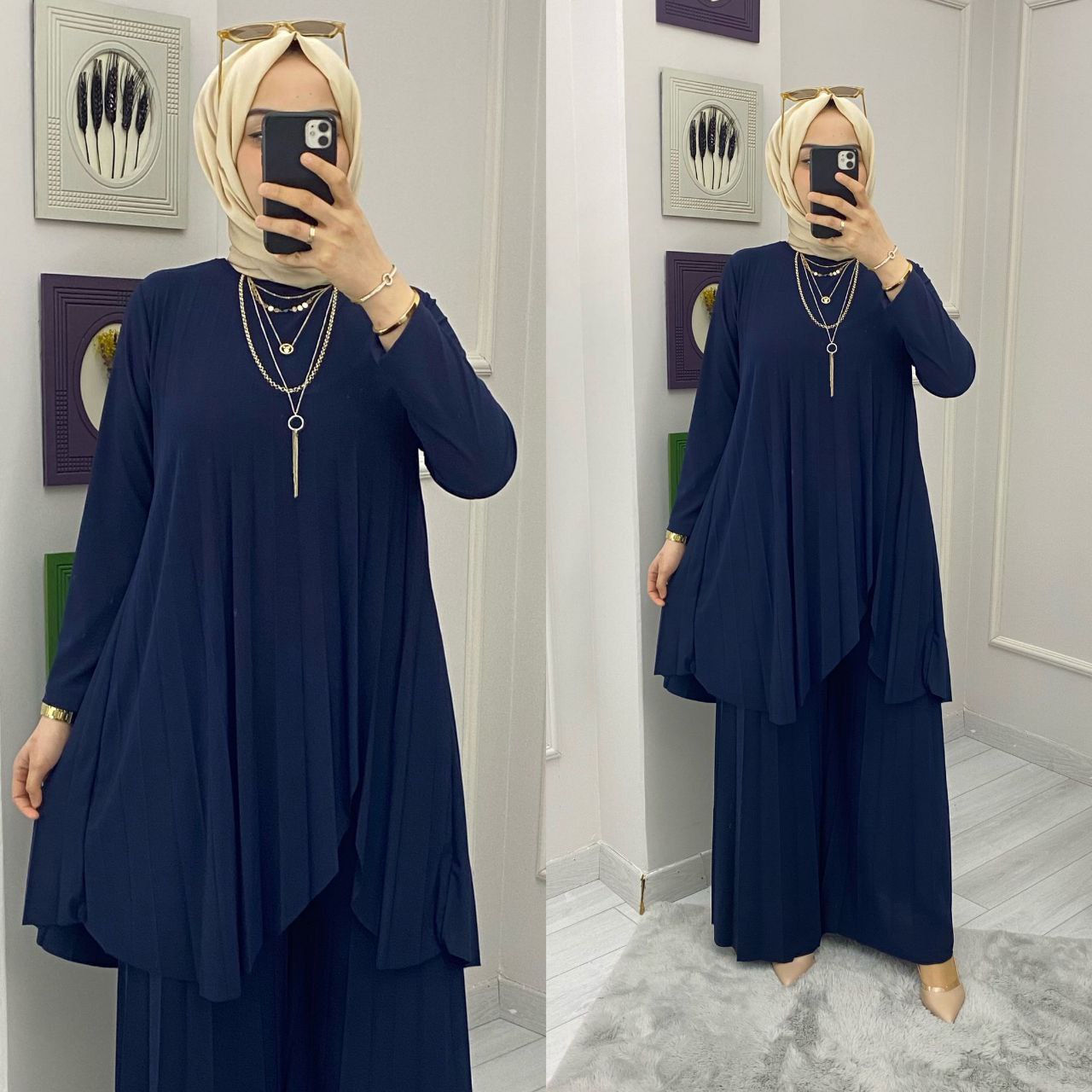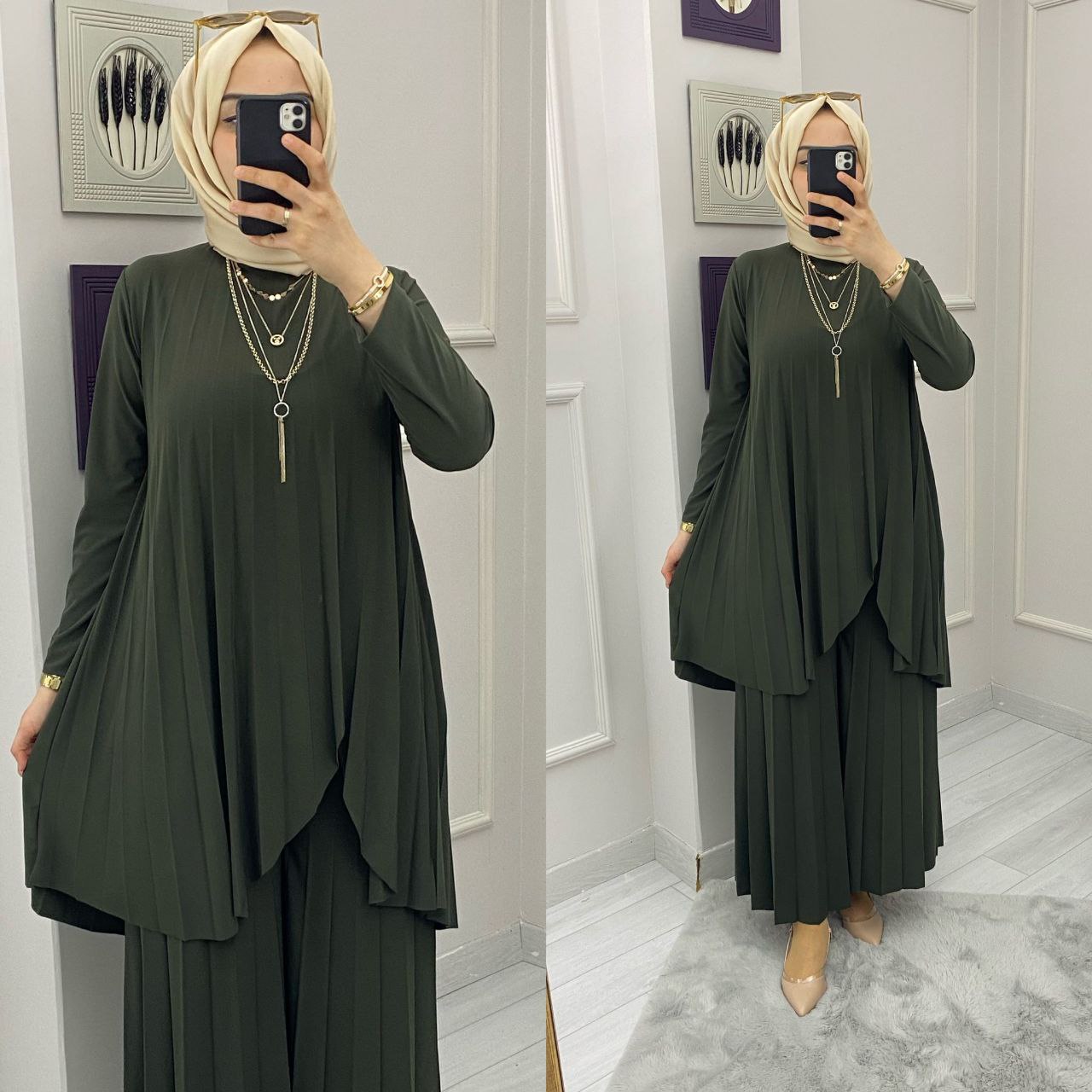 Tunik takım sandy kumaş - Saklı tesettür kadın giyim elbise etek tunik takım