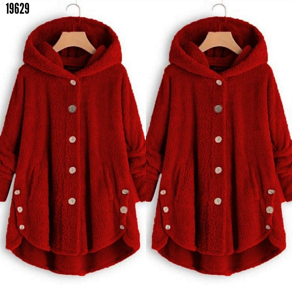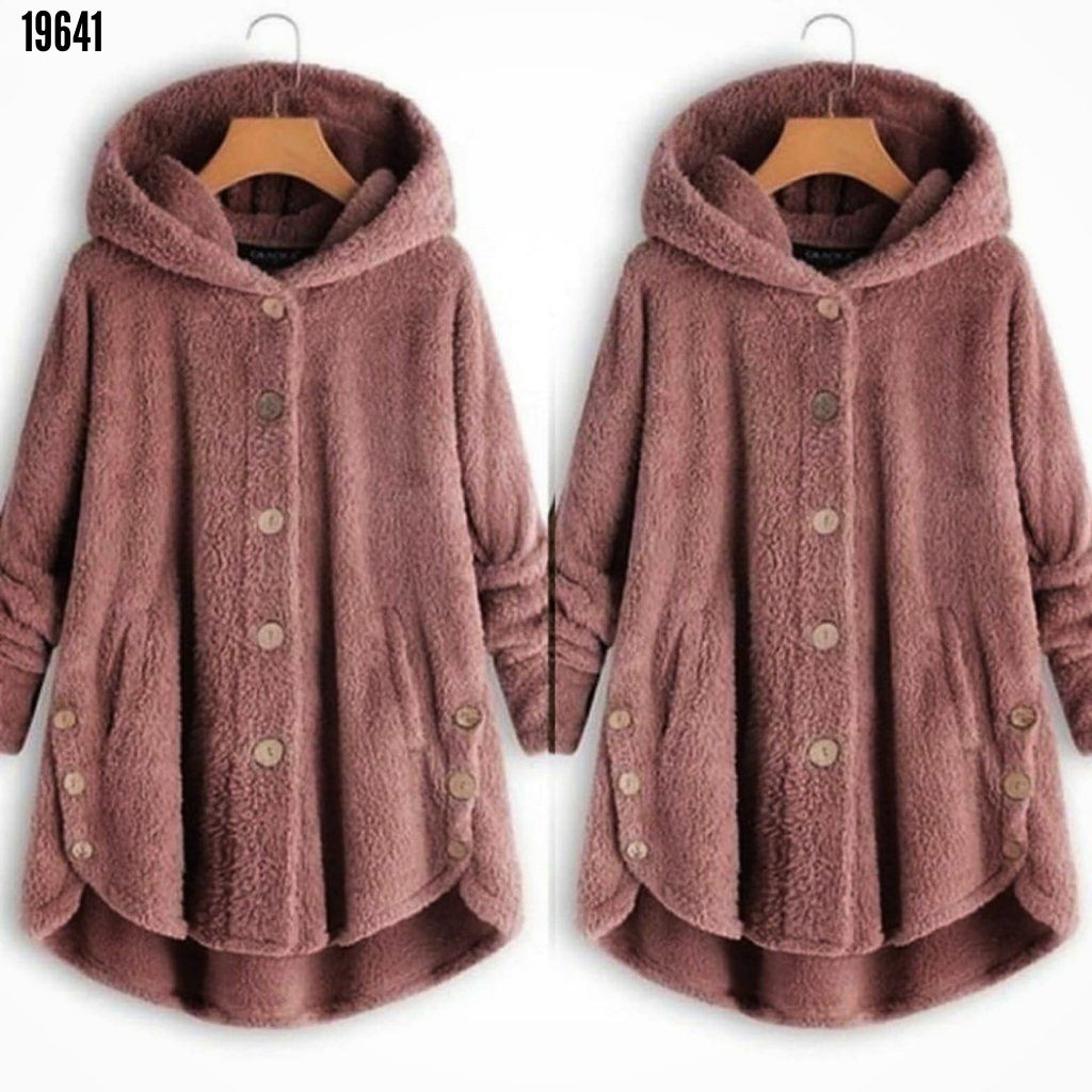 Kapşonlü peluş ceket - Saklı tesettür kadın giyim elbise etek tunik takım