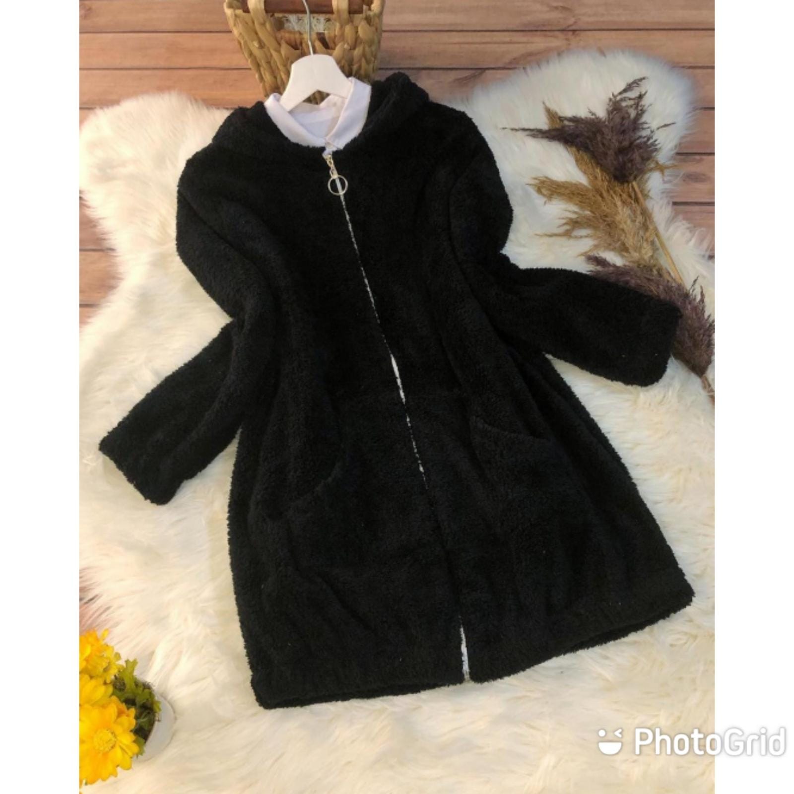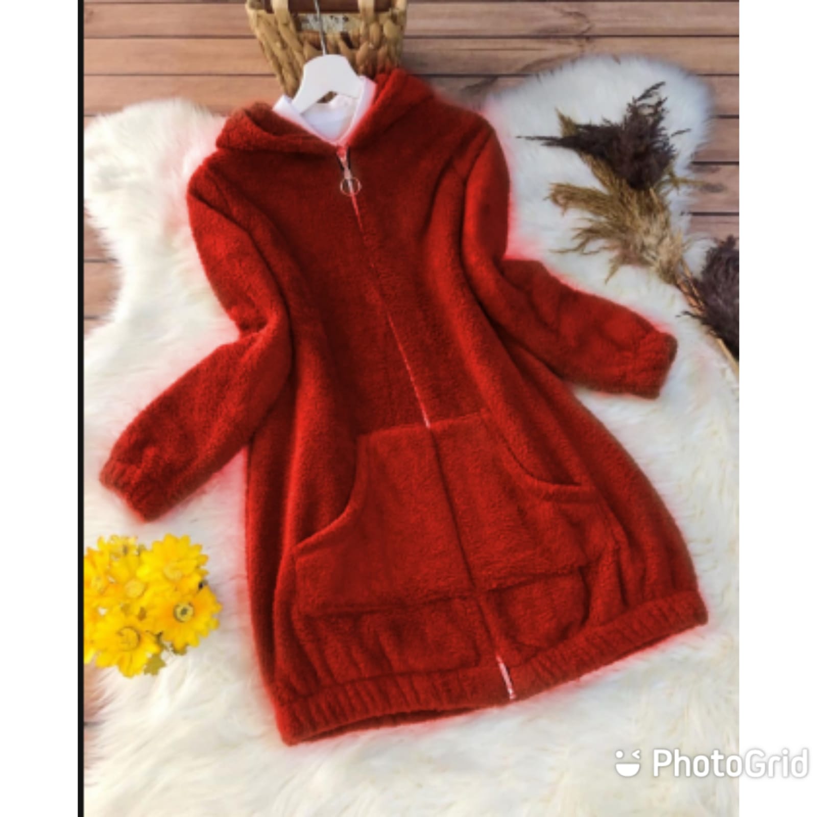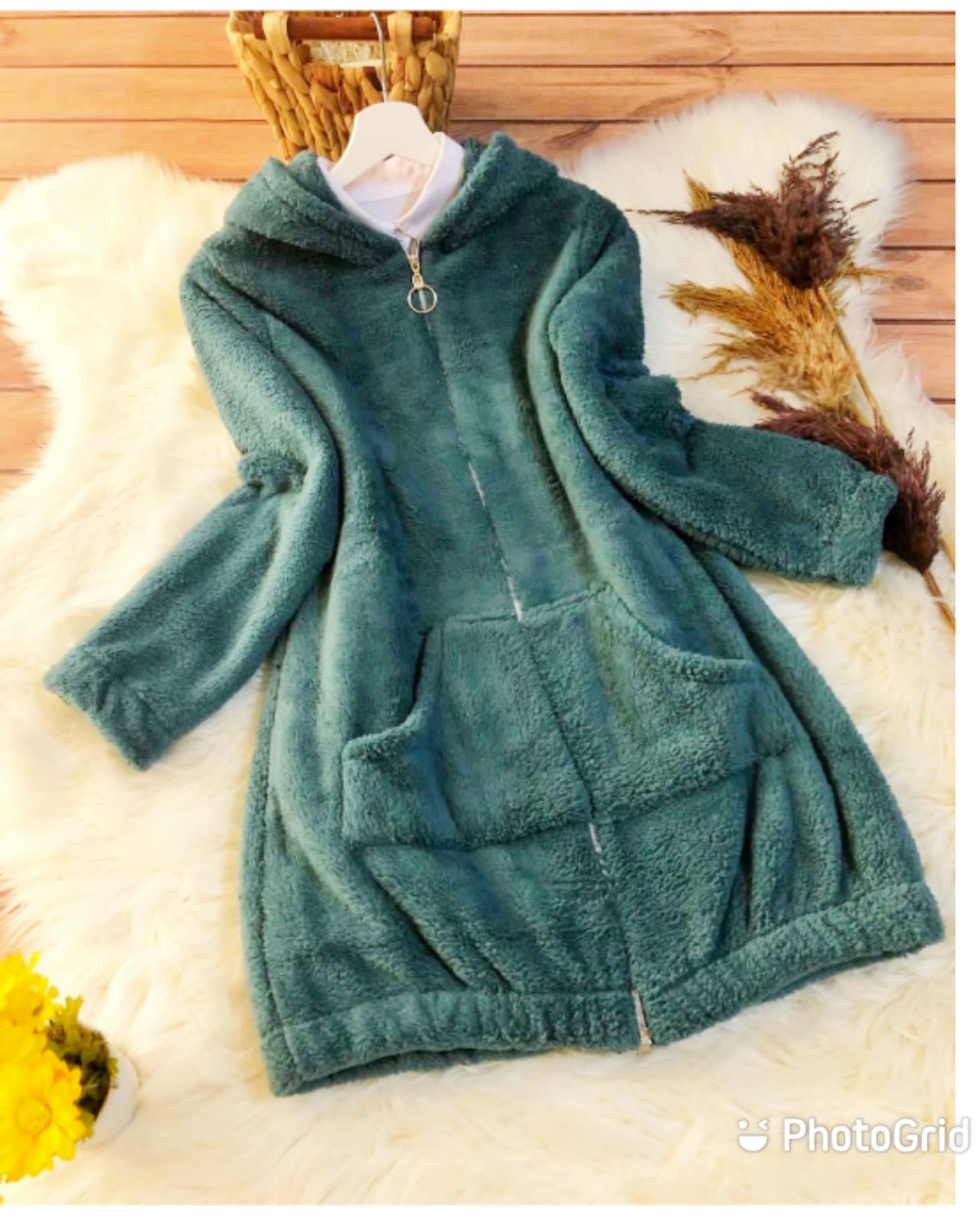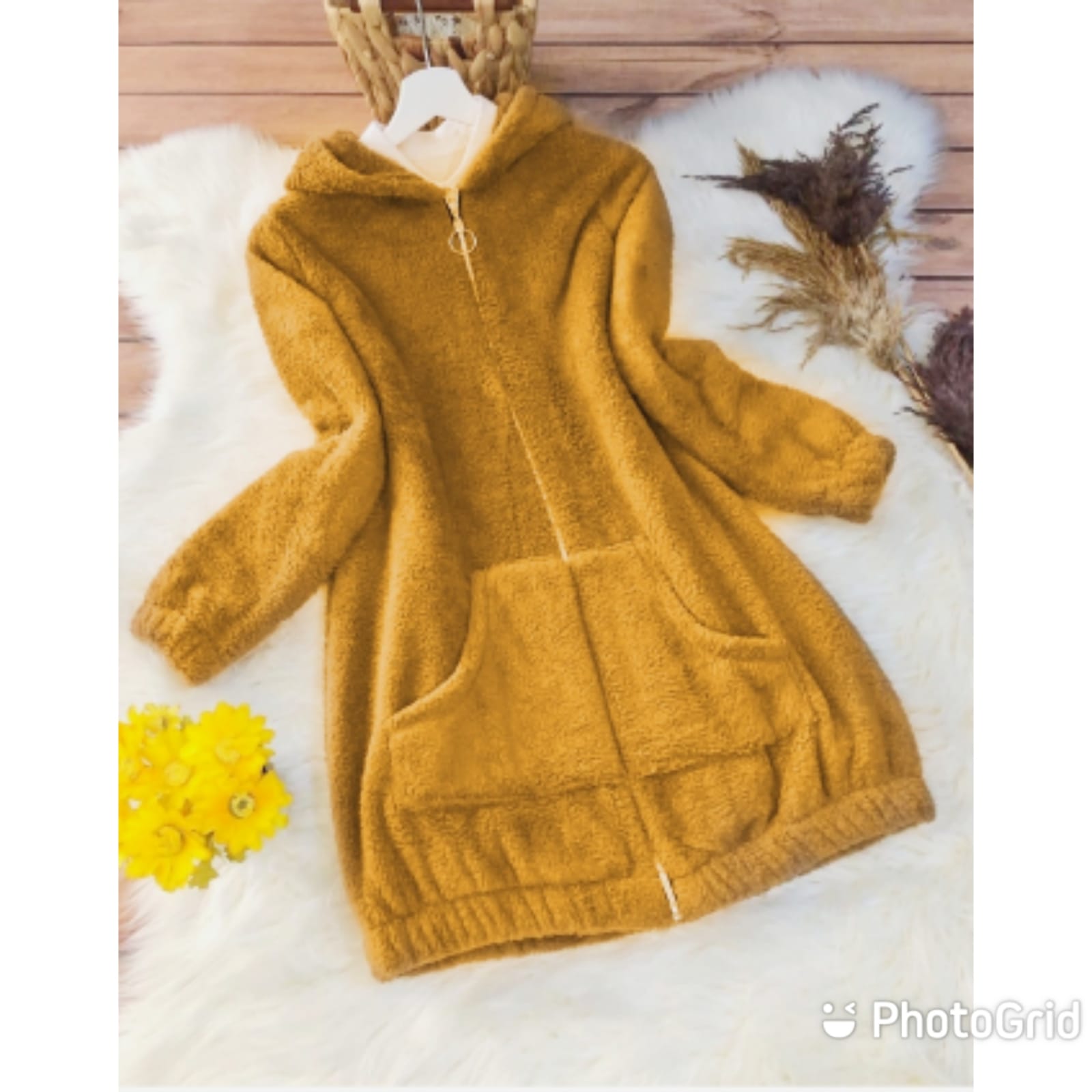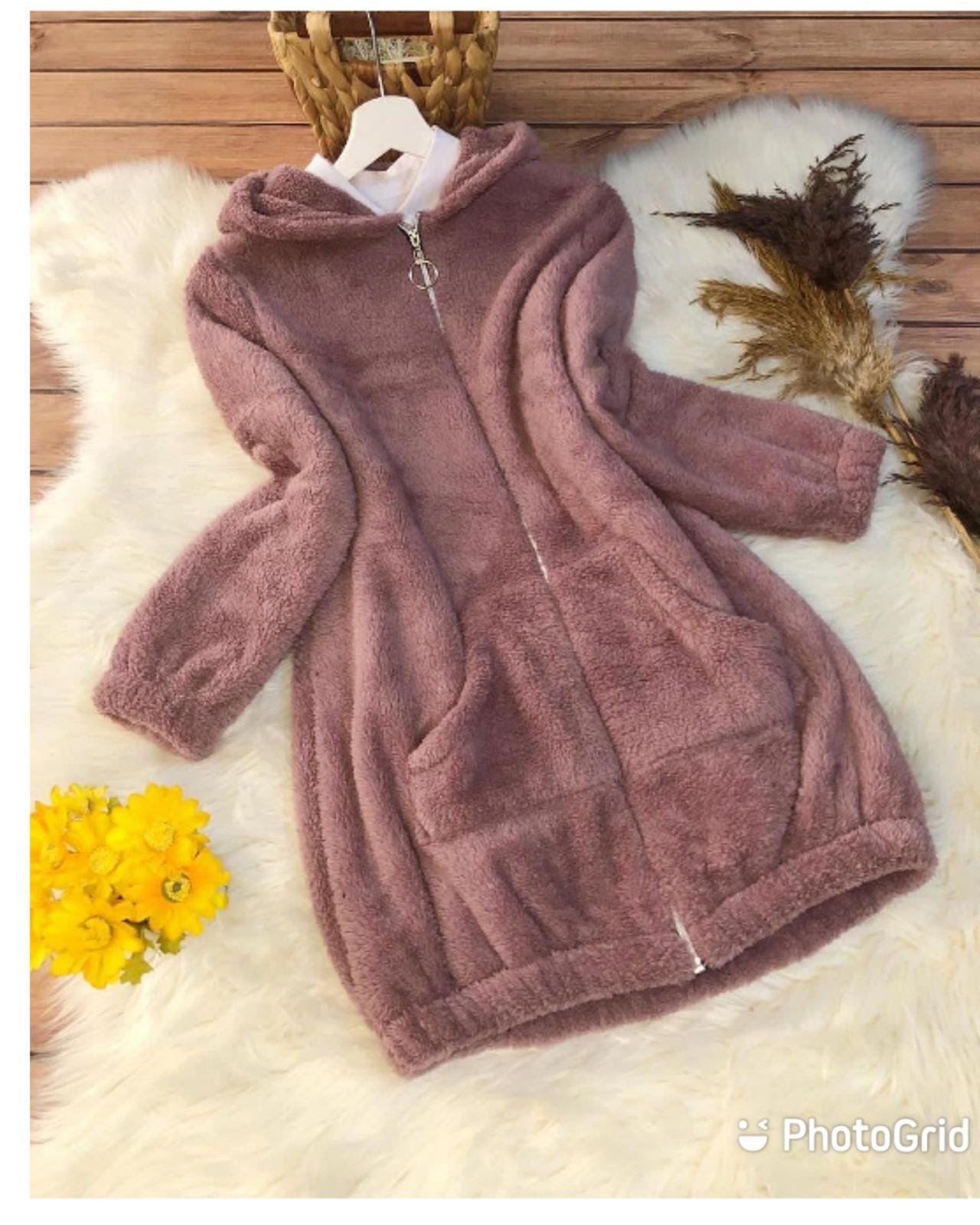 Kapşonlü peluş sweat - Saklı tesettür kadın giyim elbise etek tunik takım