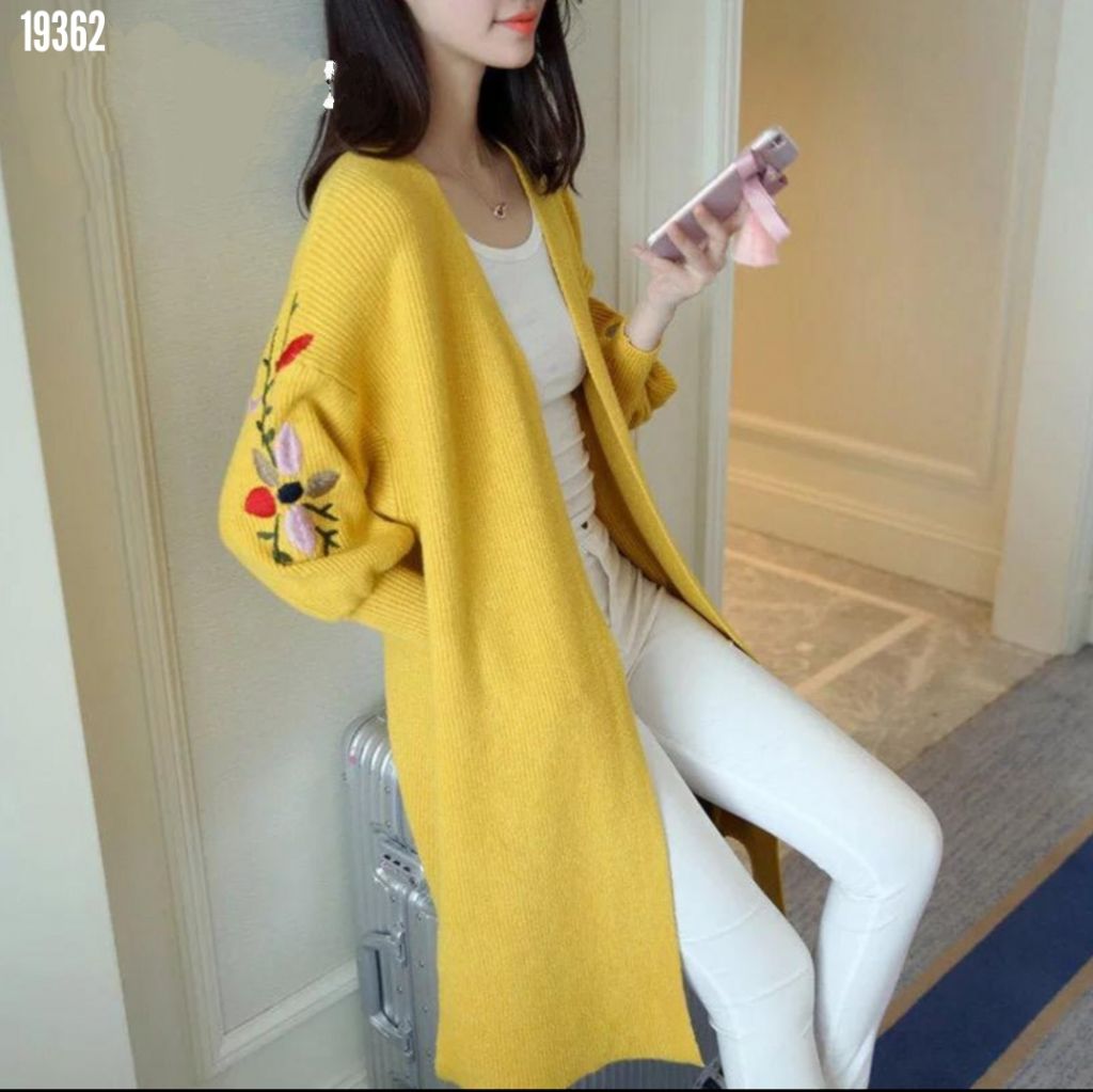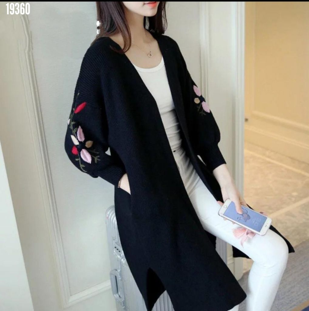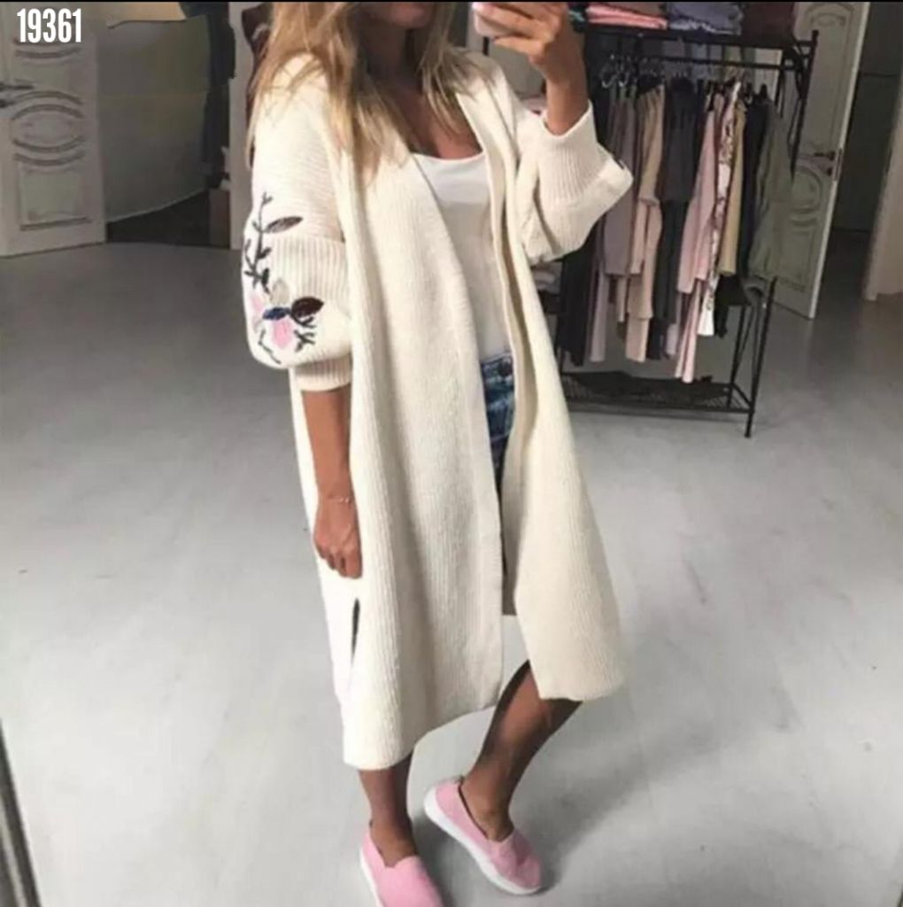Kollar nakışlı triko hırka - Saklı tesettür kadın giyim elbise etek tunik takım