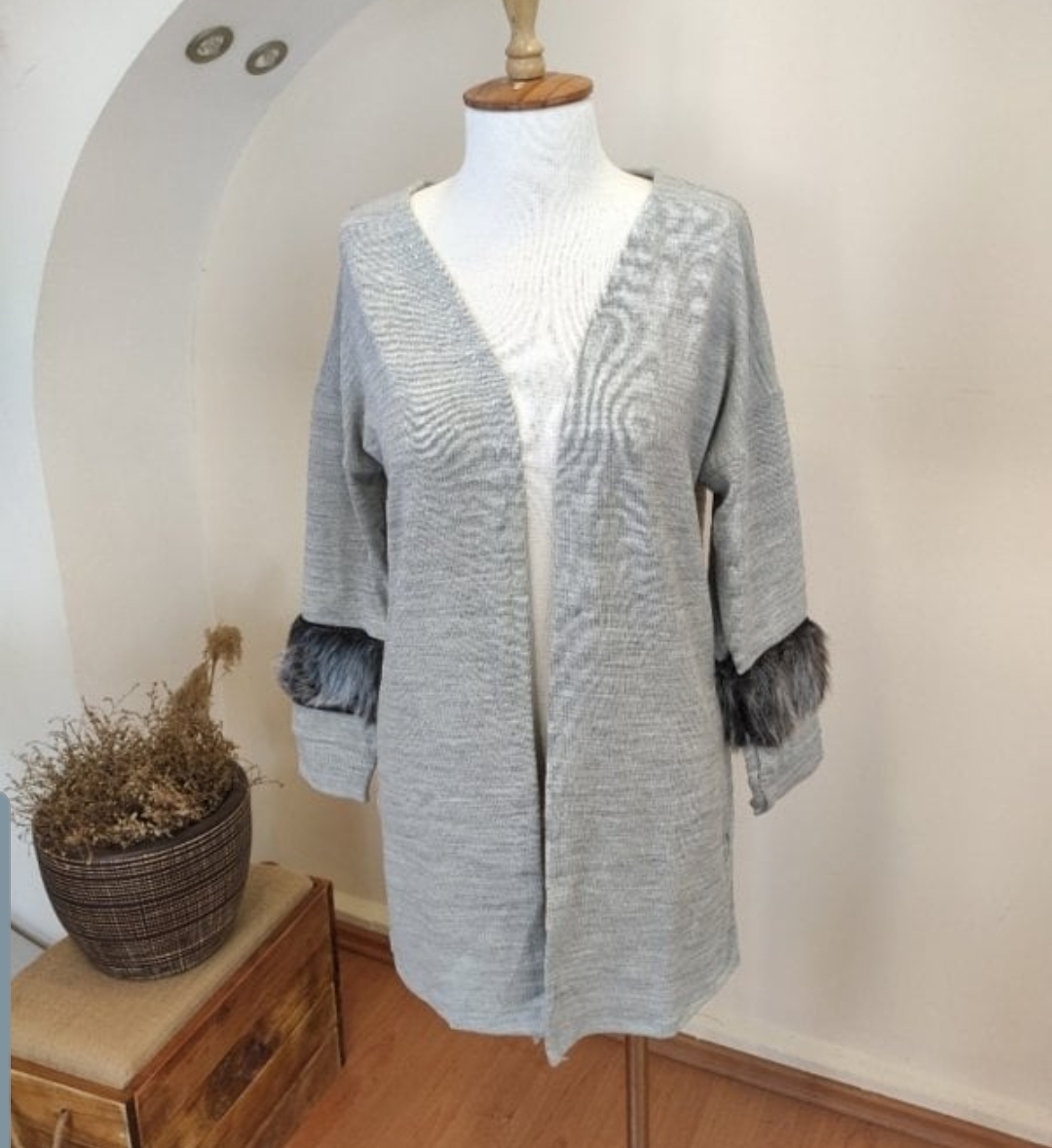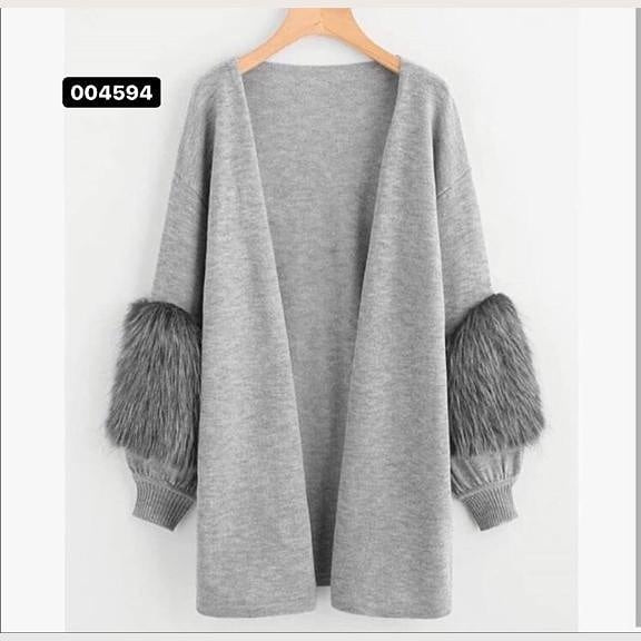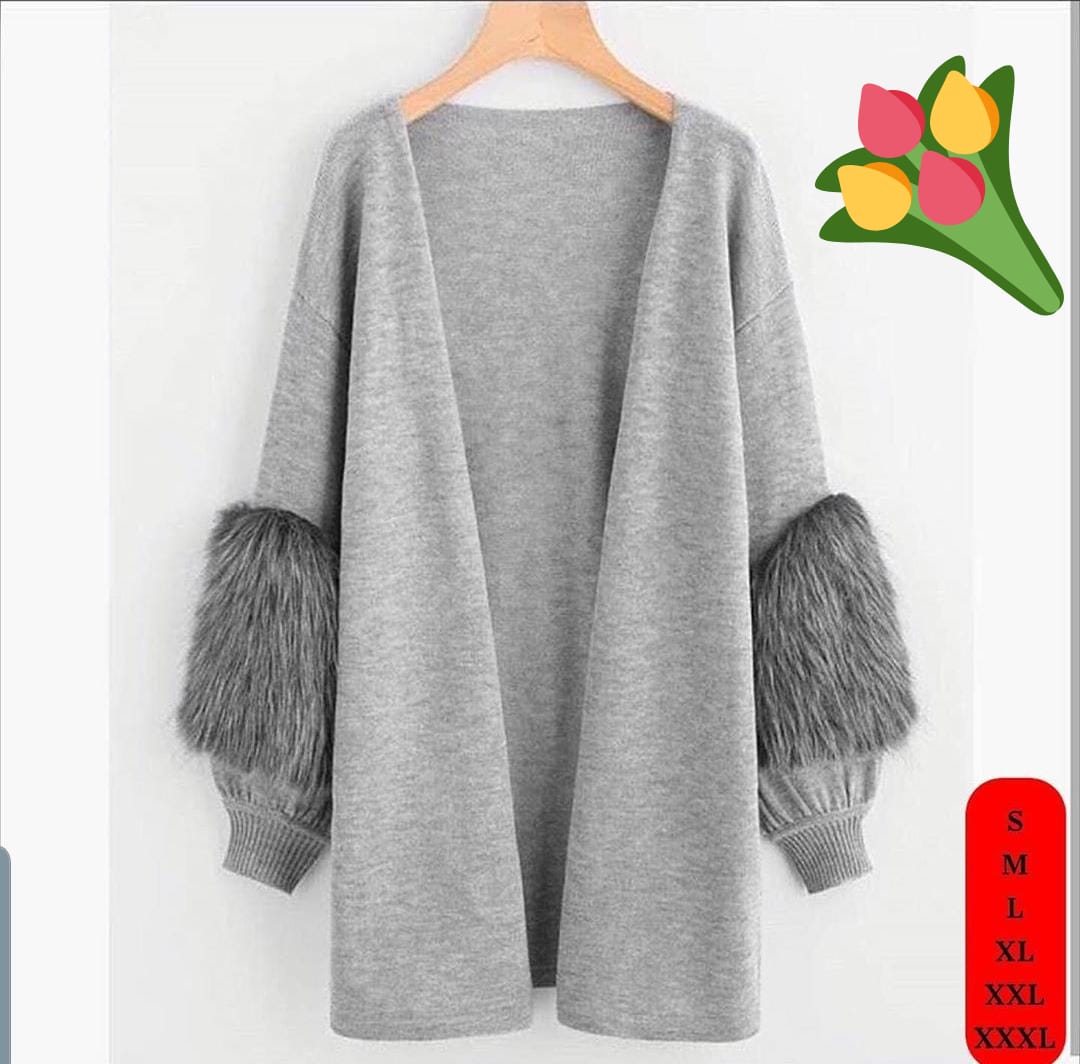 Kolları peluş hırka - Saklı tesettür kadın giyim elbise etek tunik takım