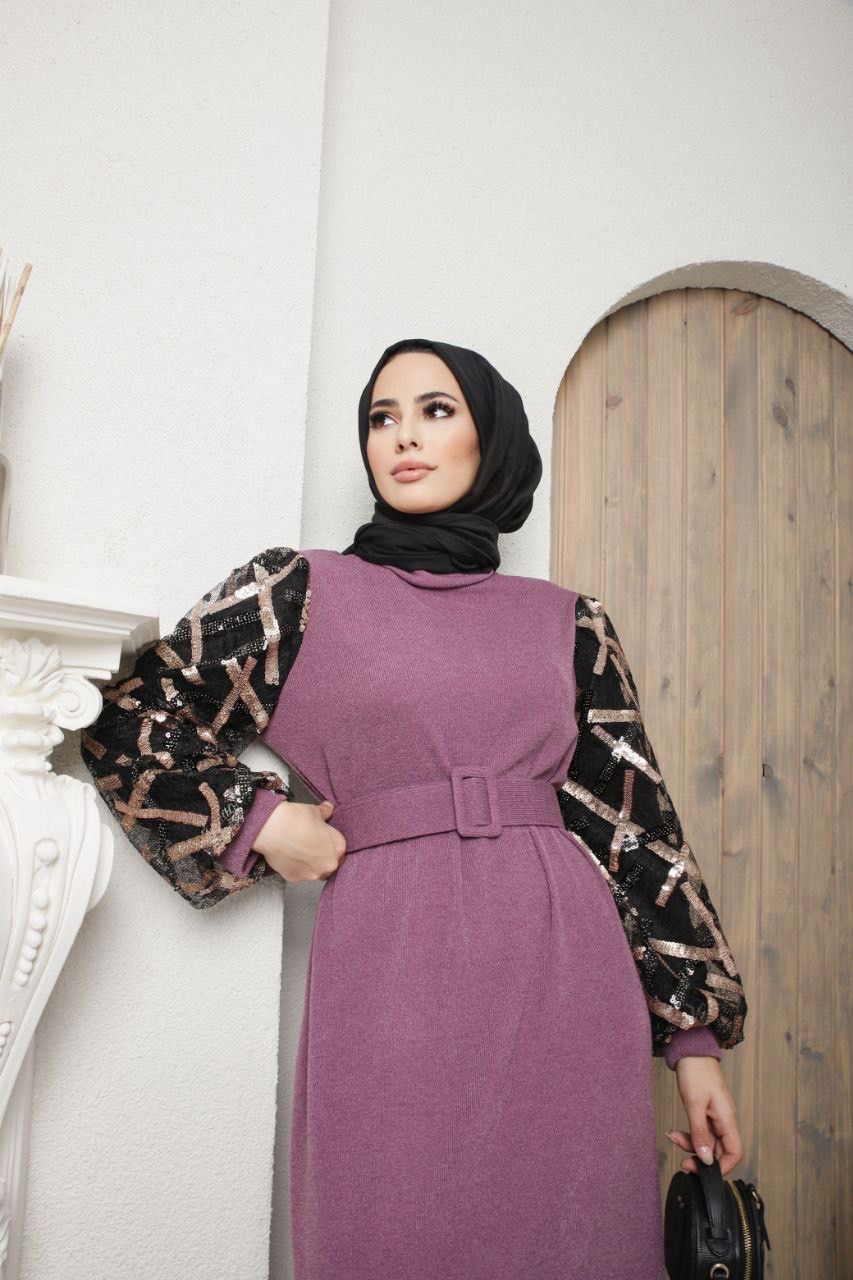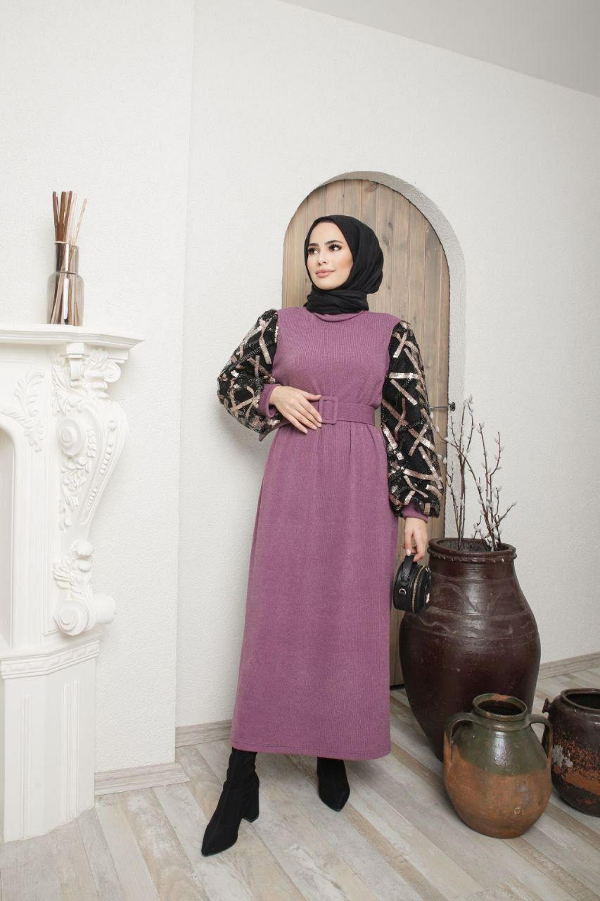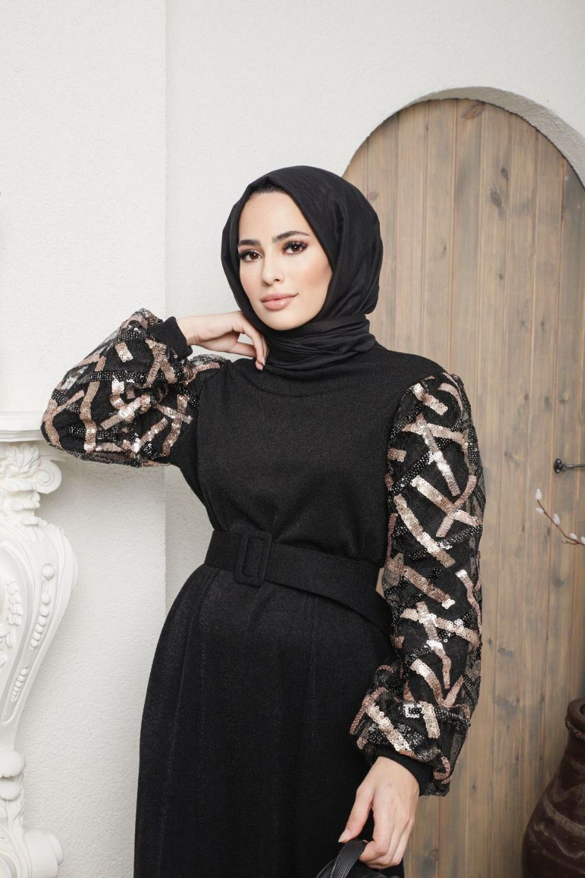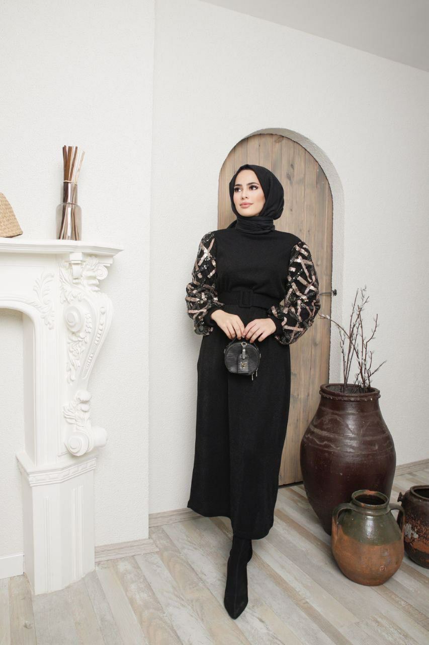 Ürün içeriği triko kollarında payet dül süslemesi ile kaplama kemer hediyeli