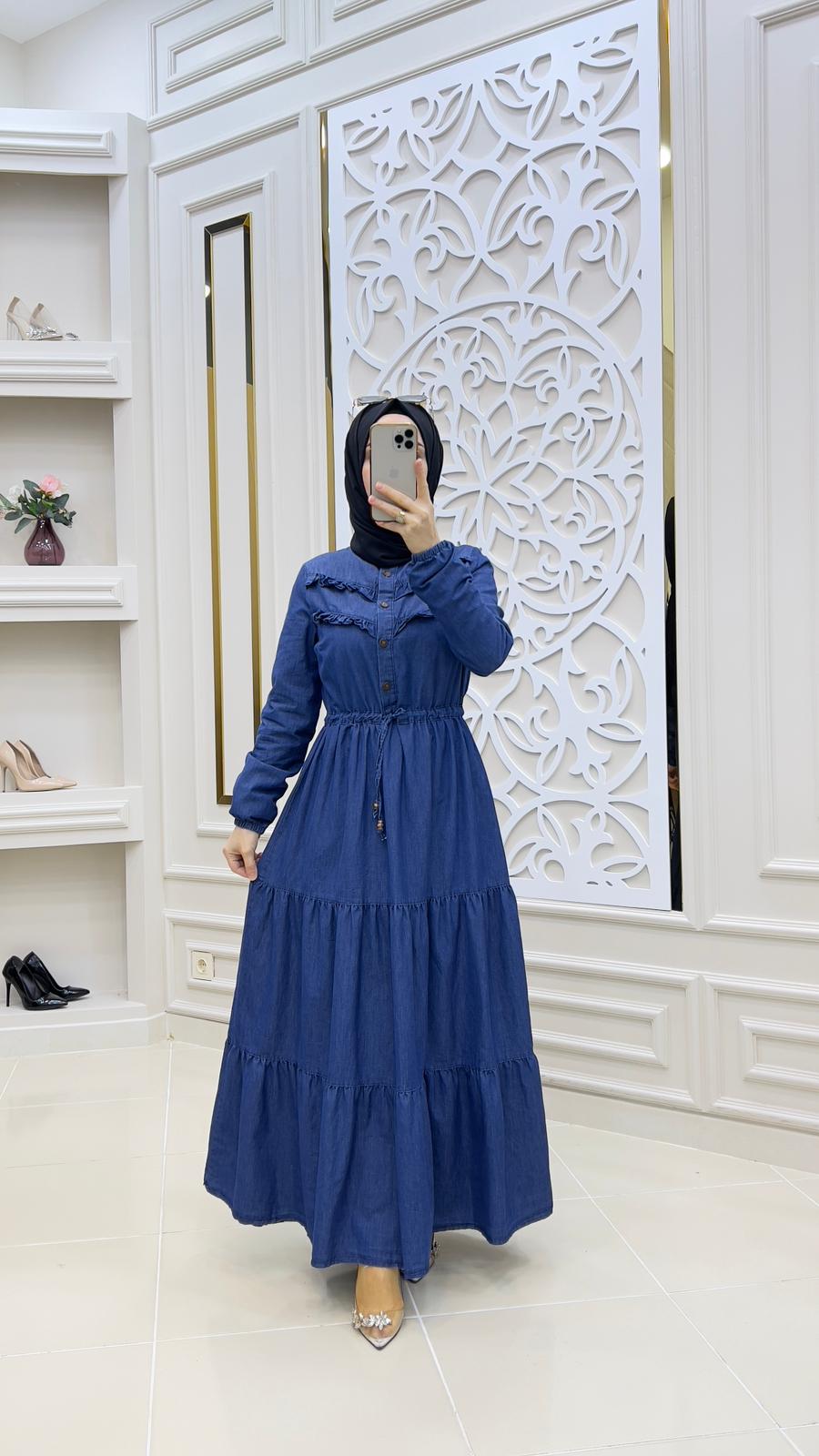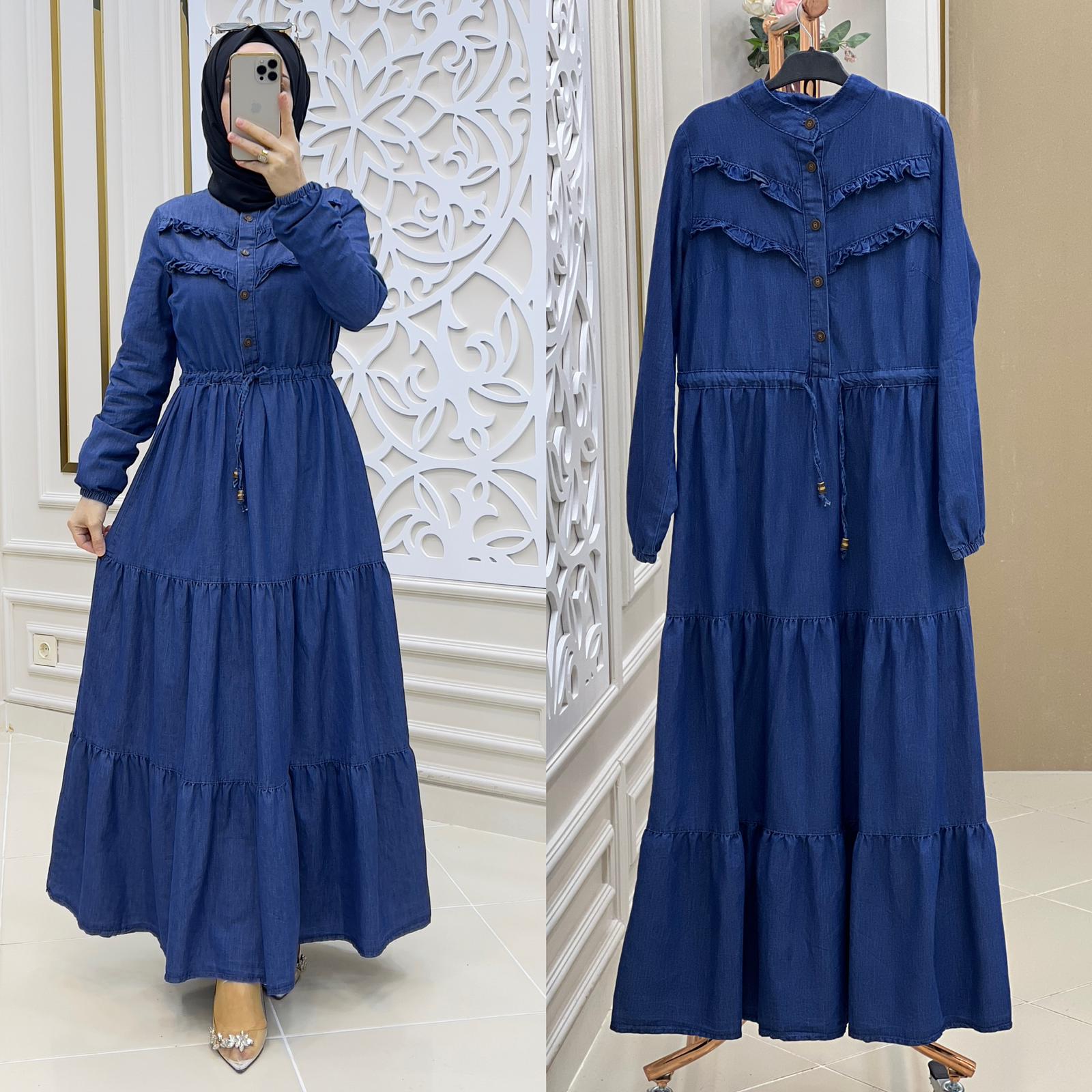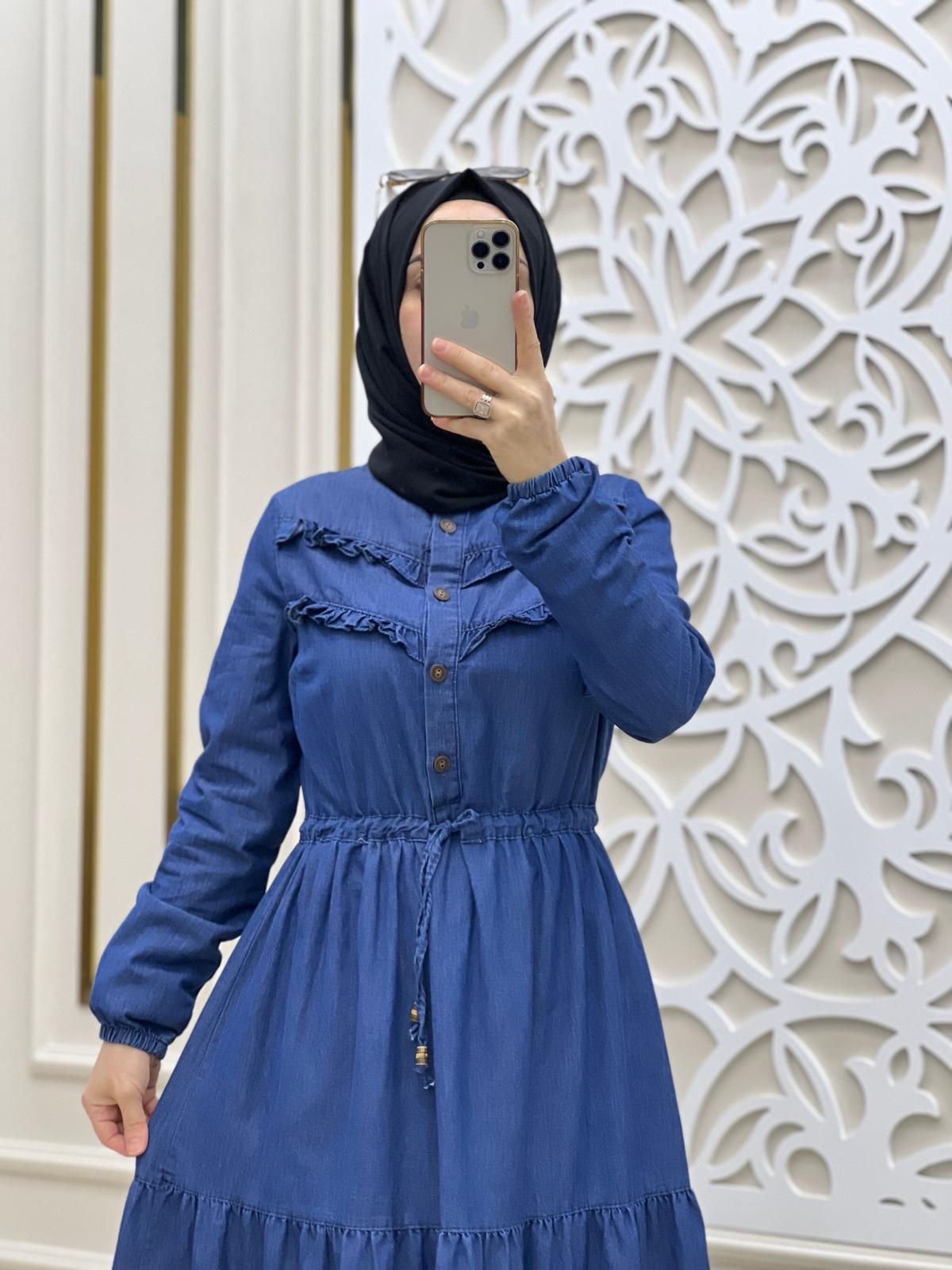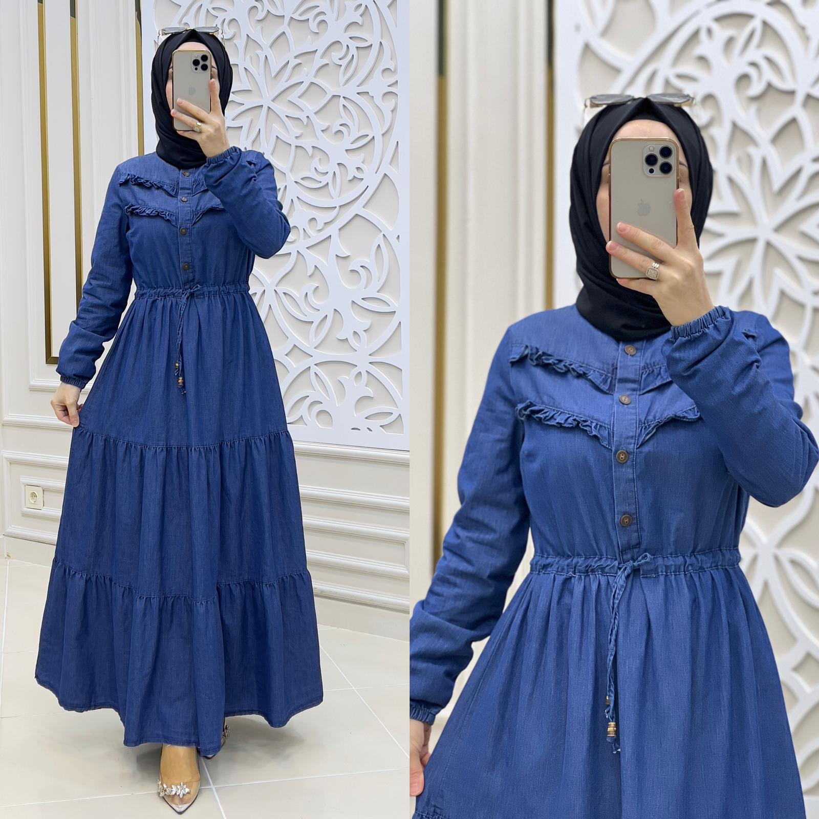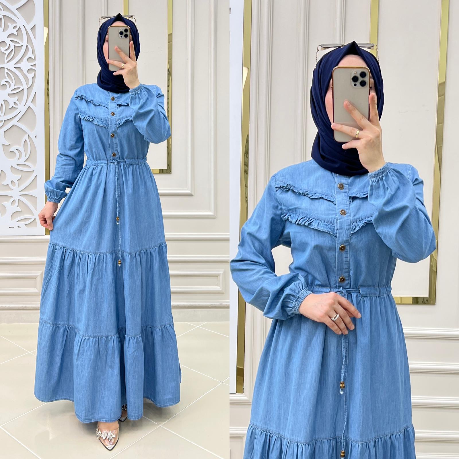 Kot elbise spor tensel kumaş - Saklı tesettür kadın giyim elbise etek tunik takım