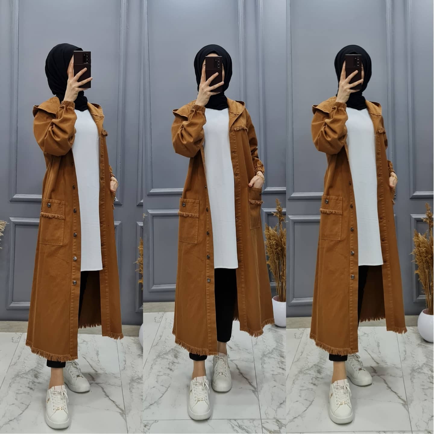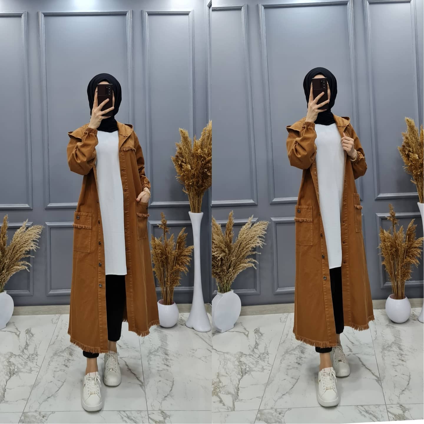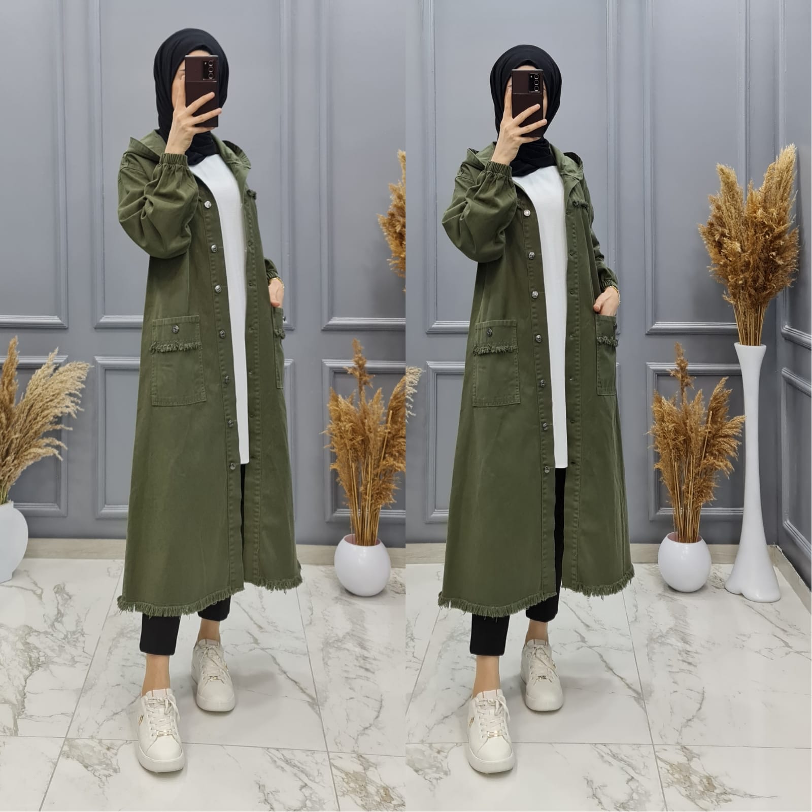 👗Trençkot kapüşonludur Kol kısımları lastık detaylıdır.