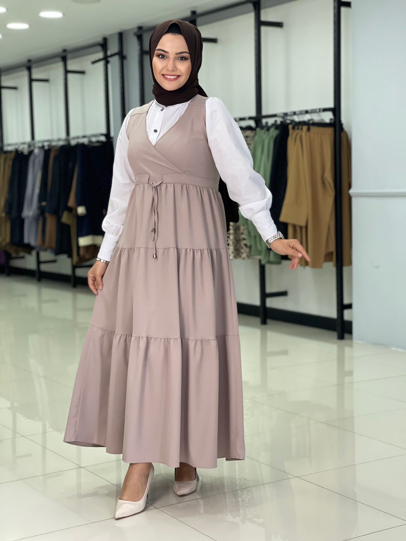 Yenilerden kumlu krep Berfin jile elbisemiz