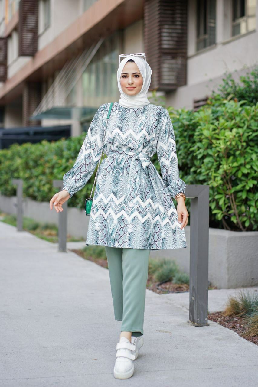 Yeni sezon Rahatlığıyla gönlünüzü feth edecek vücuda yapışmaz terletmez belindenden kuşaklı dijital baskı tunik takım 🙊