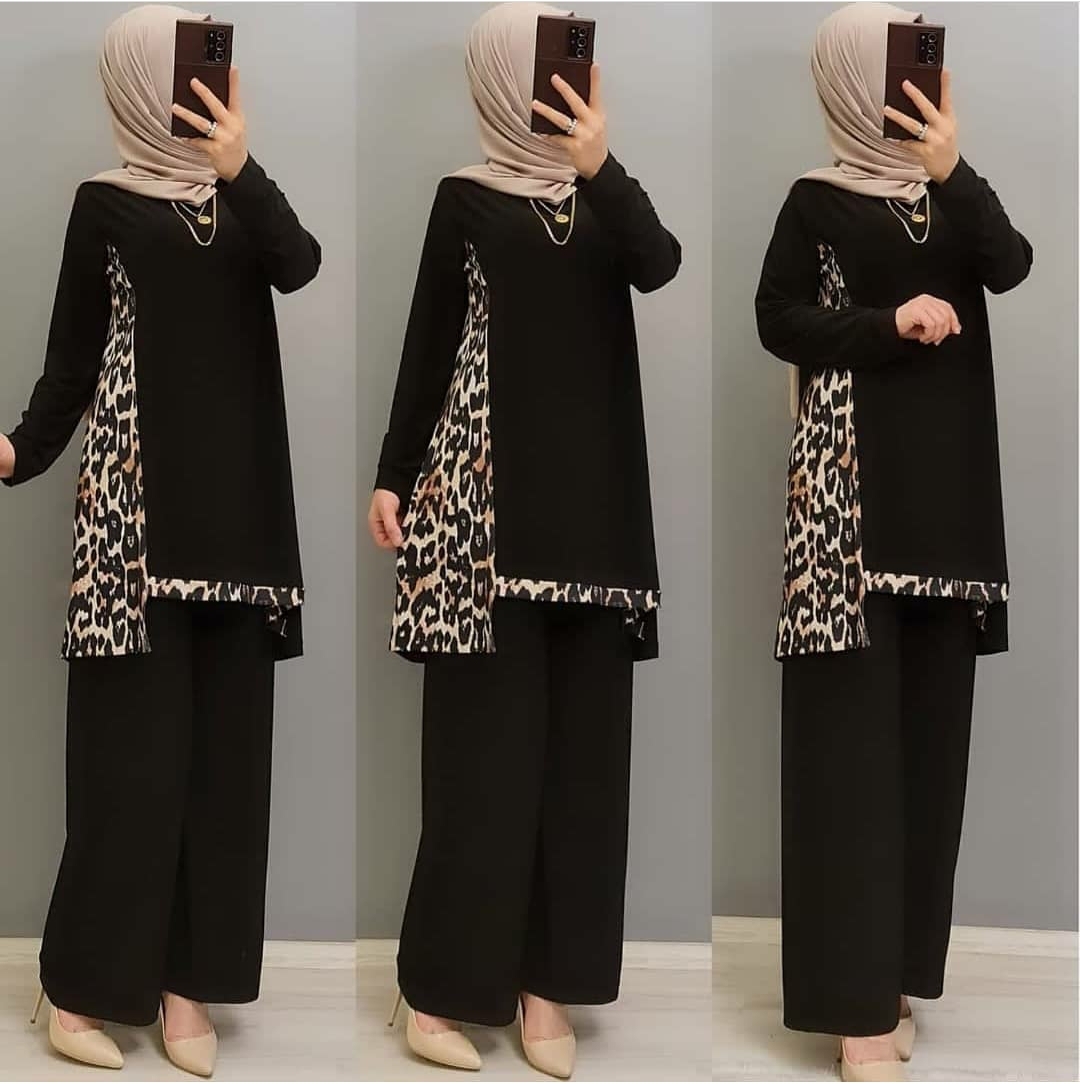 ❤️Siyah renk leopar detaylı