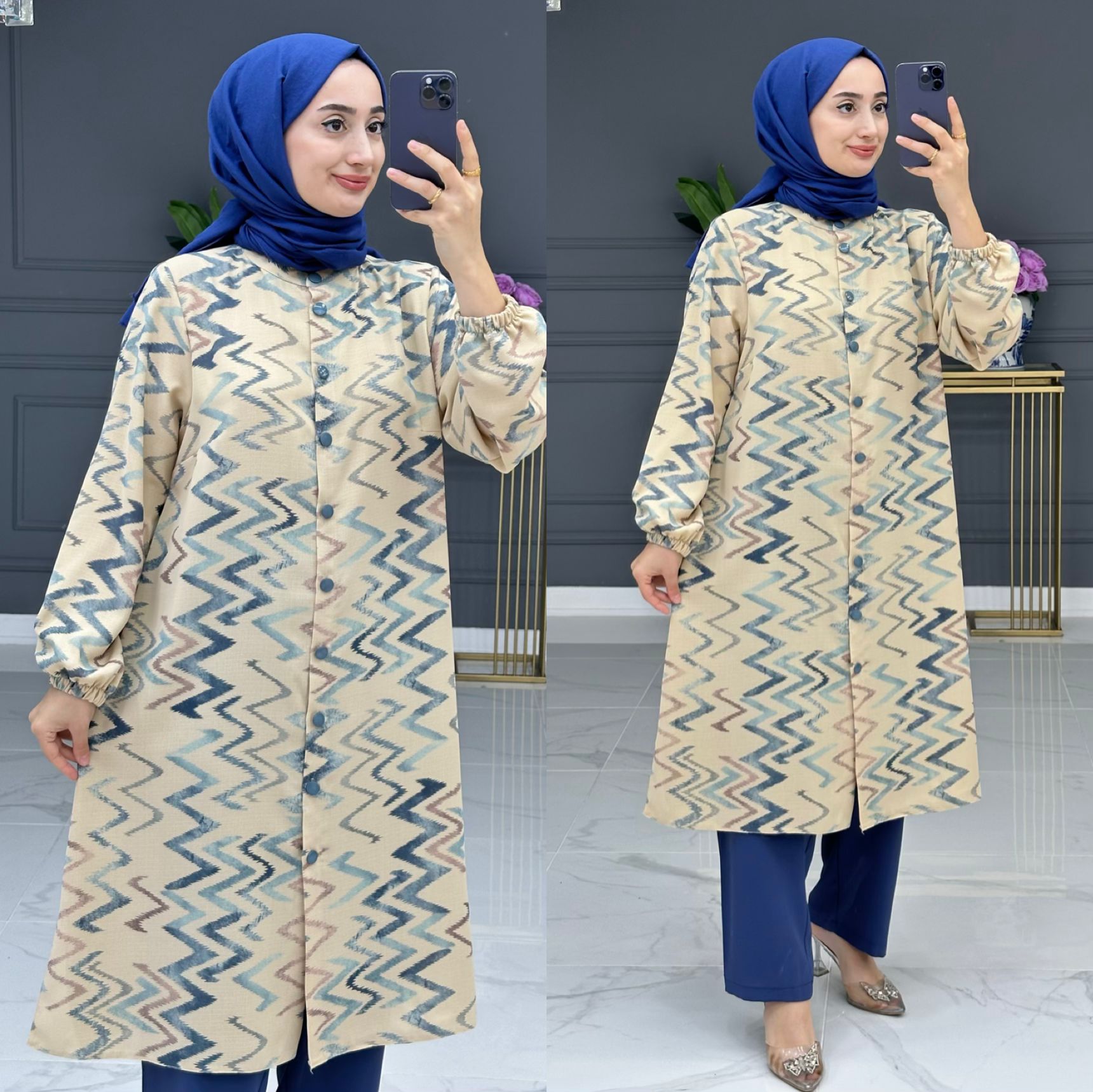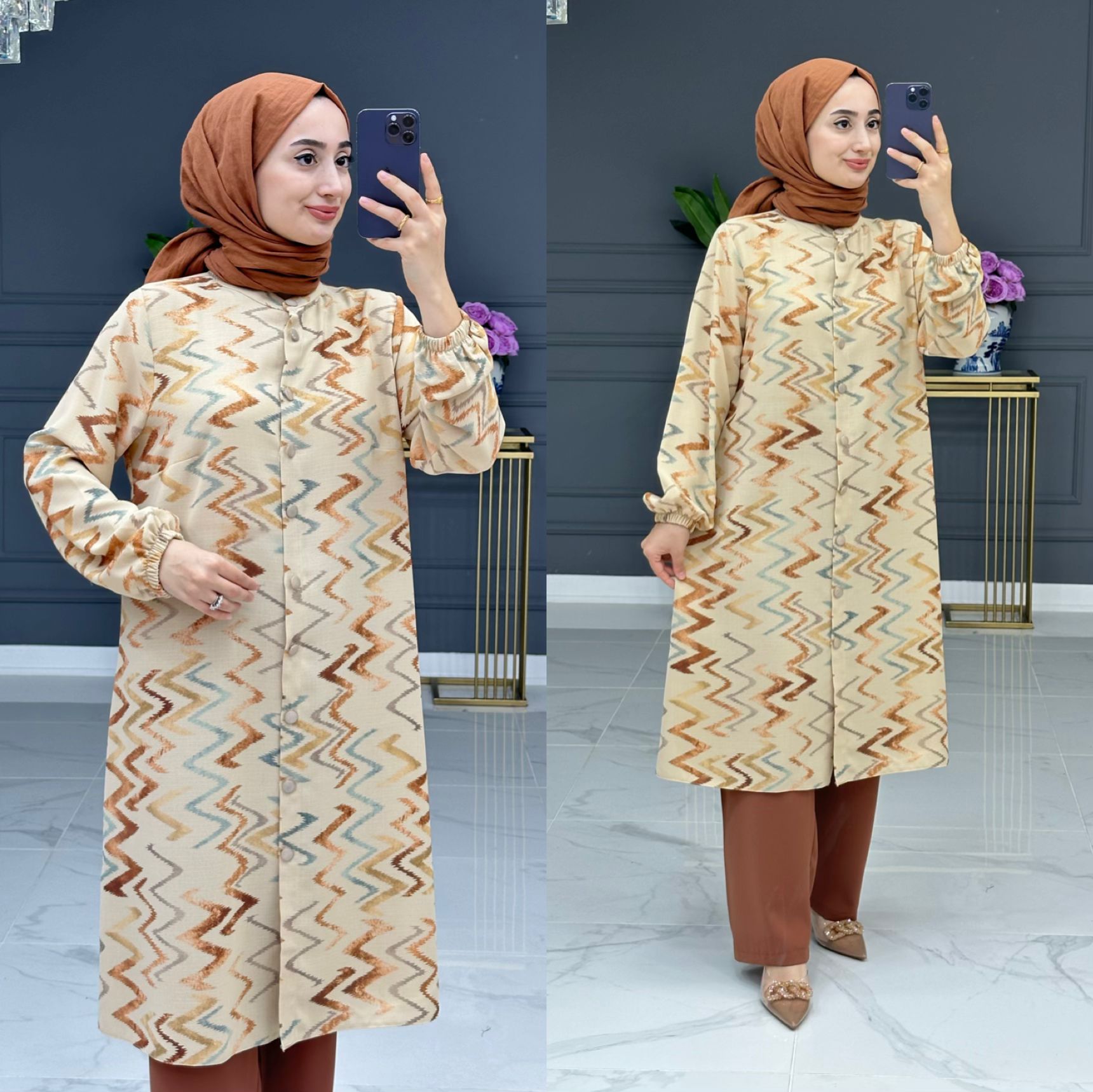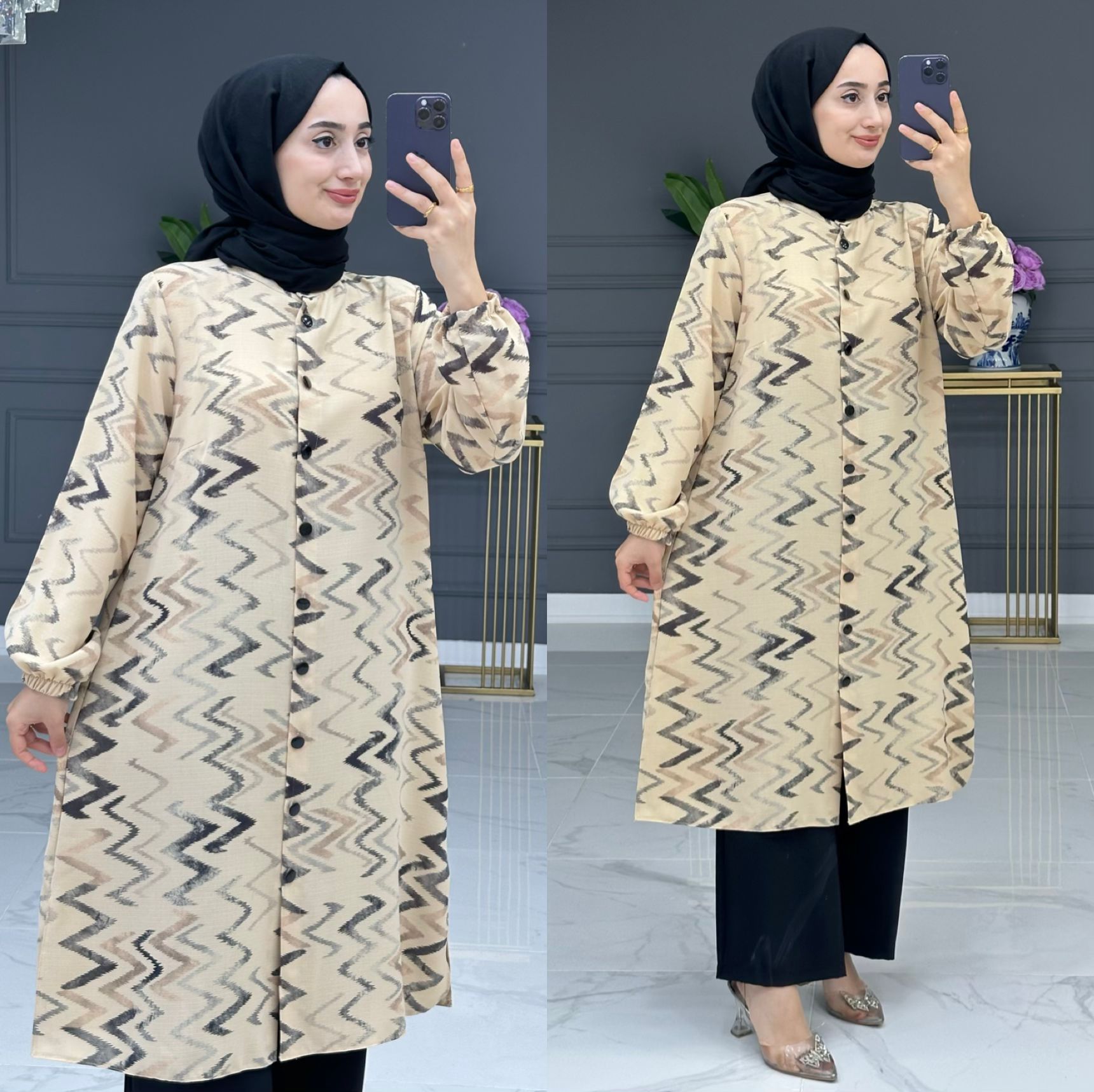 Mecnun takım krep kumaş - Saklı tesettür kadın giyim elbise etek tunik takım