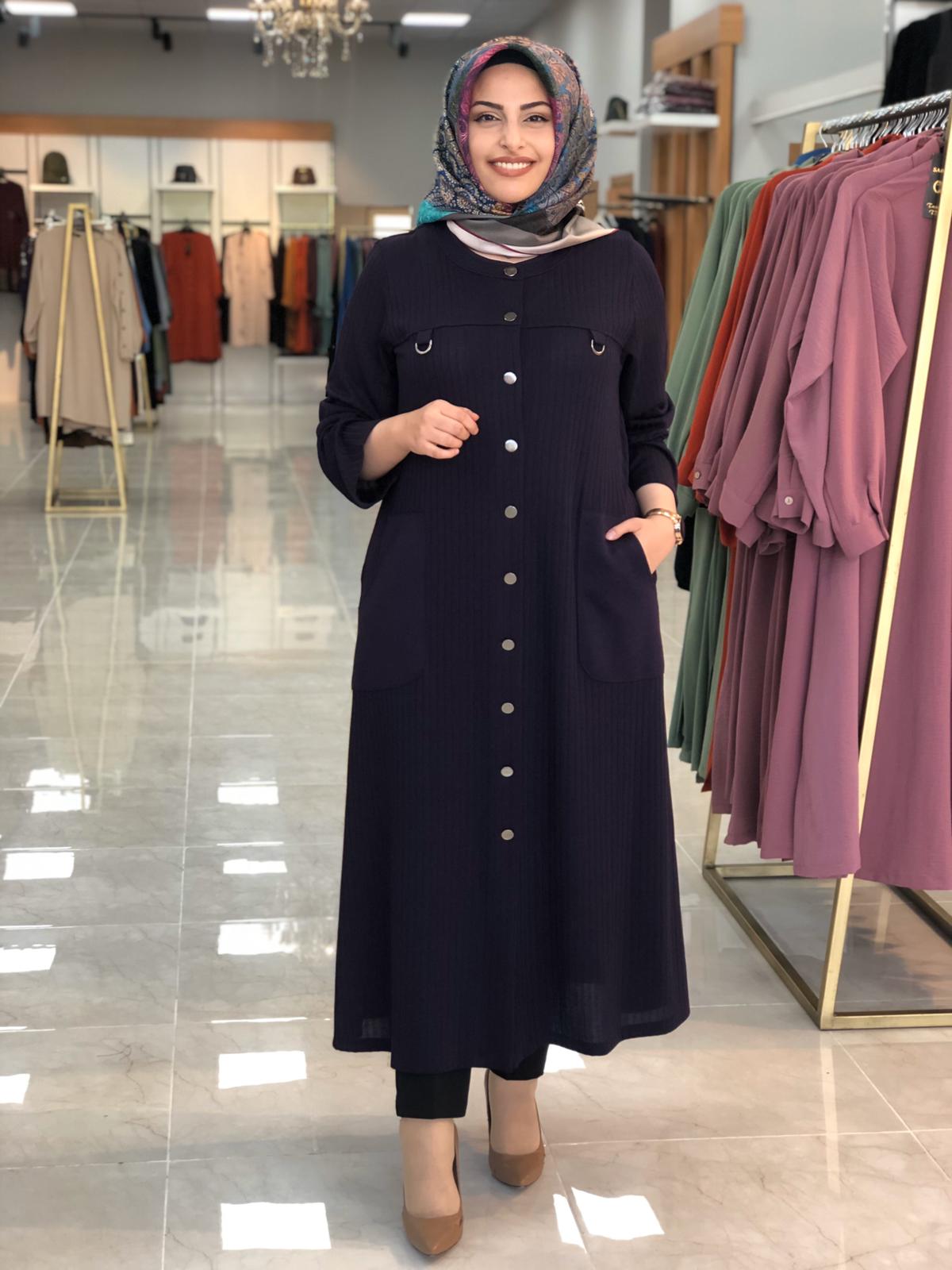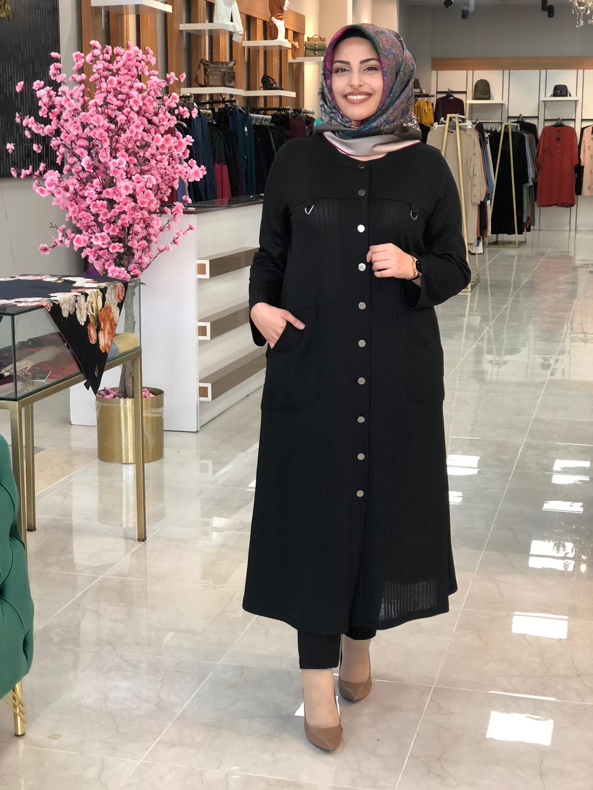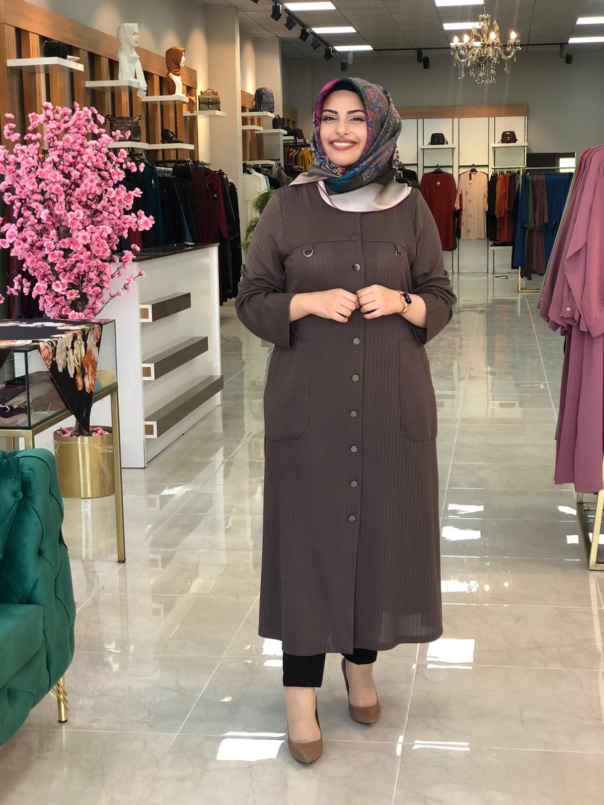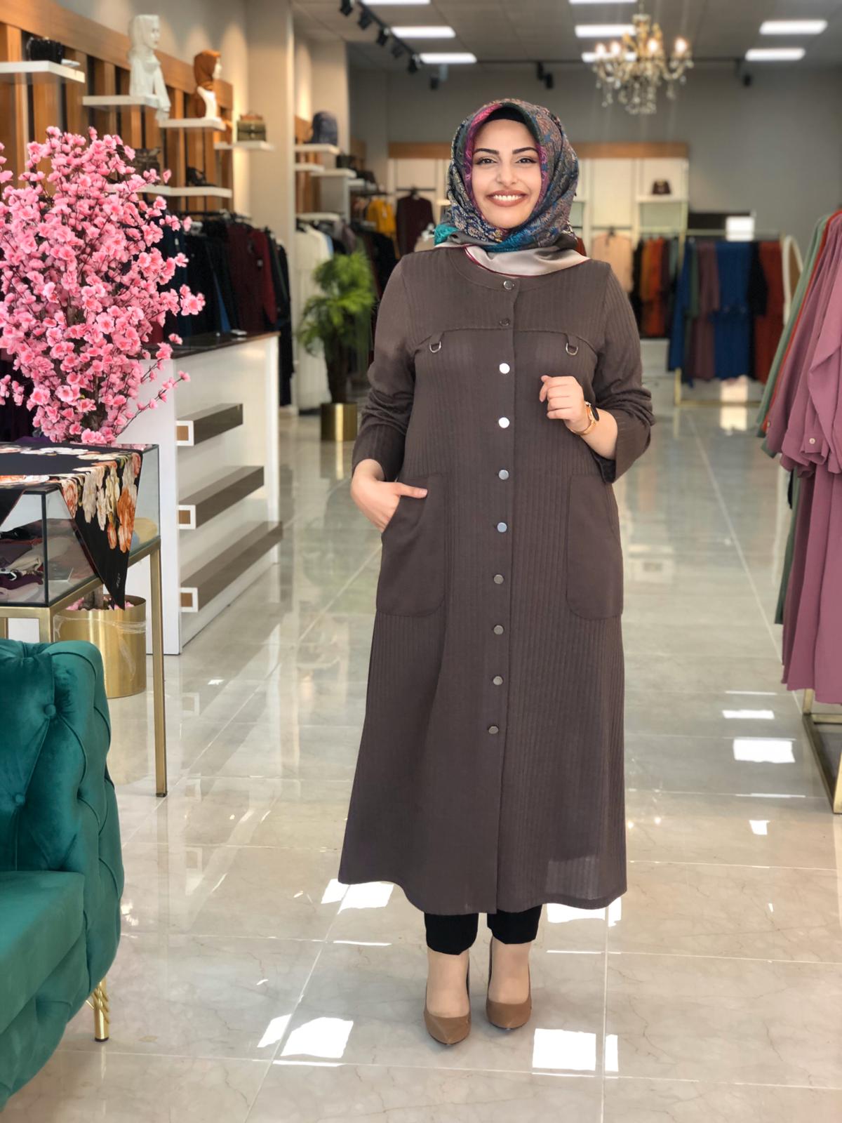 Mevsimlik büyük beden kap - Saklı tesettür kadın giyim elbise etek tunik takım