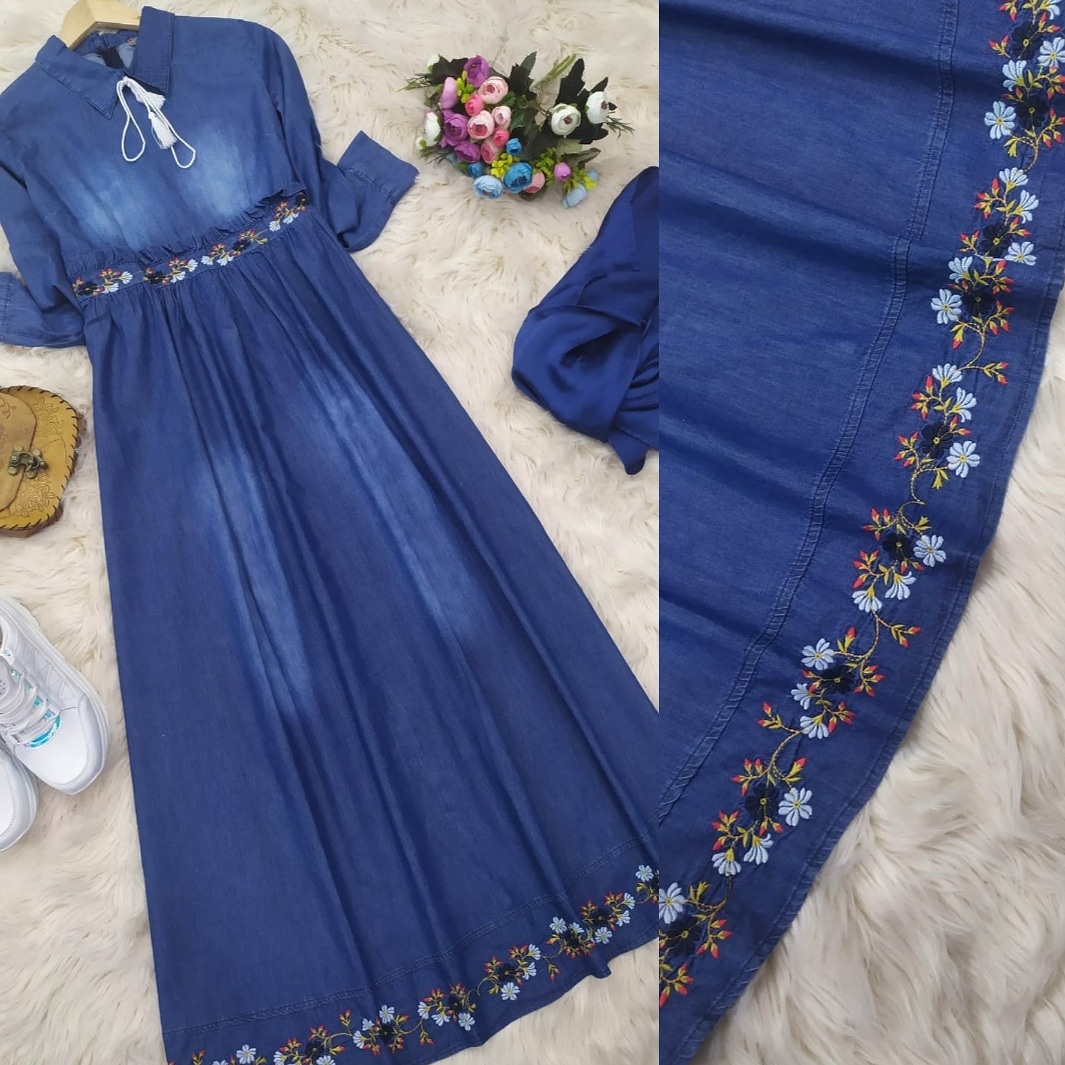 ☘SAHANE YENİ MODEL ETEK VE ÖN KİSMİ NAKIŞLI KOT ELBİSE