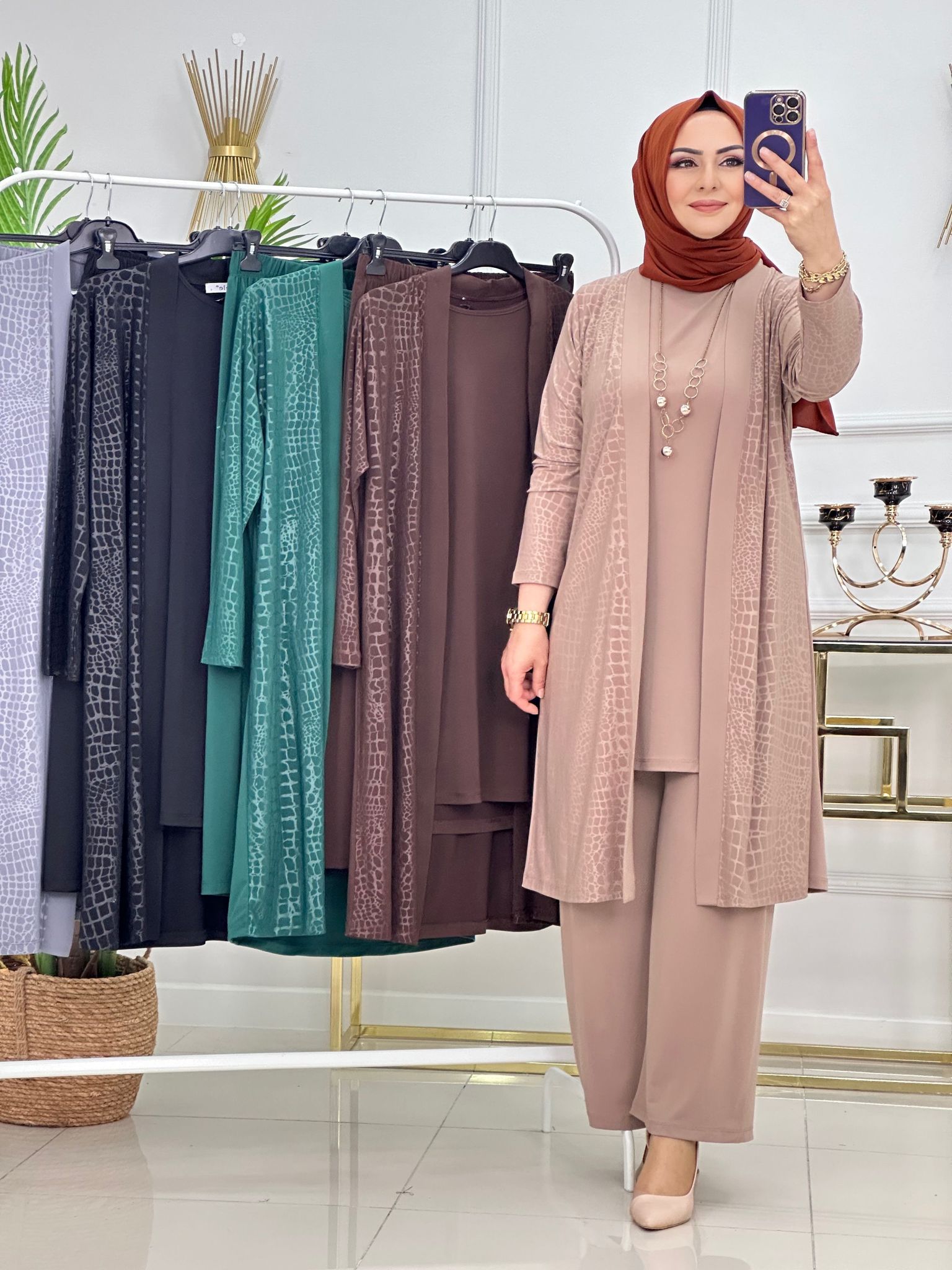 Ürün sıfır kollu içlik hırka ve pantolon olarak üç parça takımdır