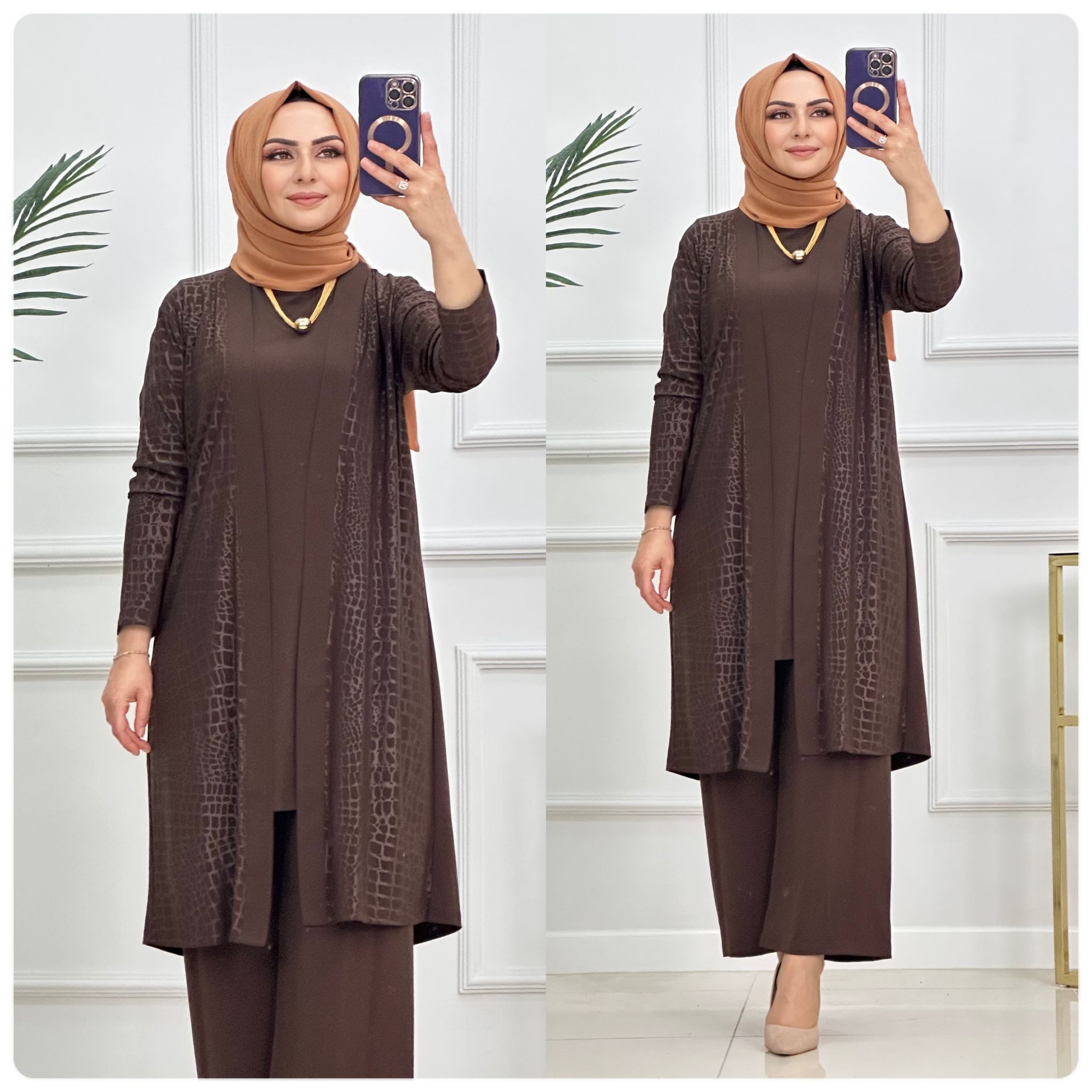 Nevra üçlü takım sandy kumaş - Saklı tesettür kadın giyim elbise etek tunik takım