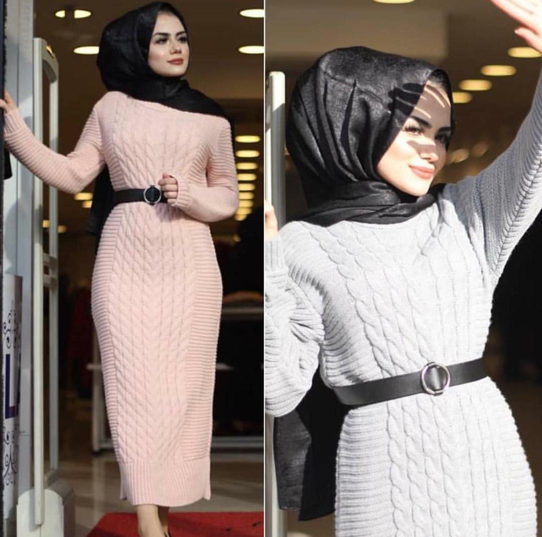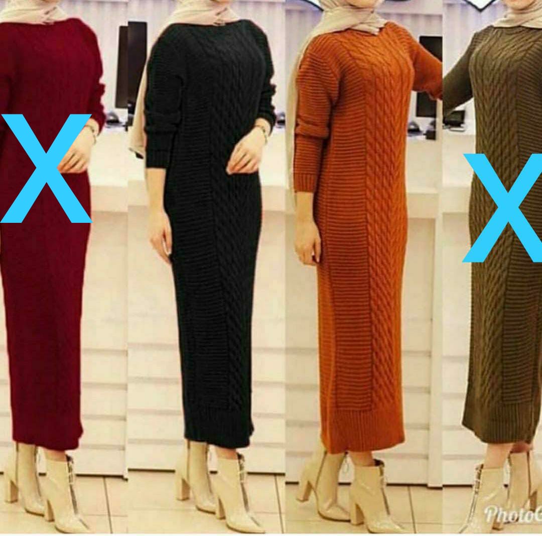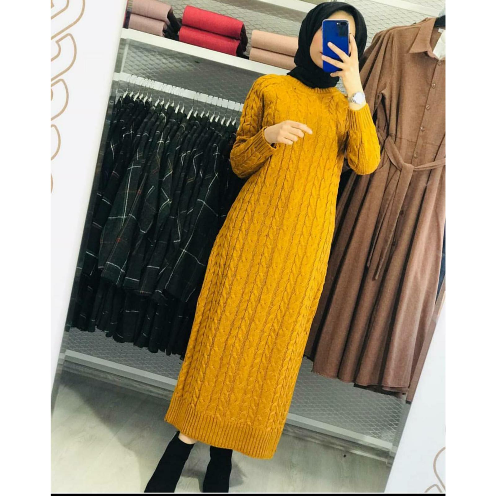 Örgü Detaylı Elbise - Saklı tesettür kadın giyim elbise etek tunik takım
